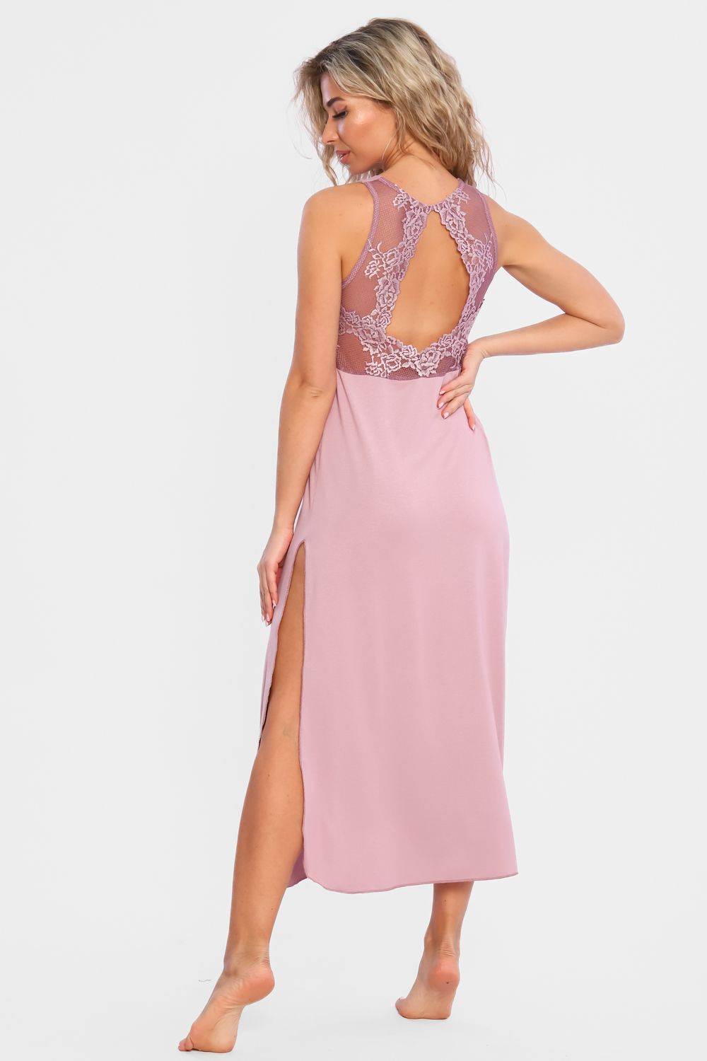 Шикарная длинная женская ночная сорочка с чувственным декольте идеально подчеркивает талию и все изгибы фигуры. Роскошно украшенный кружевом глубокий вырез на спине заставит любую женщину почувствовать себя богиней. Длинный разрез по ноге придаст женственности и сексуальности. Рубашка длинная, поэтому подойдет и на высоких. Элегантная ночная сорочка выполнена из мягкого эластичного трикотажа, воздухопроницаемость которого гарантирует комфортный сон. Рубашку можно использовать как сорочку и как изысканную одежду для дома. Она станет изюминкой вашего гардероба и достойным подарком на любой праздник. Вы не останетесь незамеченной!