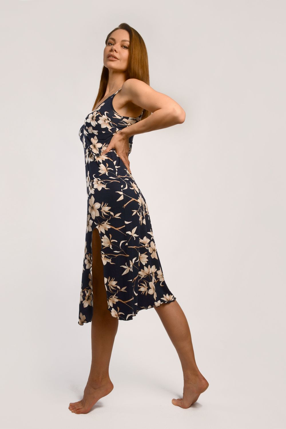 Ночная сорочка "ГАБРИЭЛЬ -2" - набивка цветок тёмно-синий