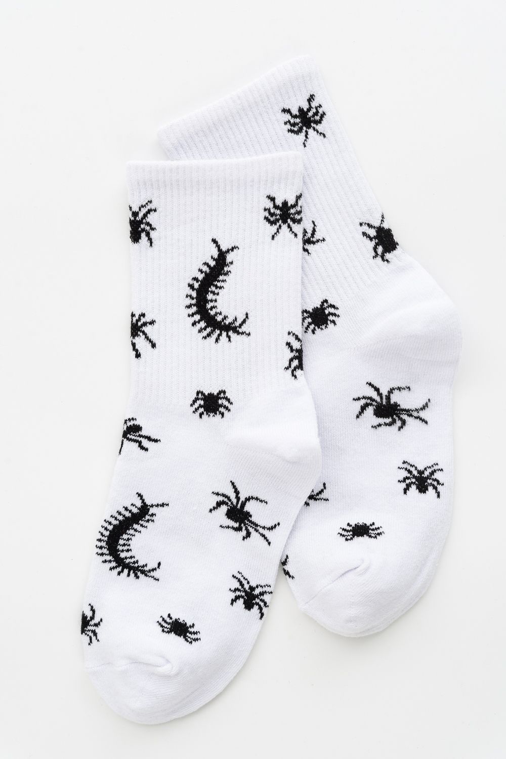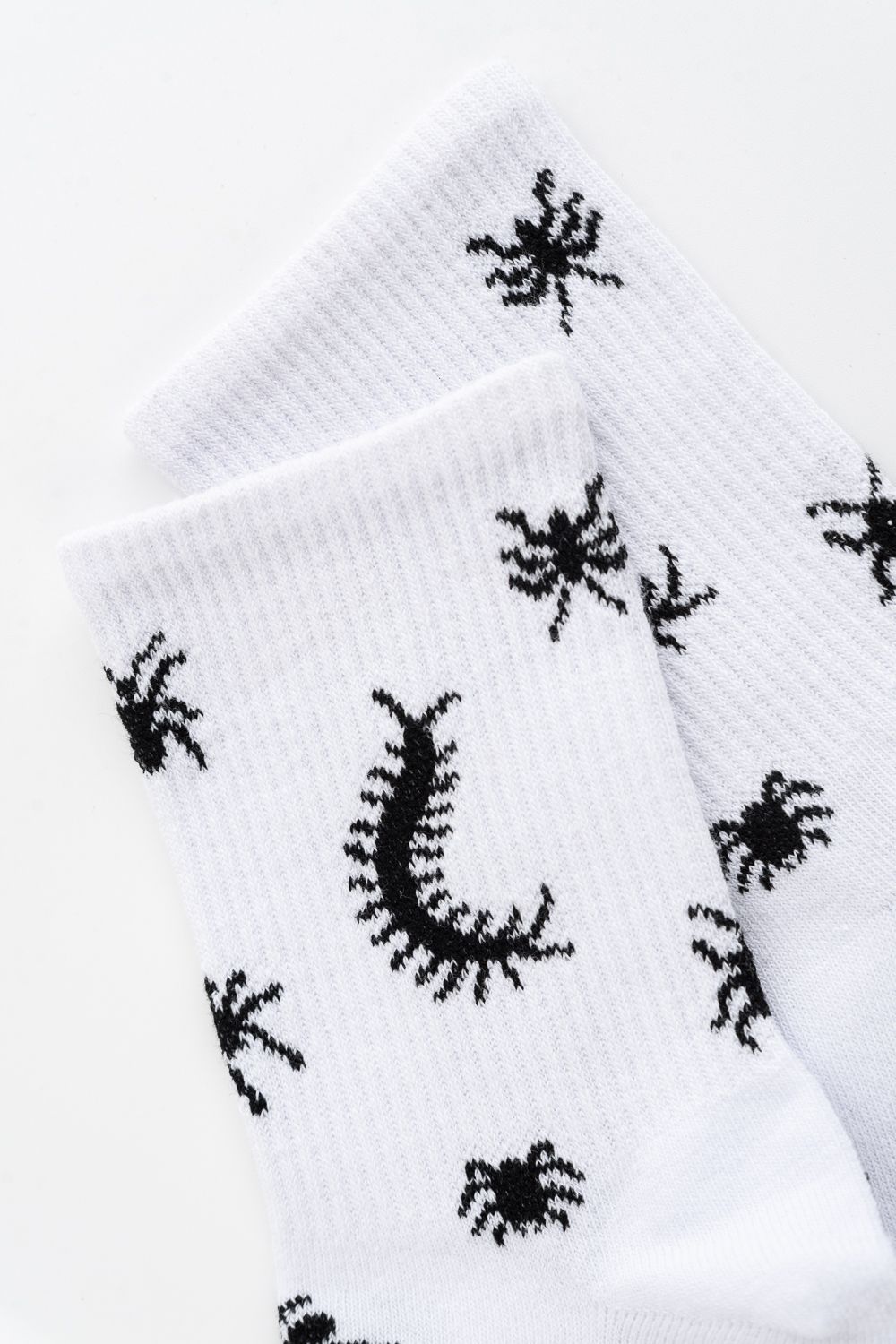 Комплект носков с резинкой по всей верхней части. По всему носку изображение насекомых. В комплекте 3 пары.