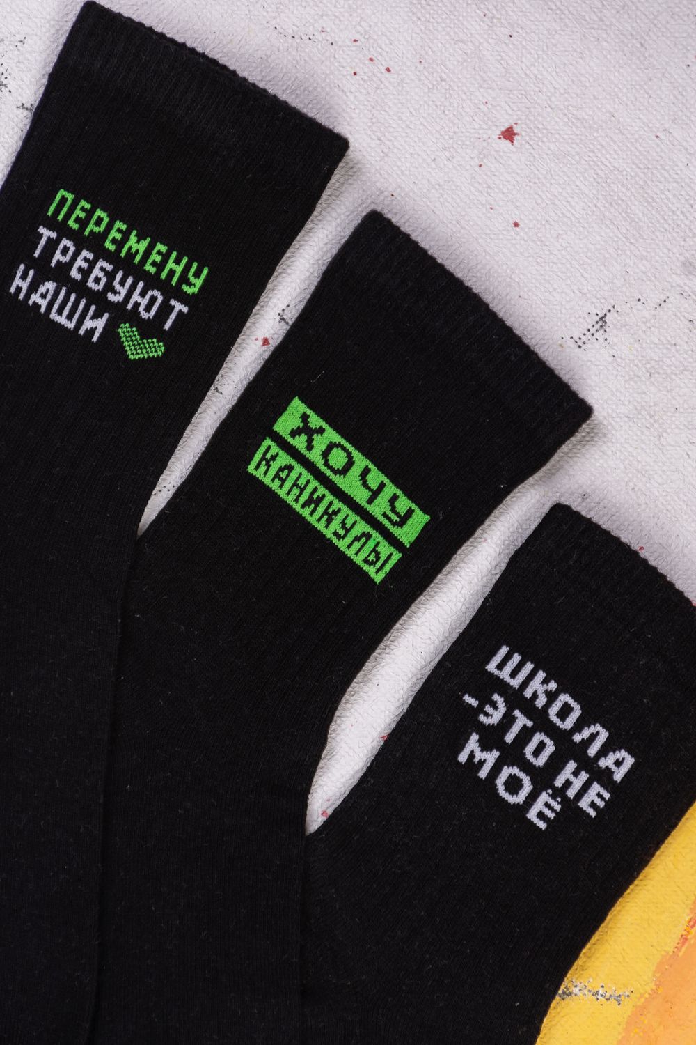 Набор подростковых носков с оригинальными надписями. В упаковке 3 пары - по 1 паре каждого вида