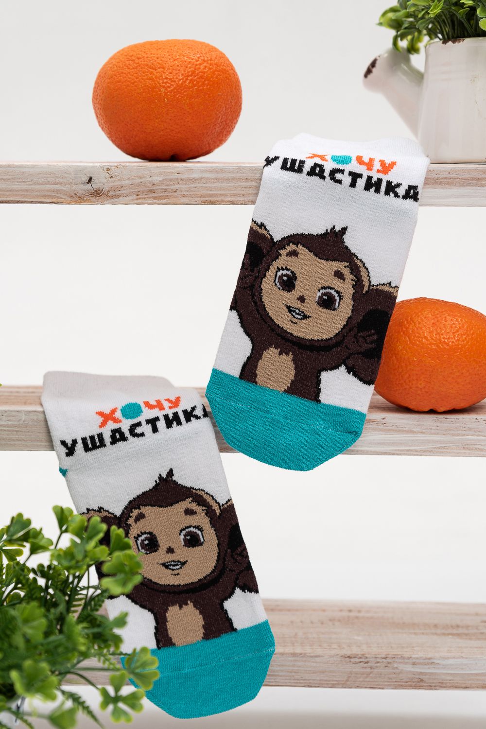 Детские носочки с Чебурашкой. Узнаваемый герой для любого ребенка. Веселый и задорный ушастик украсил детские носочки. В комплекте 1 пара носочков.