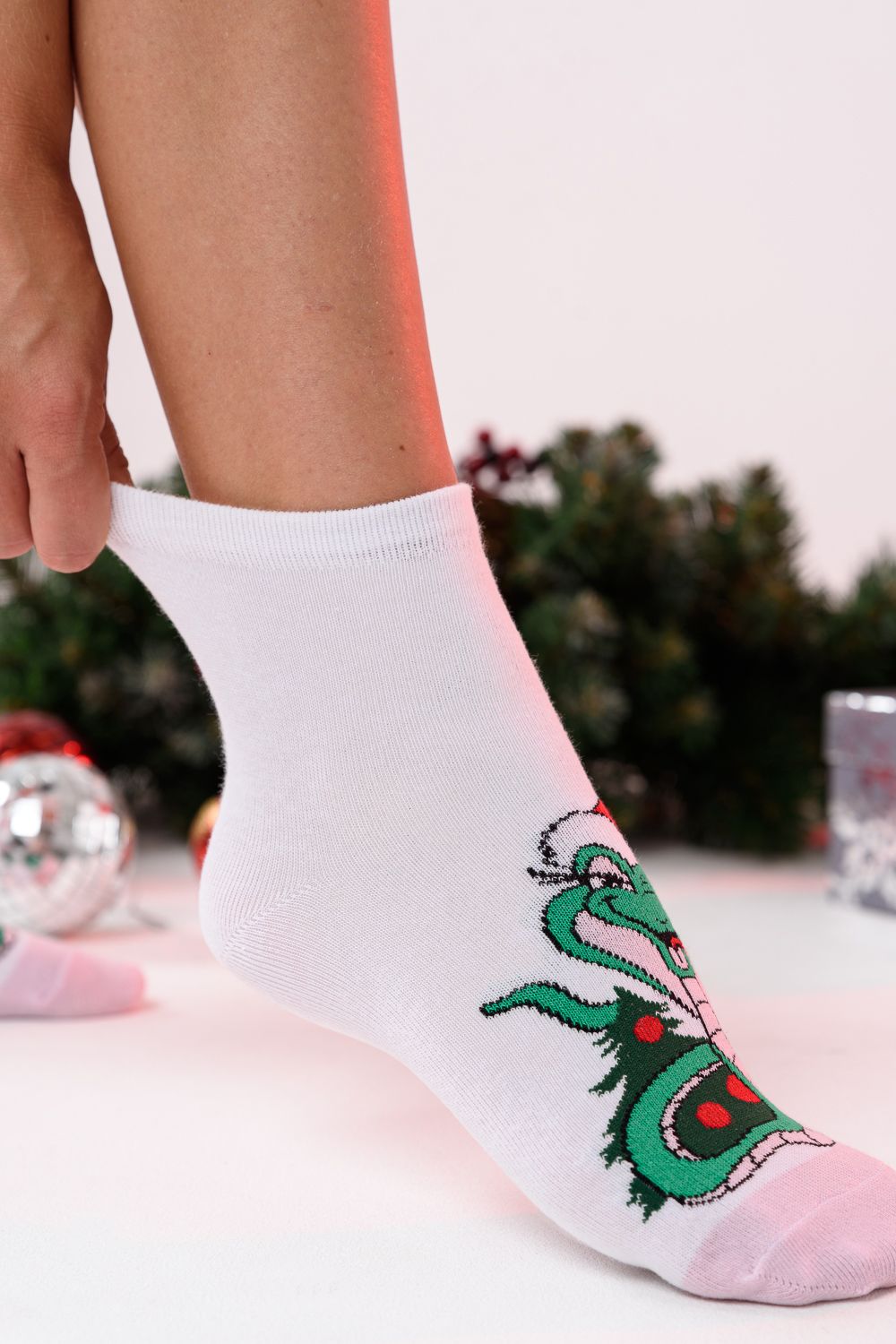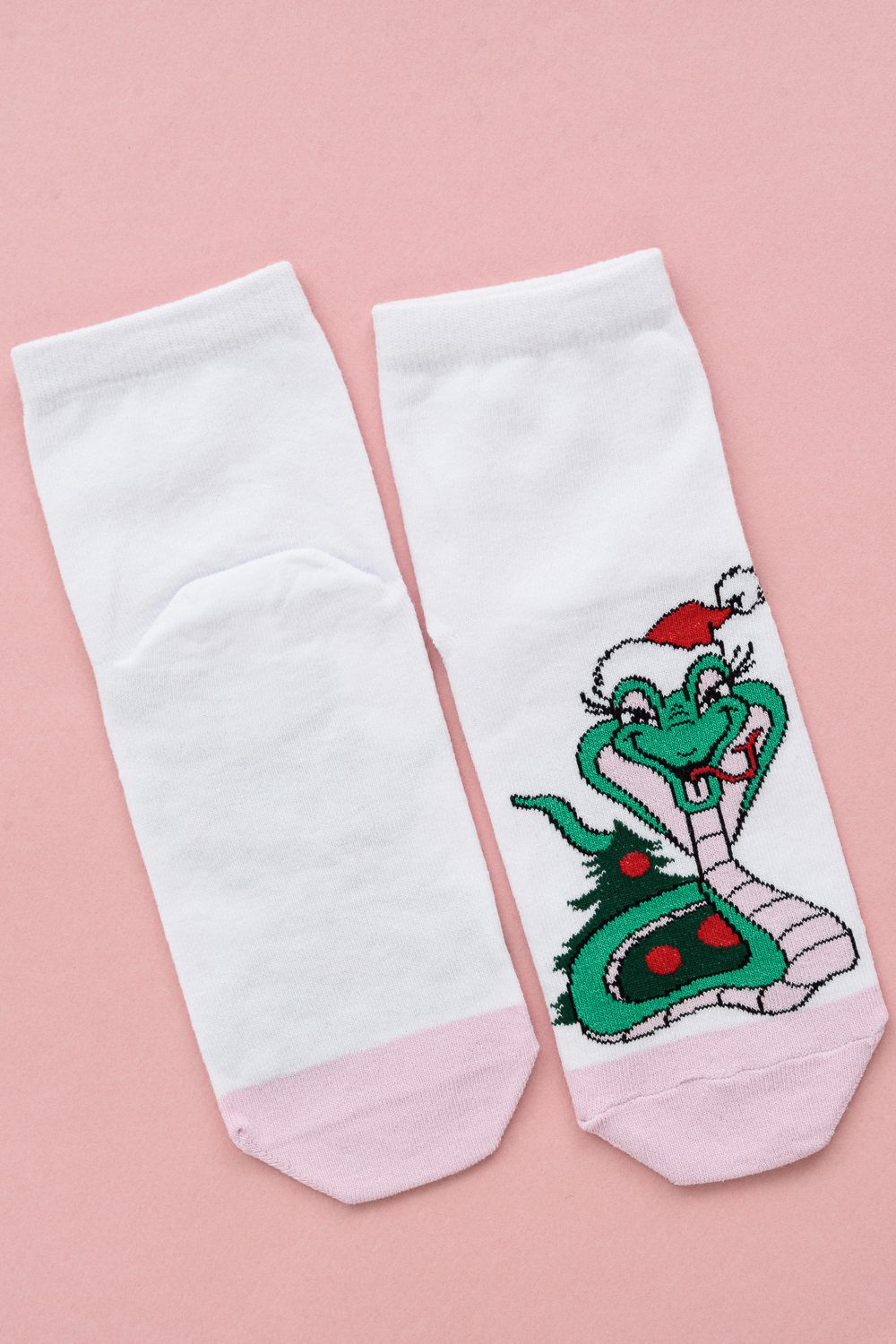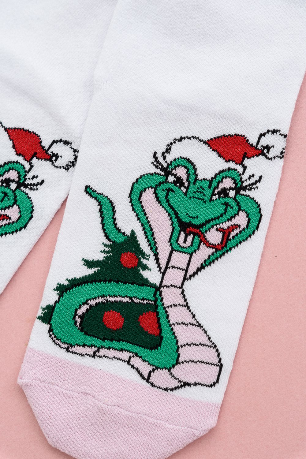 Оригинальные женские новогодние носки. В комплекте 1 пара. На основной части носка изображение символа будущего года Змеи.