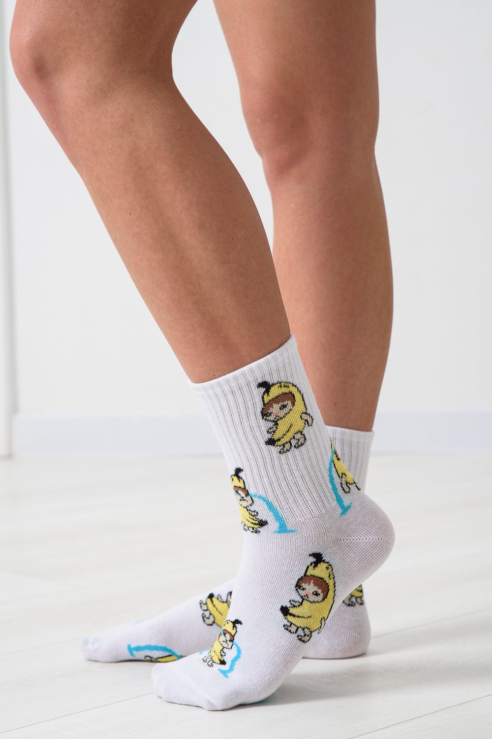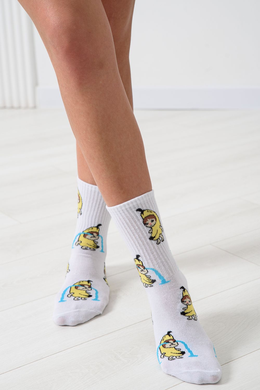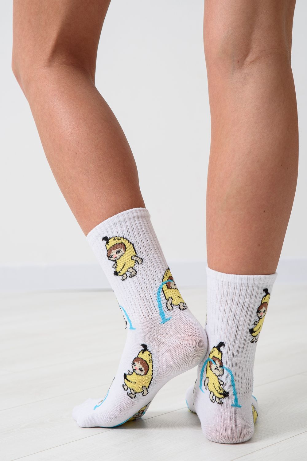 Носки женские 1 пара. по всему носочку рисунки котиков в костюме бананов. Очень веселые и оригинальные носочки.