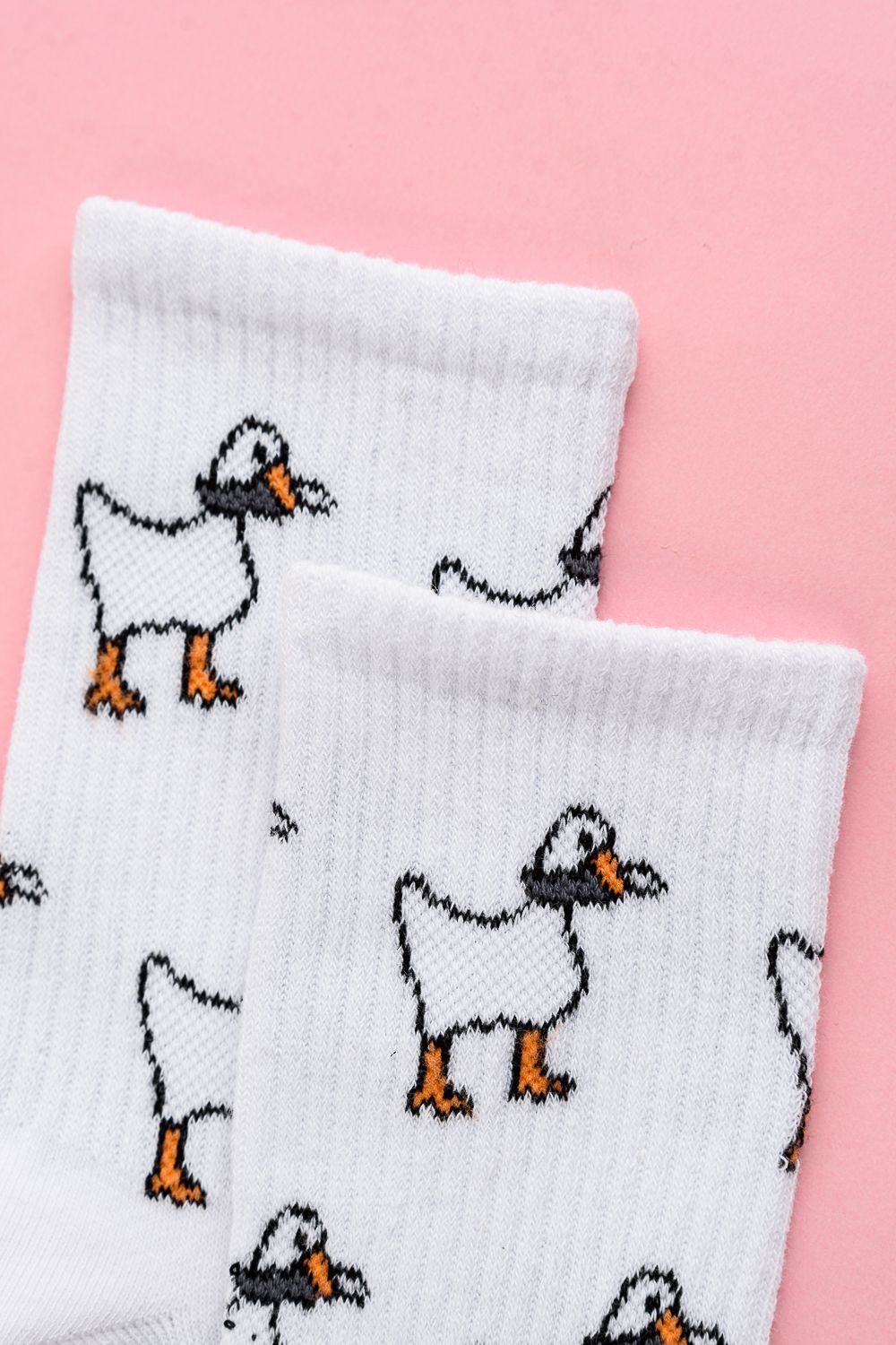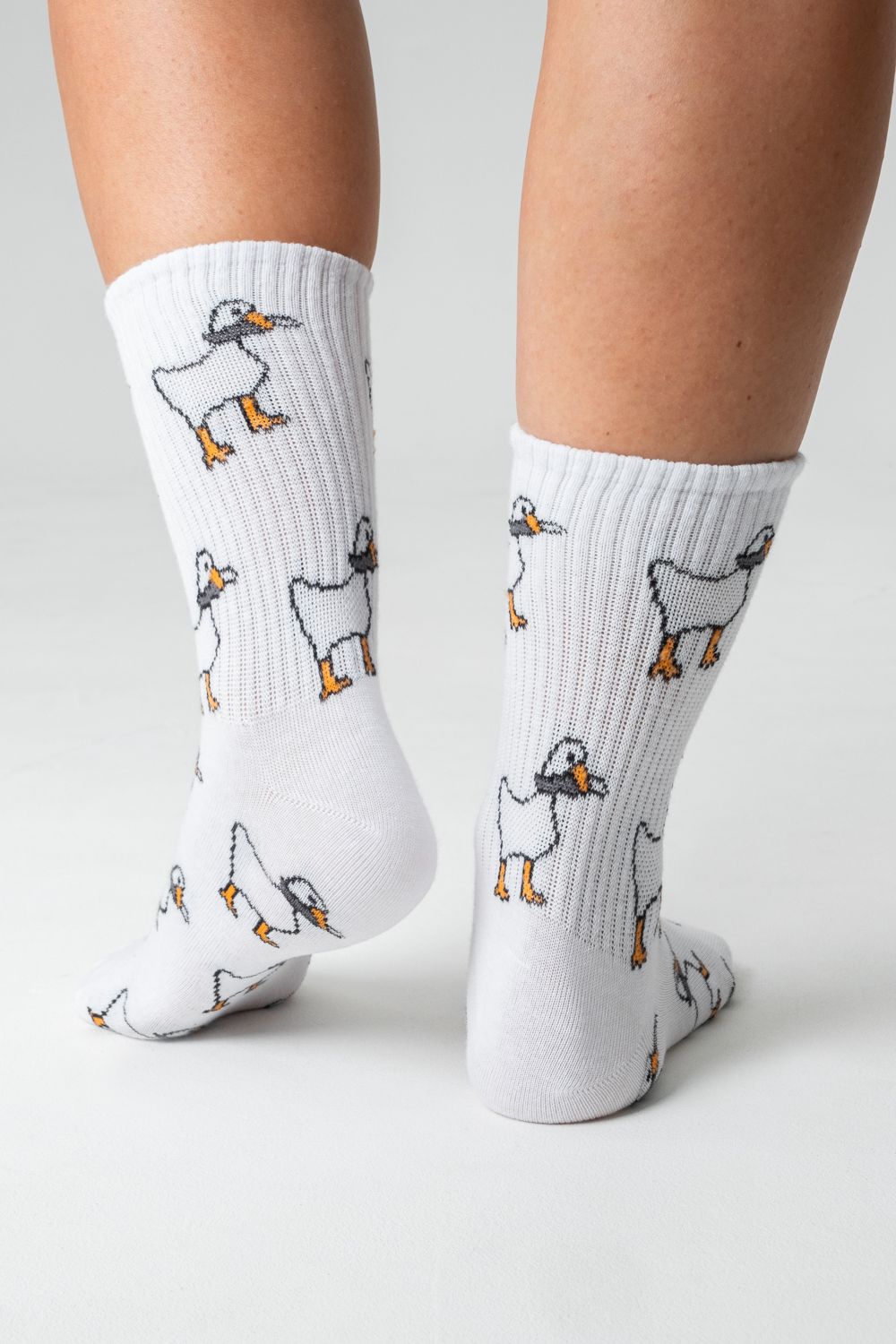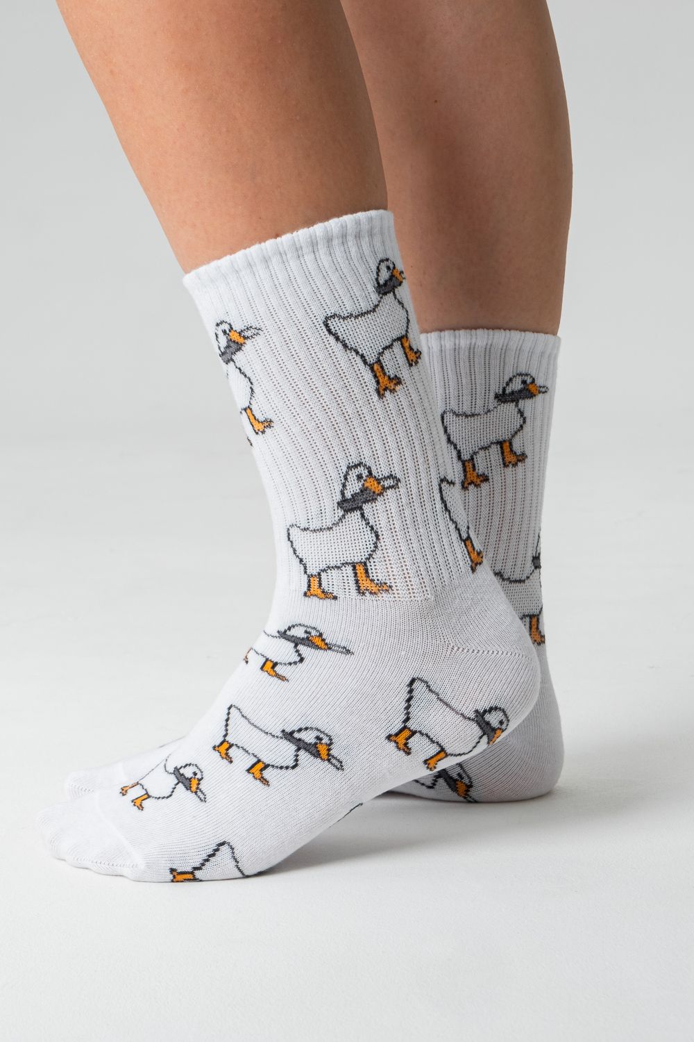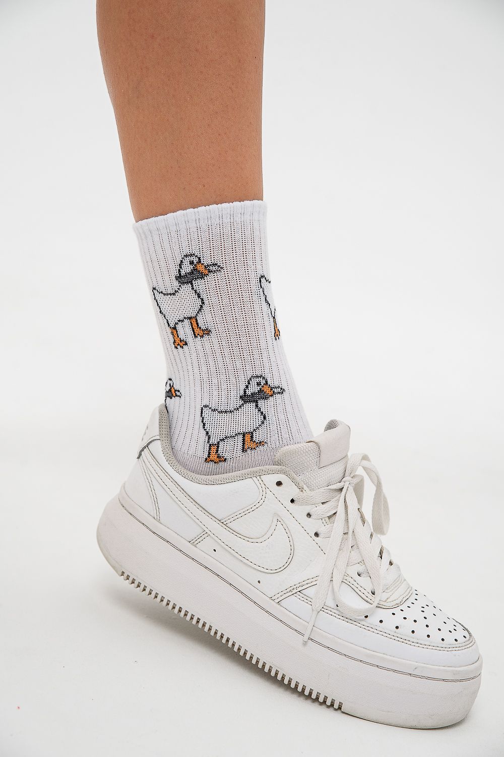 Трендовые носки для женщин. Широкая резинка, по всему носку изображение гусей. В наборе 2 пары.