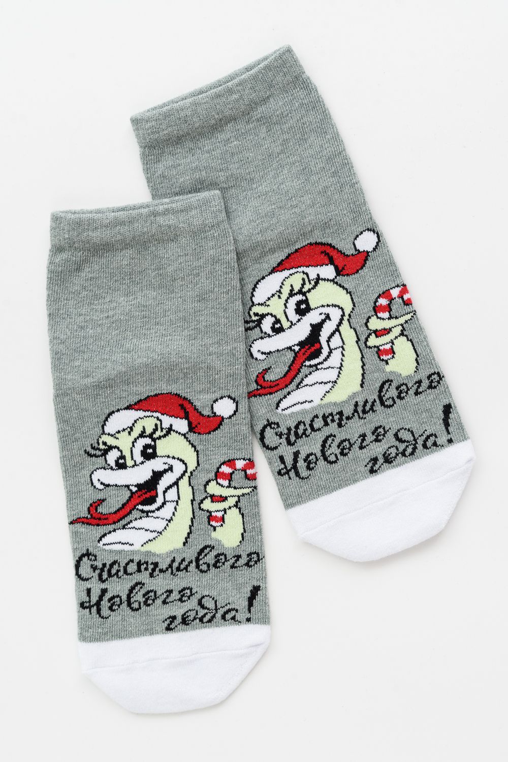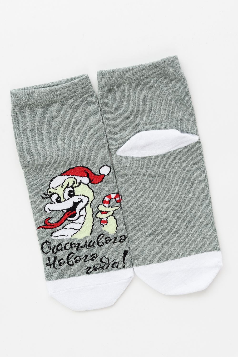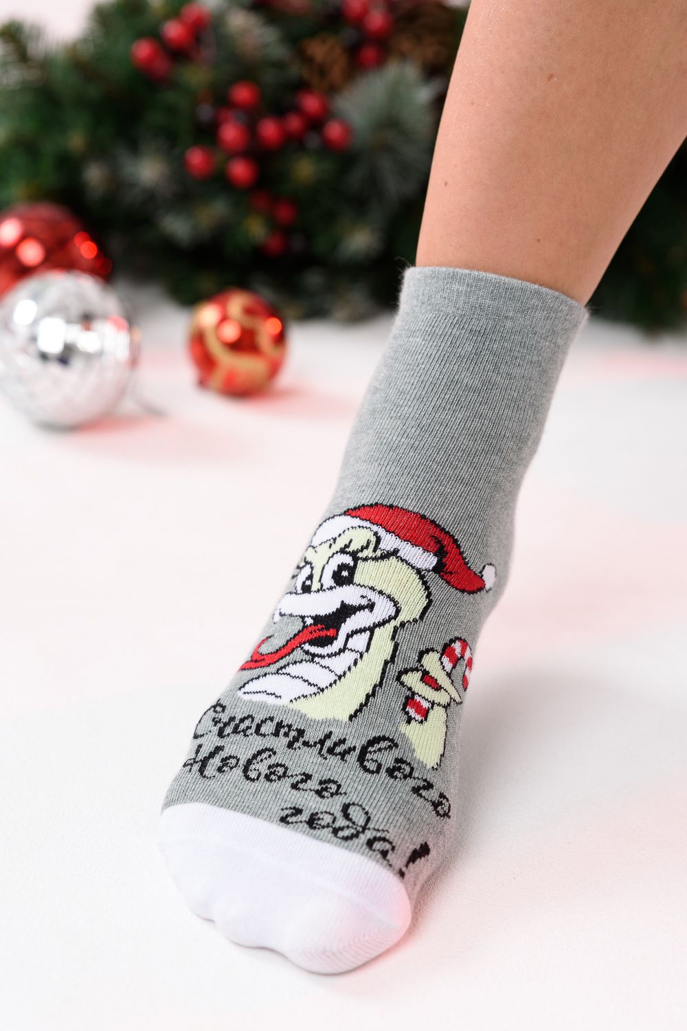 Оригинальные женские новогодние носки. В комплекте 1 пара. На основной части носка изображение символа будущего года Змеи.