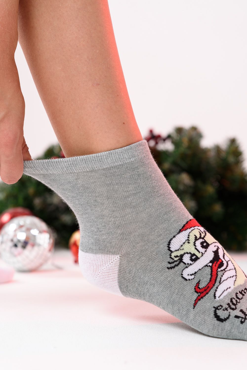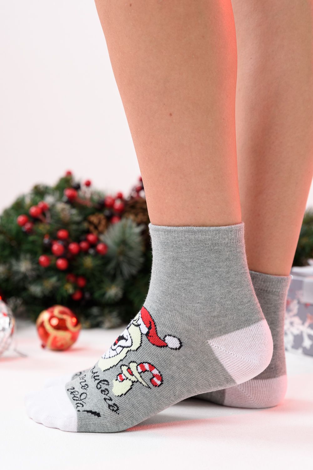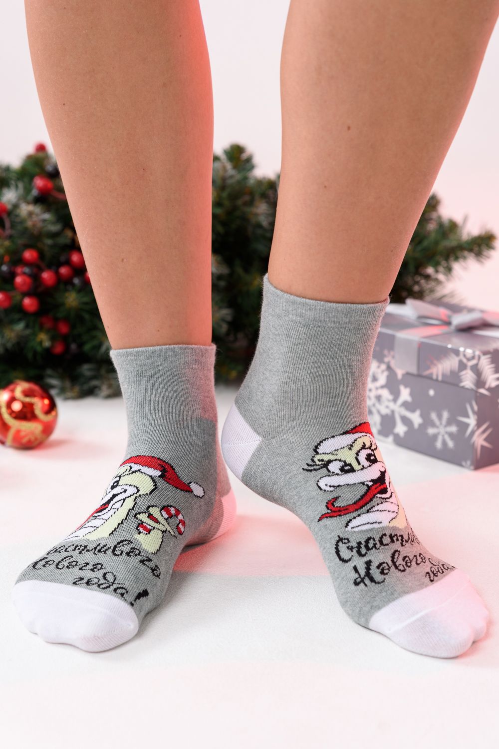 Оригинальные женские новогодние носки. В комплекте 1 пара. На основной части носка изображение символа будущего года Змеи.