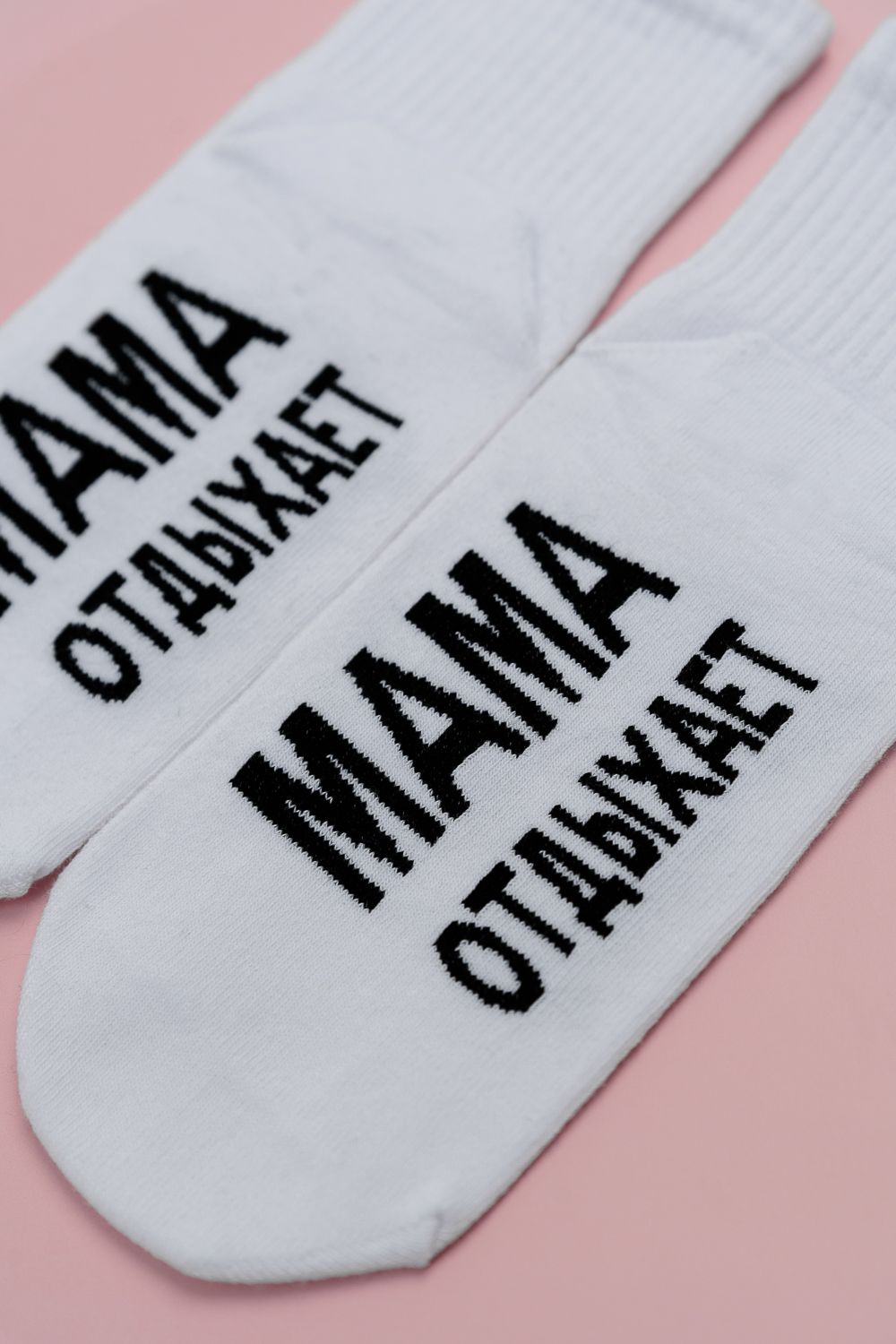 Комплект женских носков 1 пара. Широкая резинка. На стопе надпись "Мама отдыхает".
