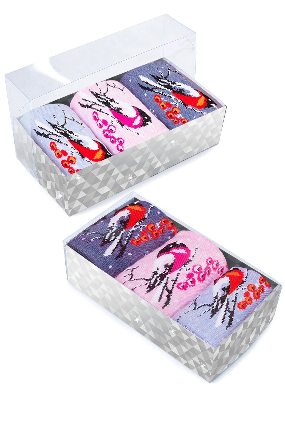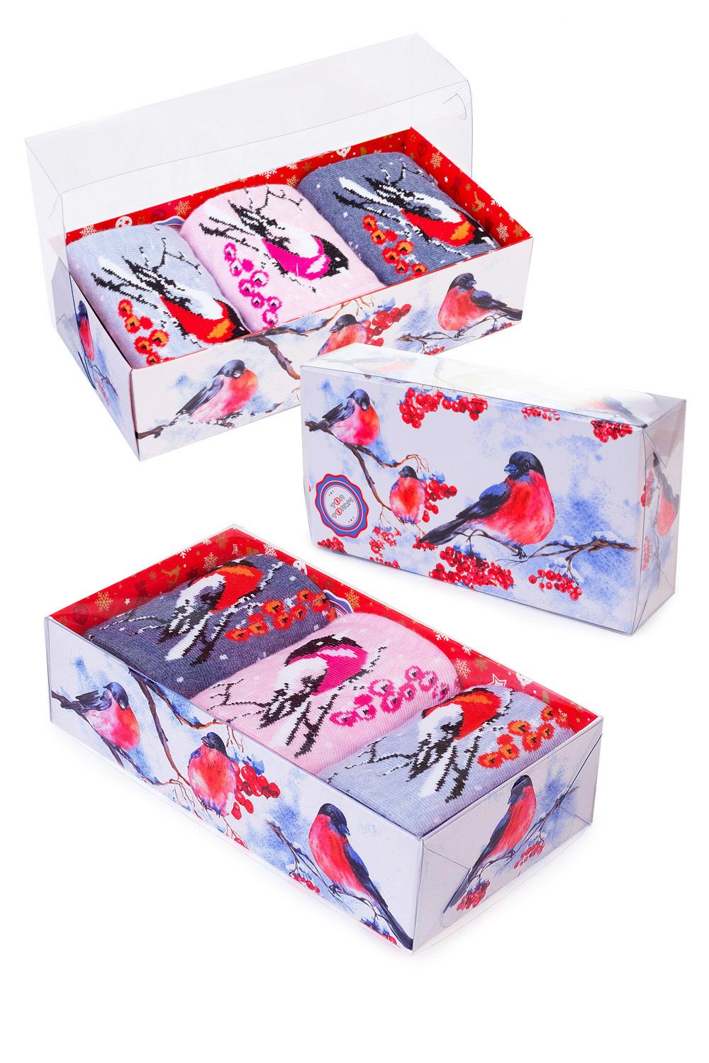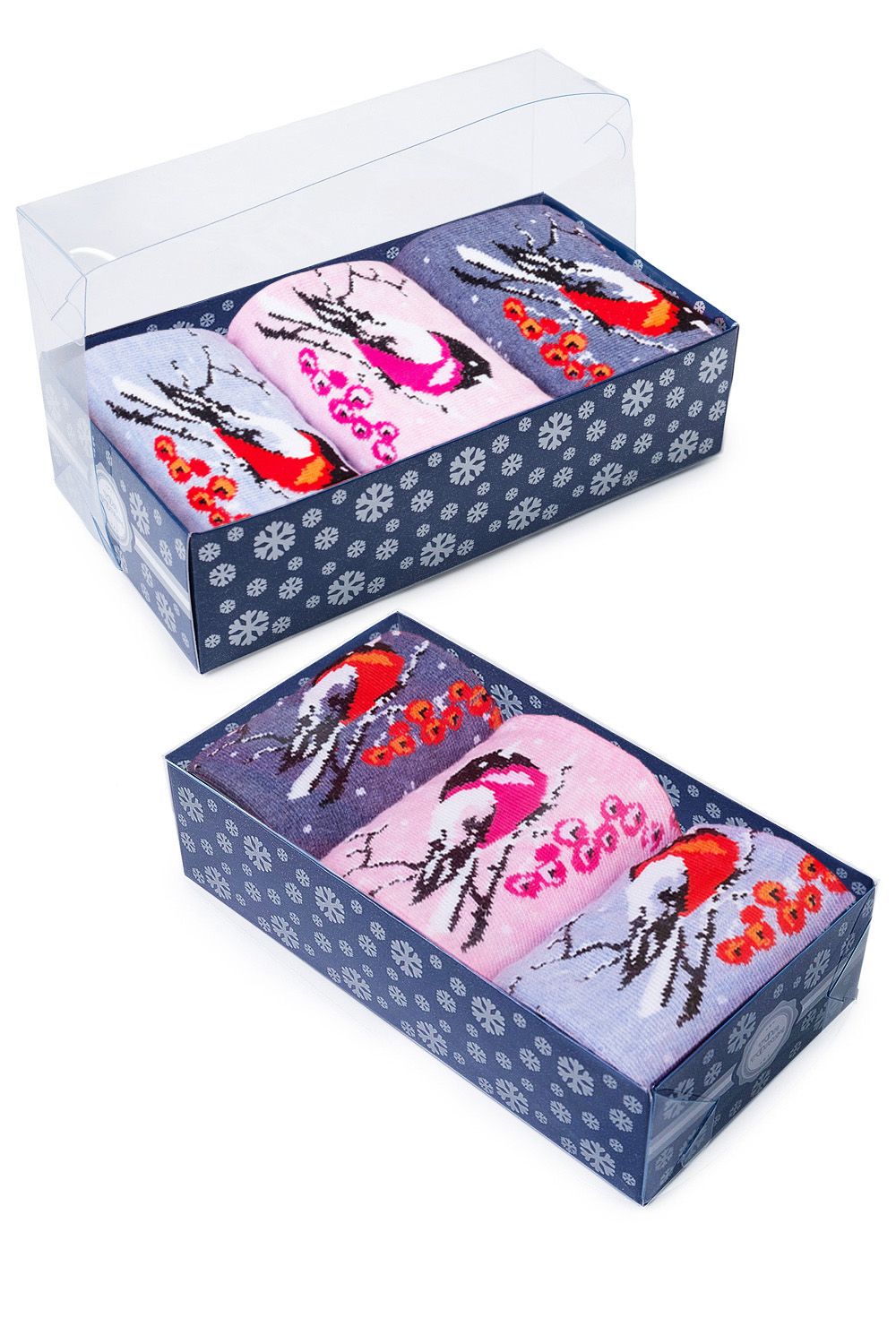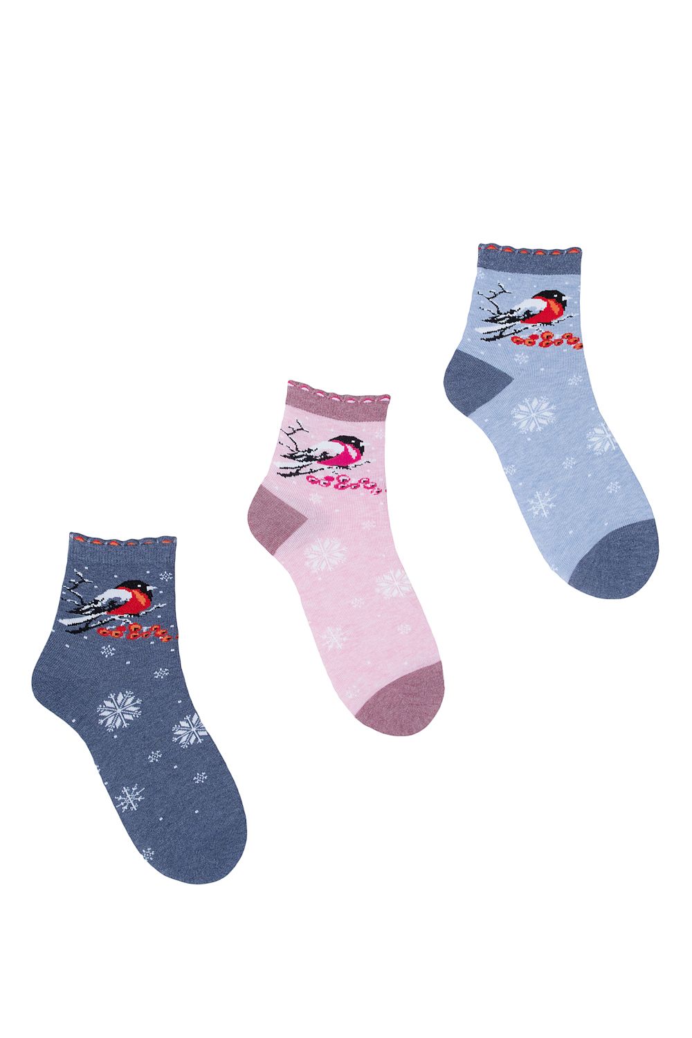 Носки женские Снегири (набор 3 пары) - голубой, бордо, джинс