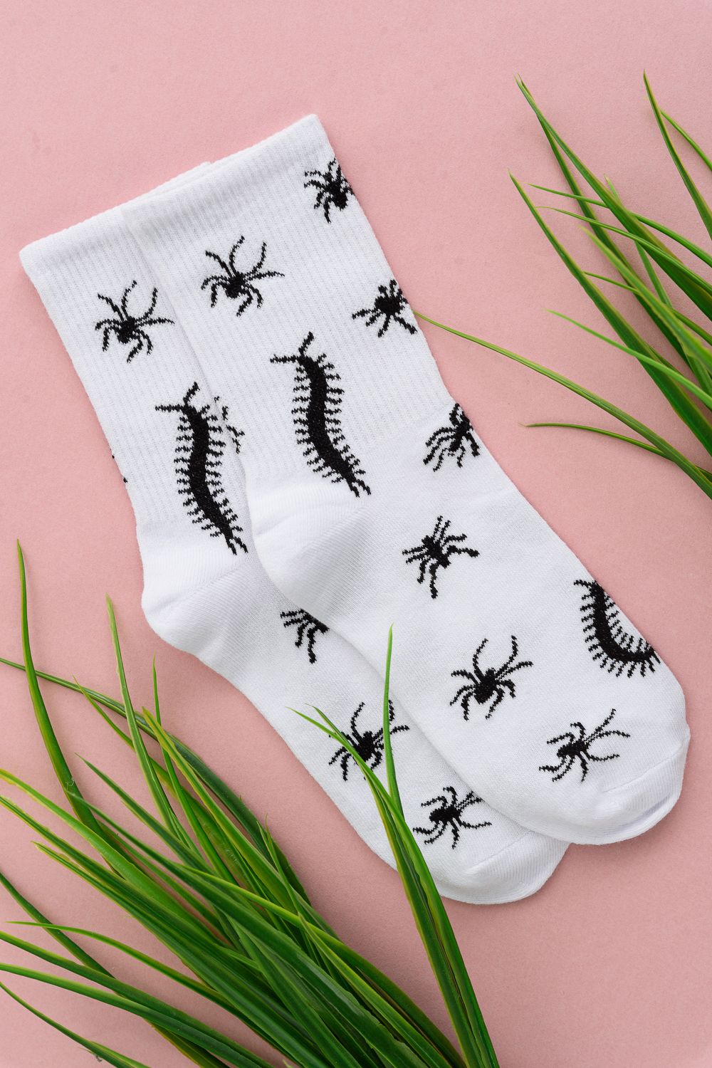 Комплект носков с резинкой по всей верхней части. По всему носку изображение насекомых. В комплекте 2 пары.