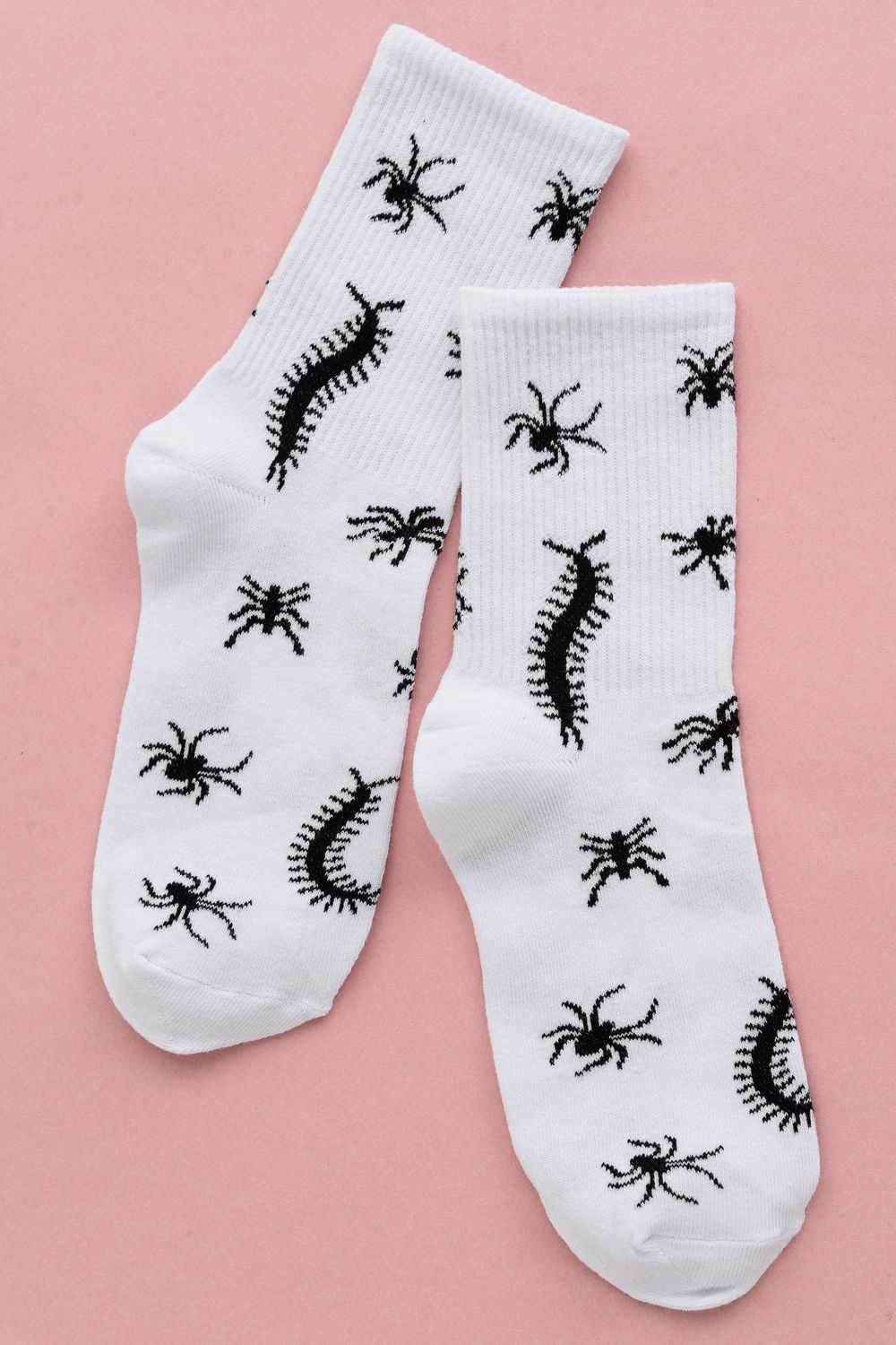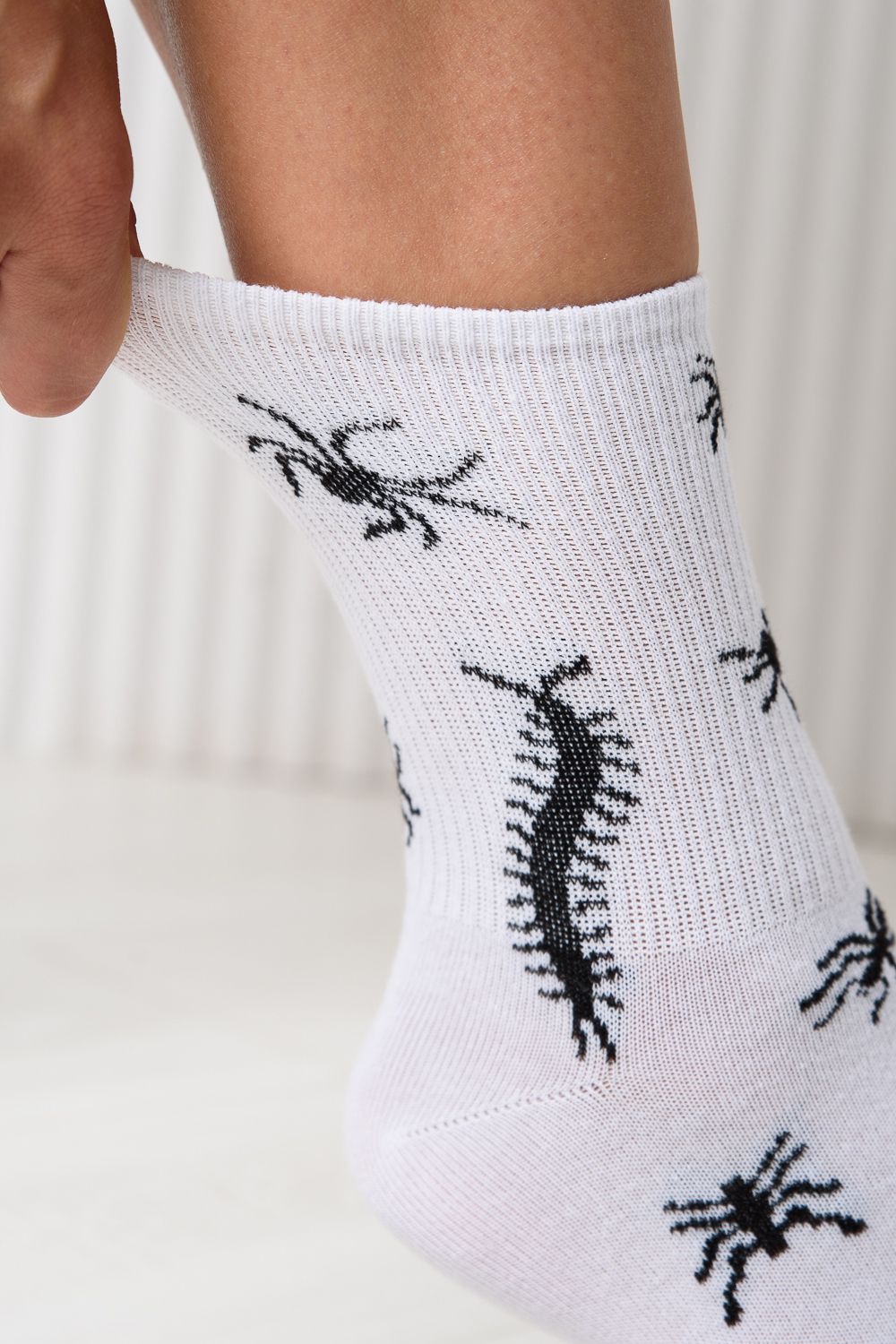 Комплект носков с резинкой по всей верхней части. По всему носку изображение насекомых. В комплекте 3 пары.