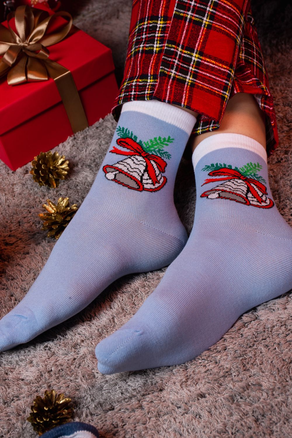 Новогодний подарочный набор женских носков с изображением тройки лошадей, зимнего пейзажа и новогодних колокольчиков. В комплекте 3 пары в красивой картонной упаковке
