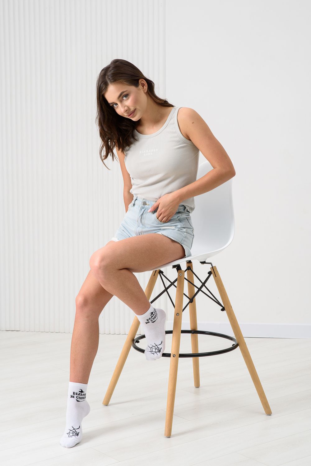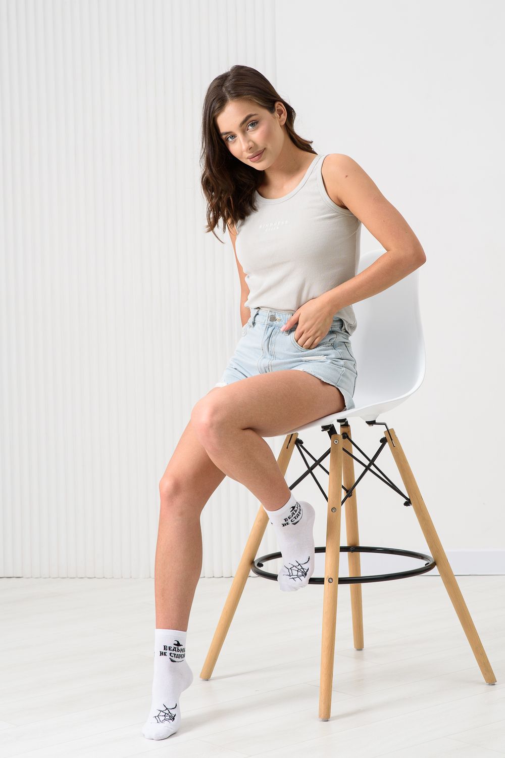 Удобные женские носки с надписью. Отличный выбор для девушек в качестве сувенира на 8 марта. Носки средней длины легко впишутся в повседневный лук. Прочные, из натурального хлопка с добавлением эластана, не выстирываются и не скатываются. Удобная широкая резинка.