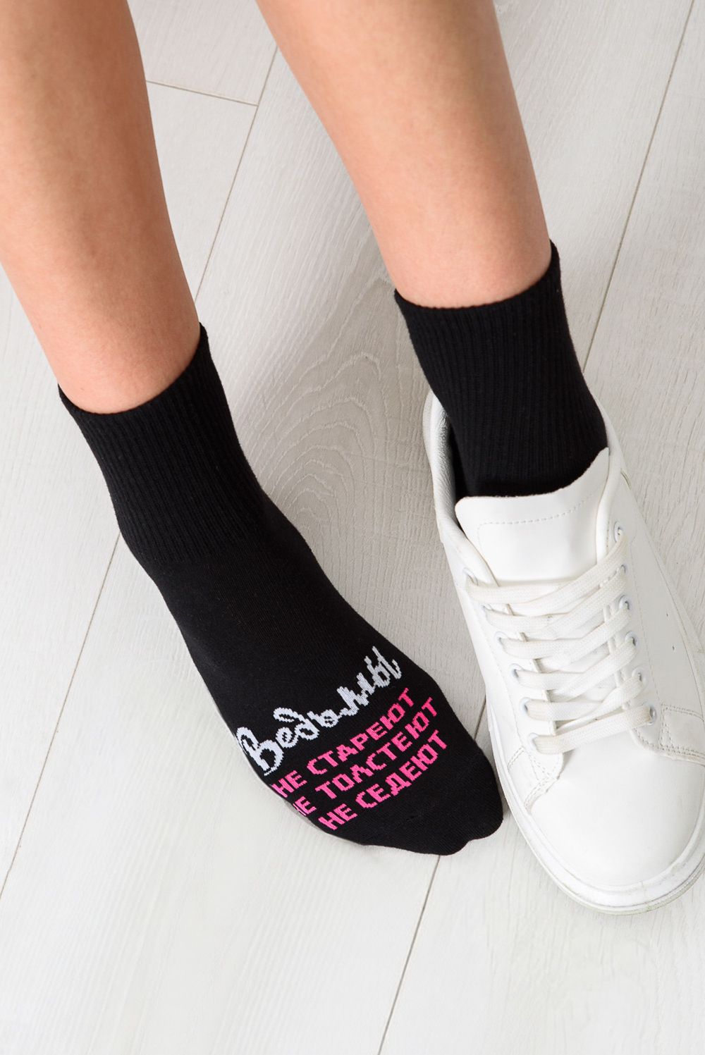 Добавьте в свой образ чуточку магии и юмора с этими стильными носками! Белые носки с яркой надписью «Ведьмы не стареют, не толстеют, не седеют» созданы для тех, кто любит быть в центре внимания и всегда верит в маленькие чудеса. Мягкий и приятный к телу материал подарит комфорт на весь день, а оригинальный дизайн подчеркнёт вашу индивидуальность. Отличный подарок для себя или подруги, которая уверена: всё волшебство — в ней самой!
