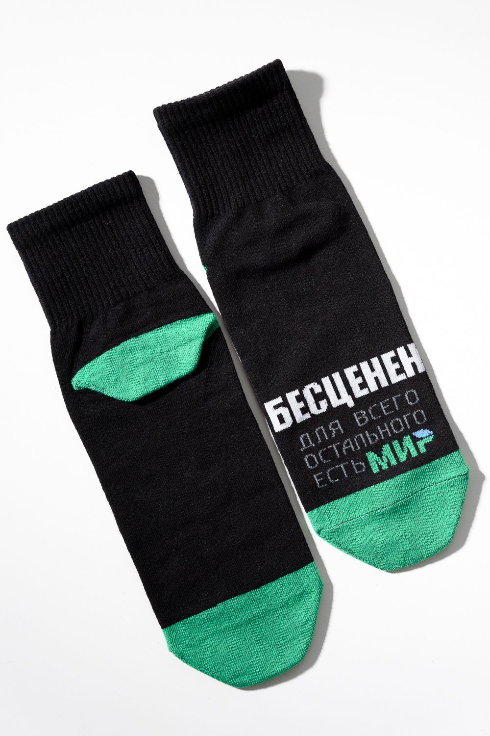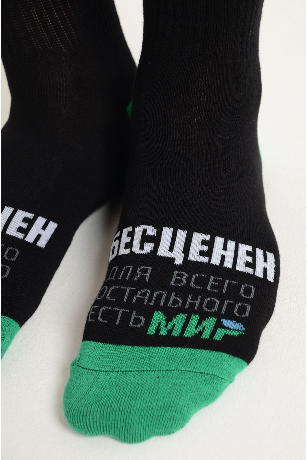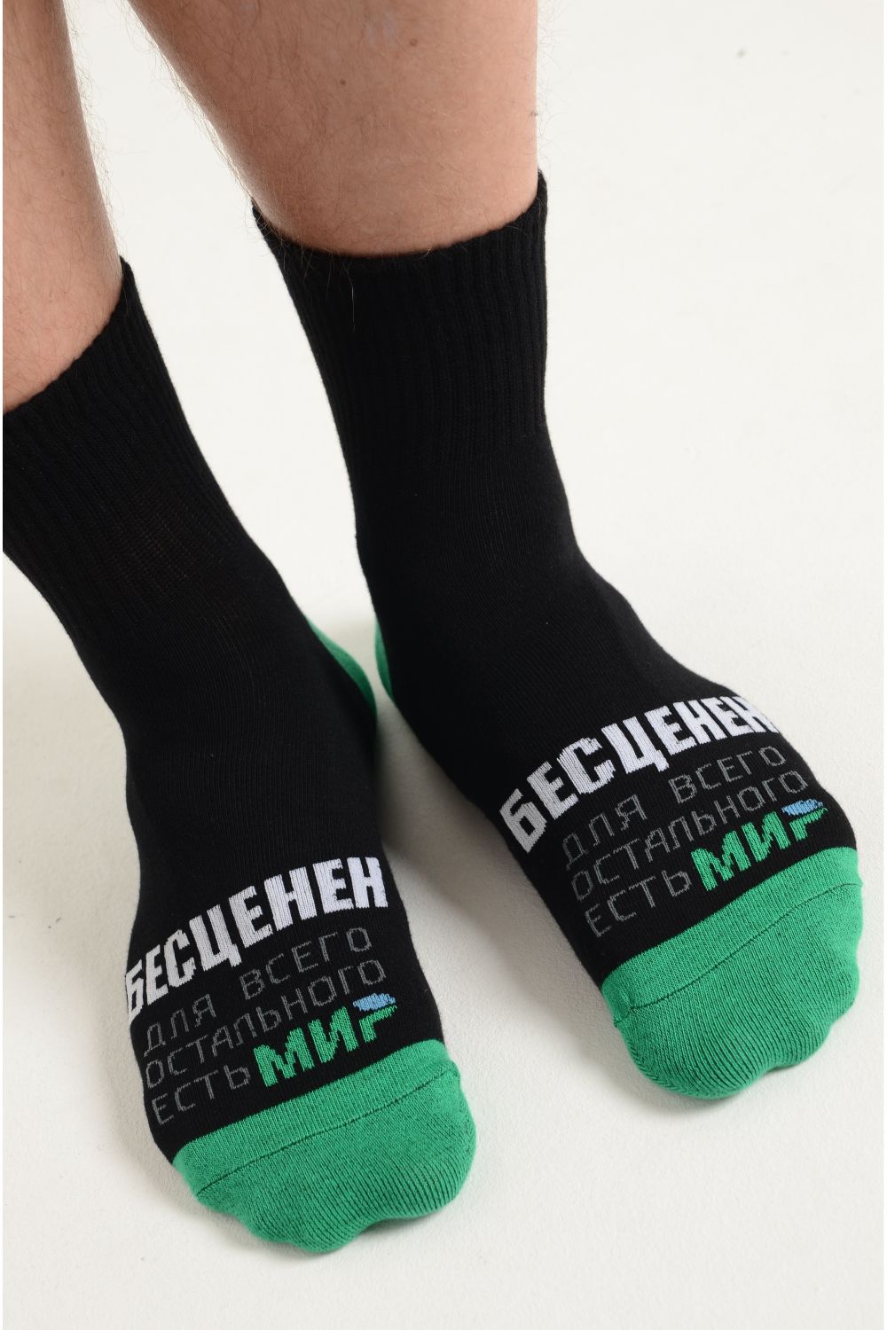 Комплект носков для мужчин, по верхней части носка надпись "Бесценен, для всего остального есть МИР"