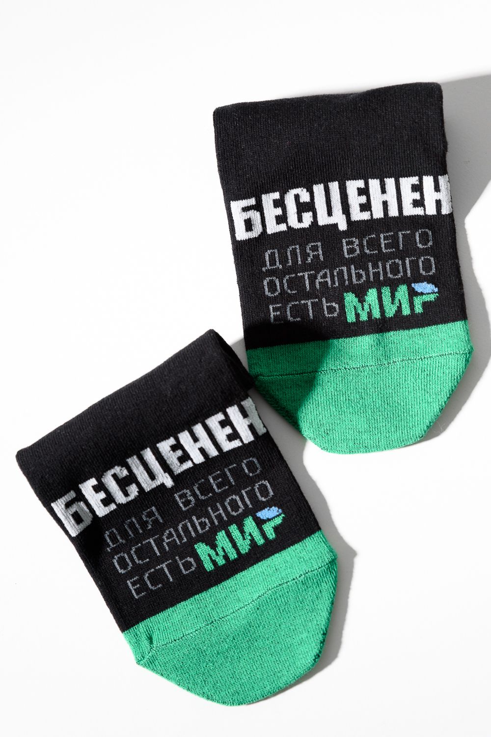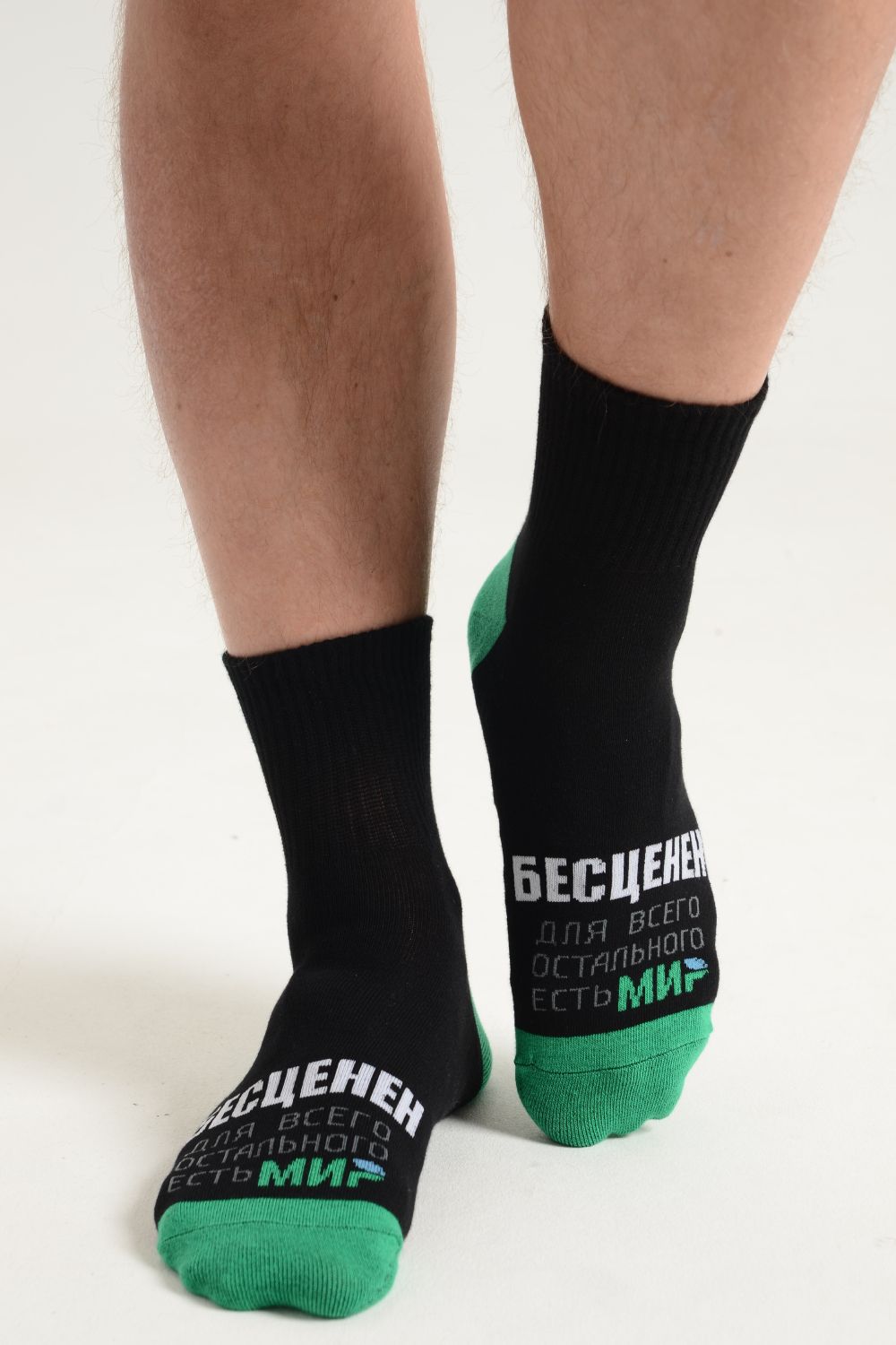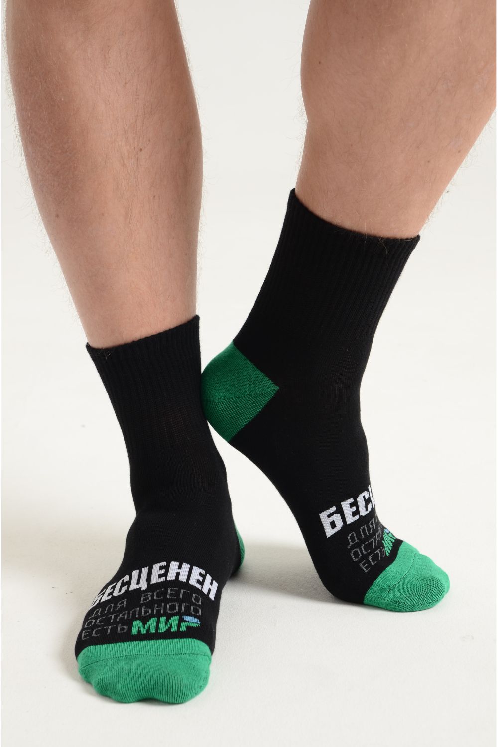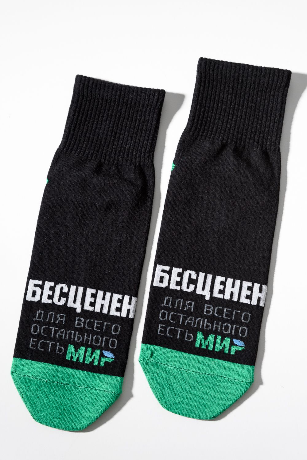 Комплект носков для мужчин, по верхней части носка надпись "Бесценен, для всего остального есть МИР"
