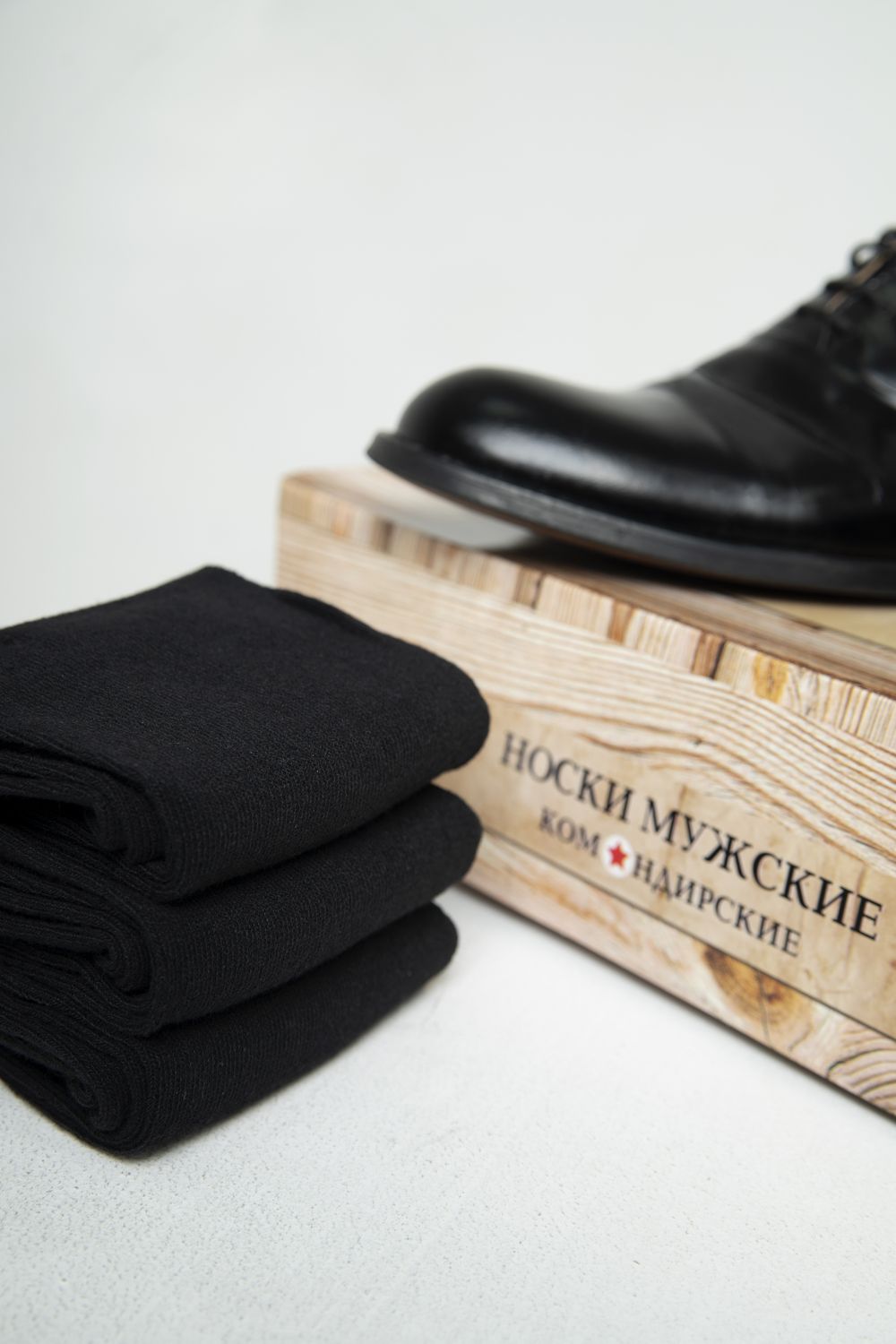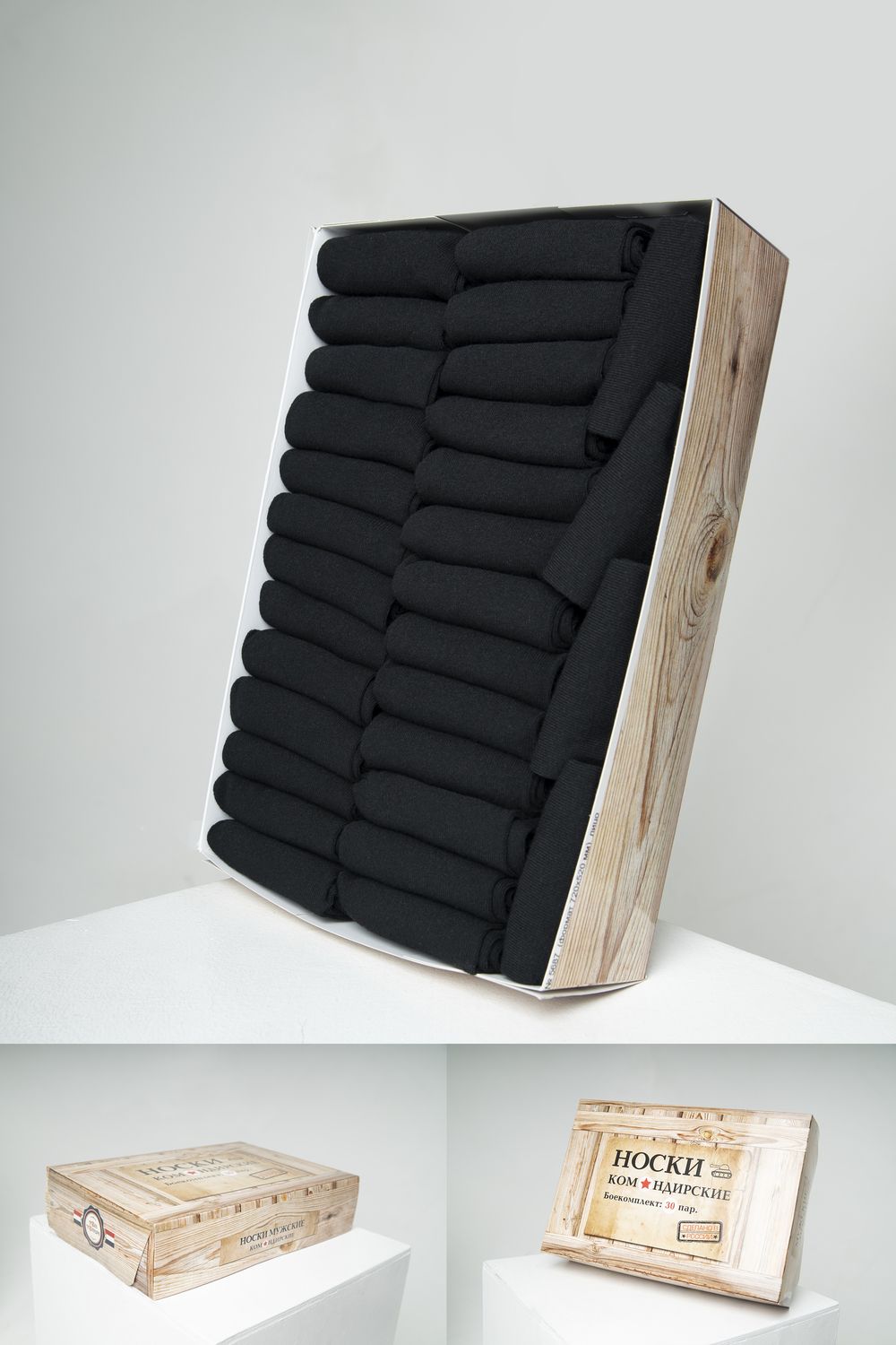Подарочный набор мужских носков. В комплекте 30 пар, картонная упаковка. Однотонная черная расцветка, высота паголенка чуть ниже классического