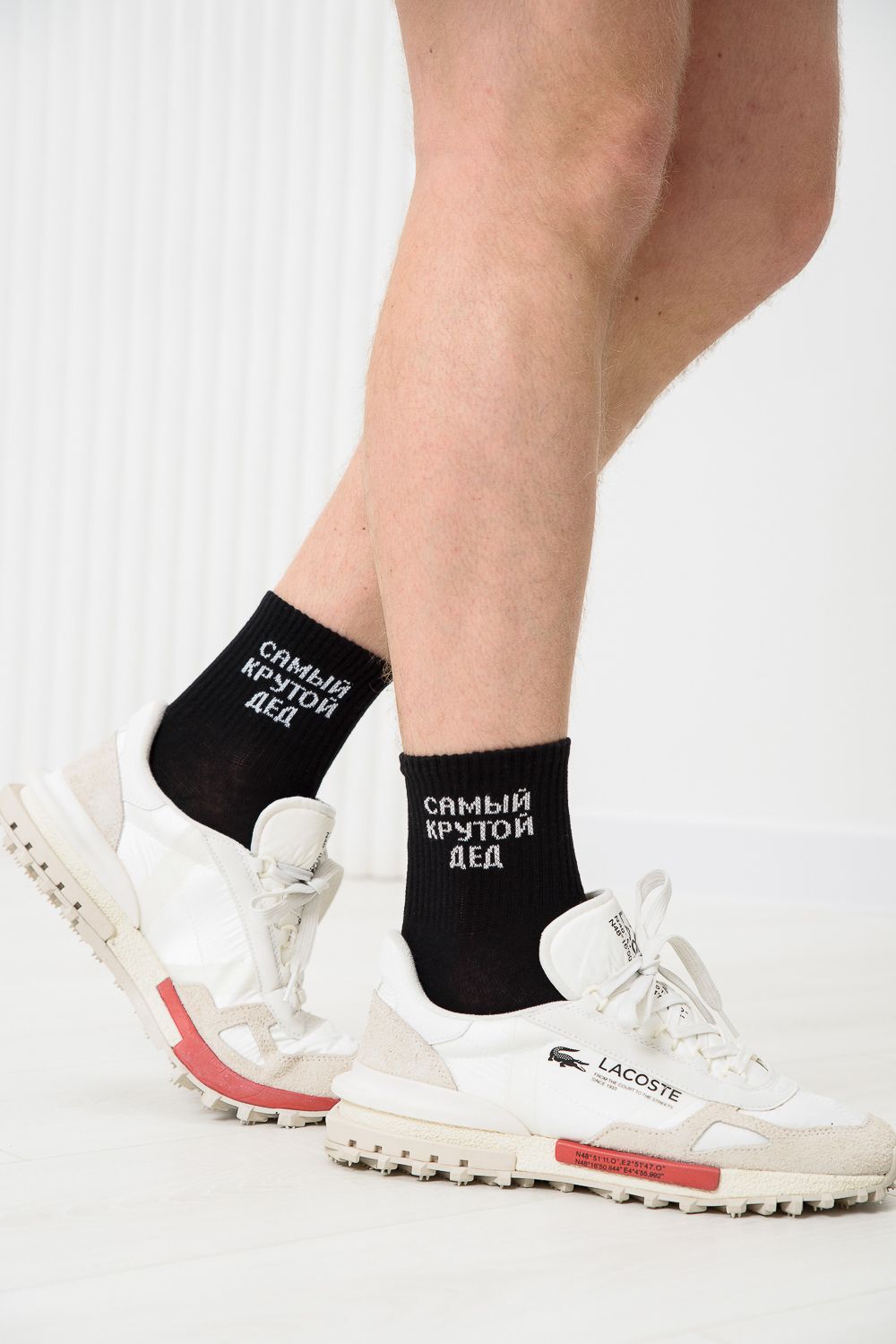 Комплект мужских носков одна пара. Широкая резинка по всей верхней части носка. На резинки надпись "самый крутой дед"