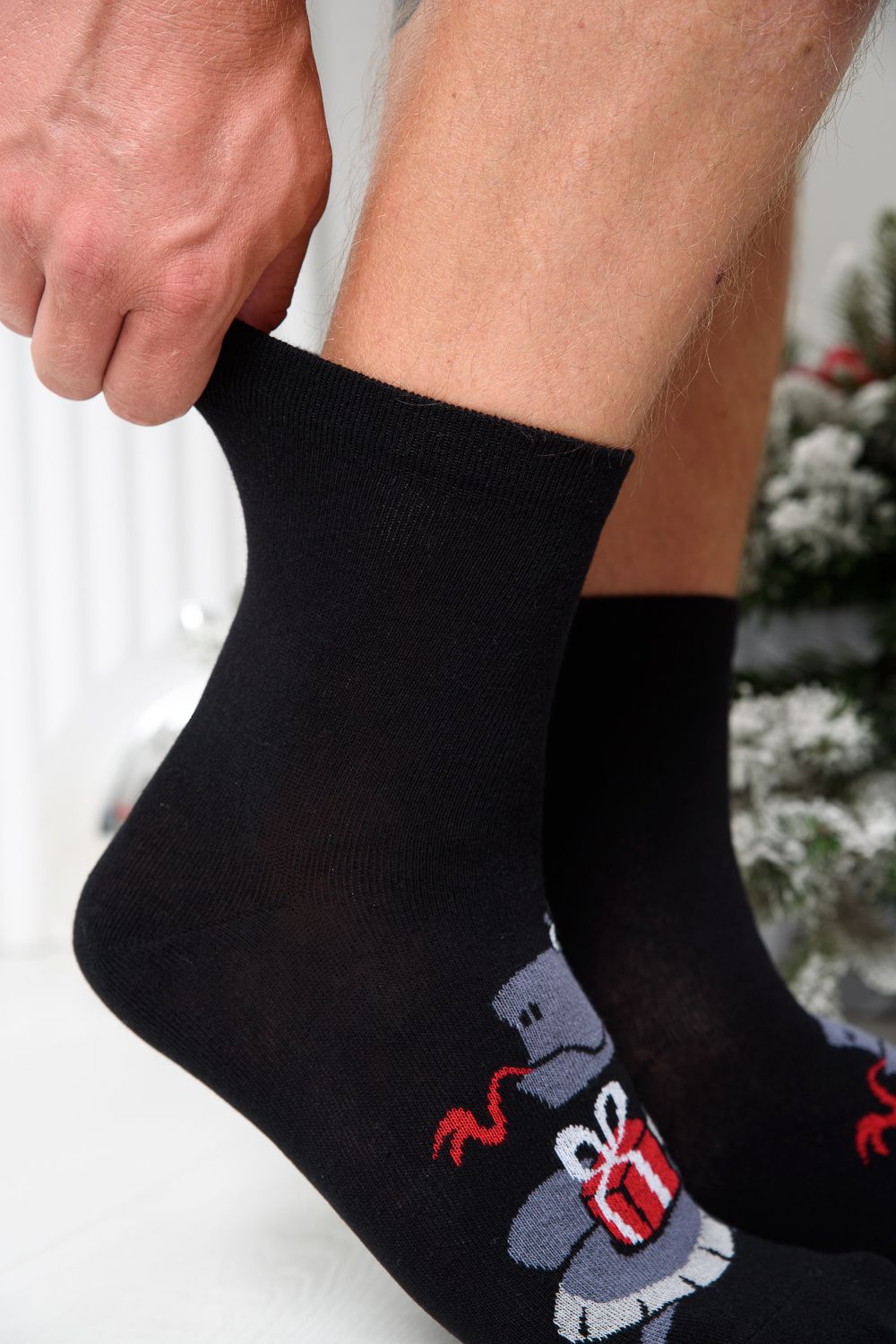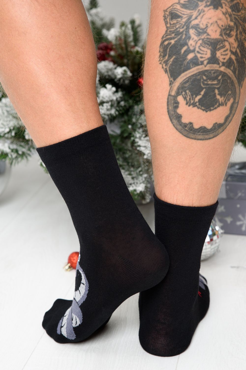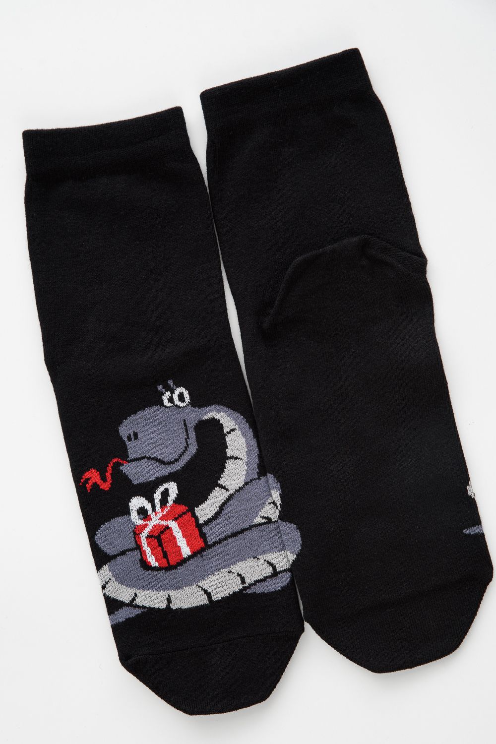 Оригинальные мужские новогодние носки. В комплекте 1 пара. На основной части носка изображение символа будущего года Змеи.