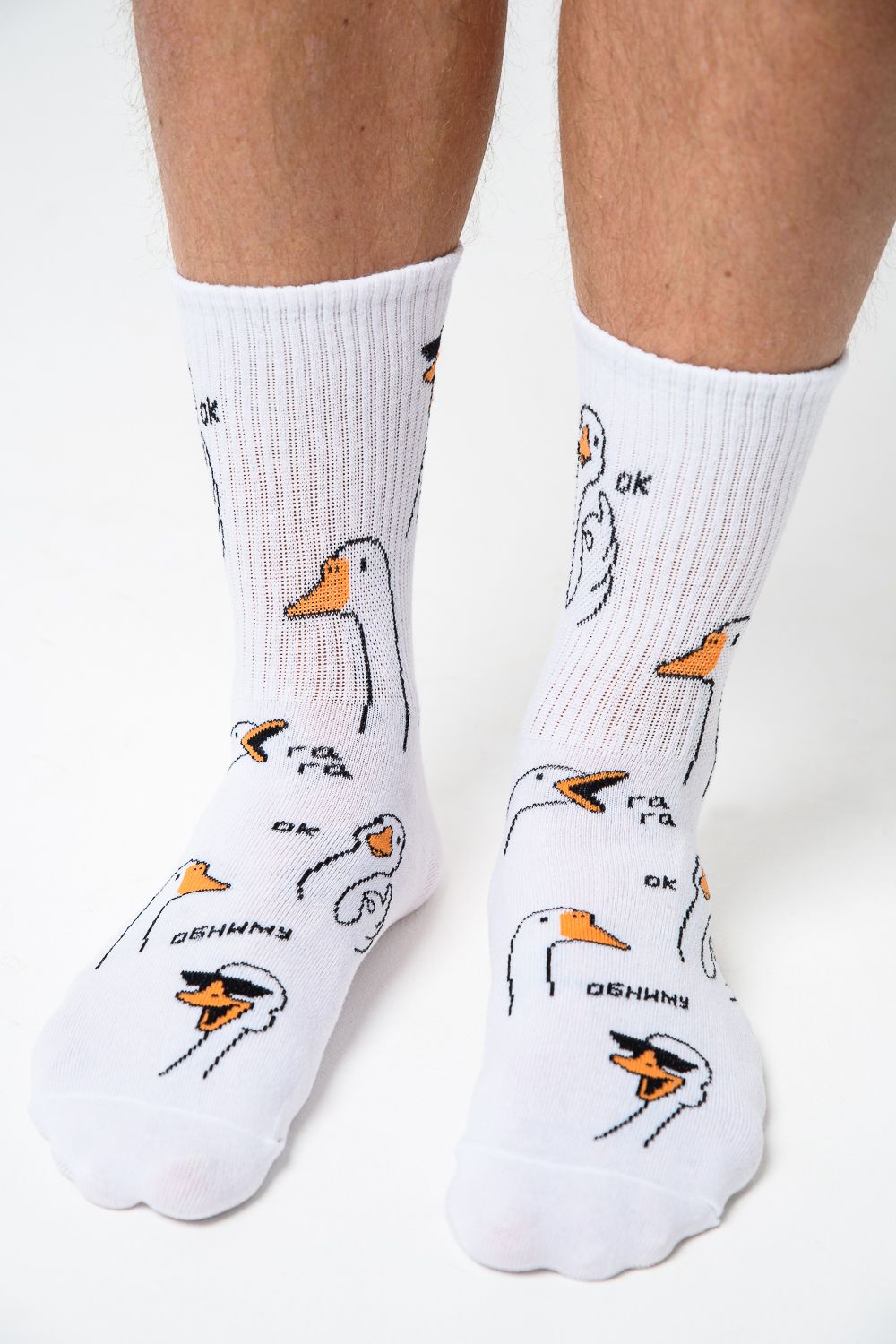 Трендовые мужские носки с гусем. Эта птица покорила сердца многих людей. Комплект 2 пары с изображением популярного гуся.