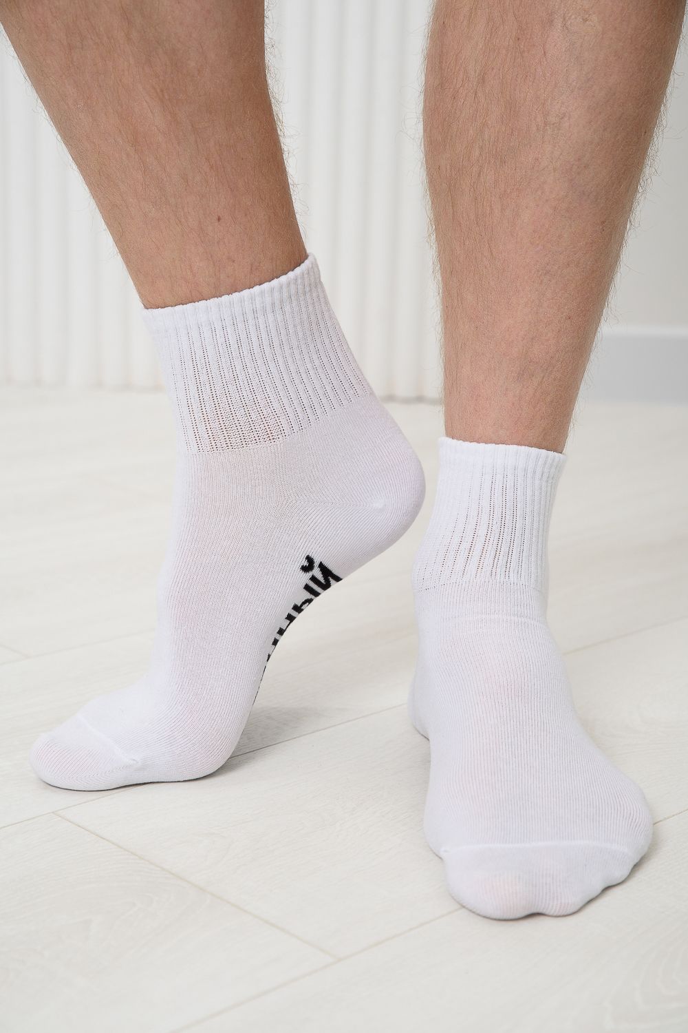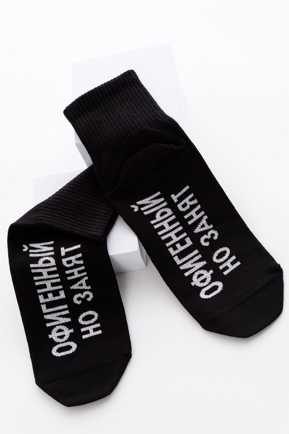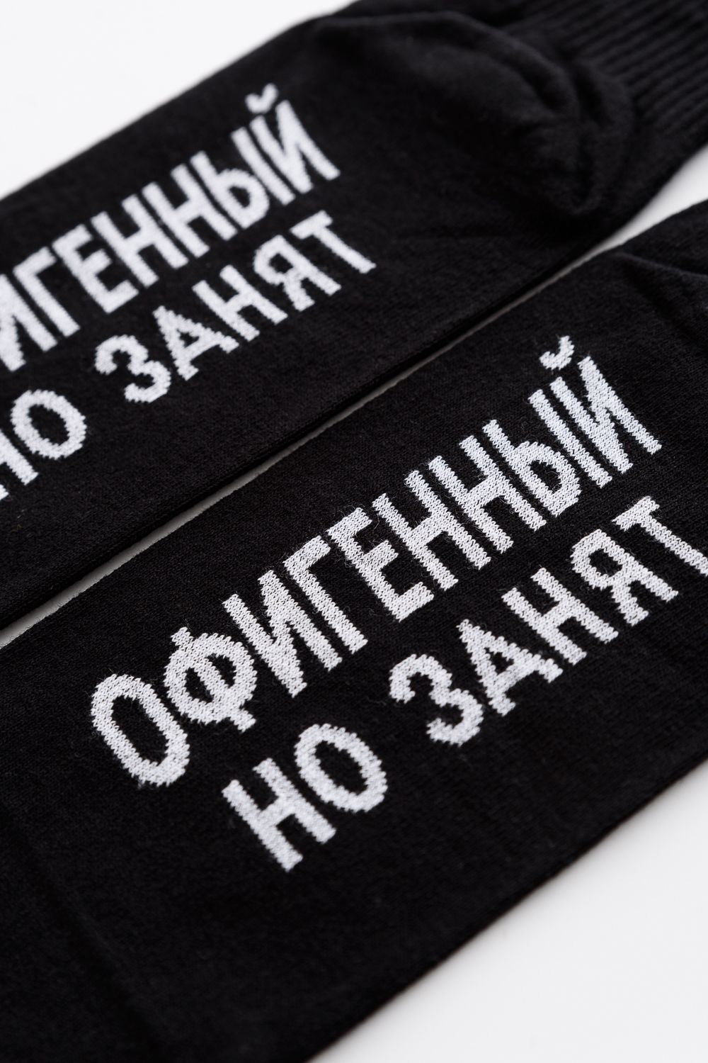 Мужские носки в комплекте 3 пары. Широкая резинка по всей верхней части носка. Надпись на стопе "Офигенный, но занят"