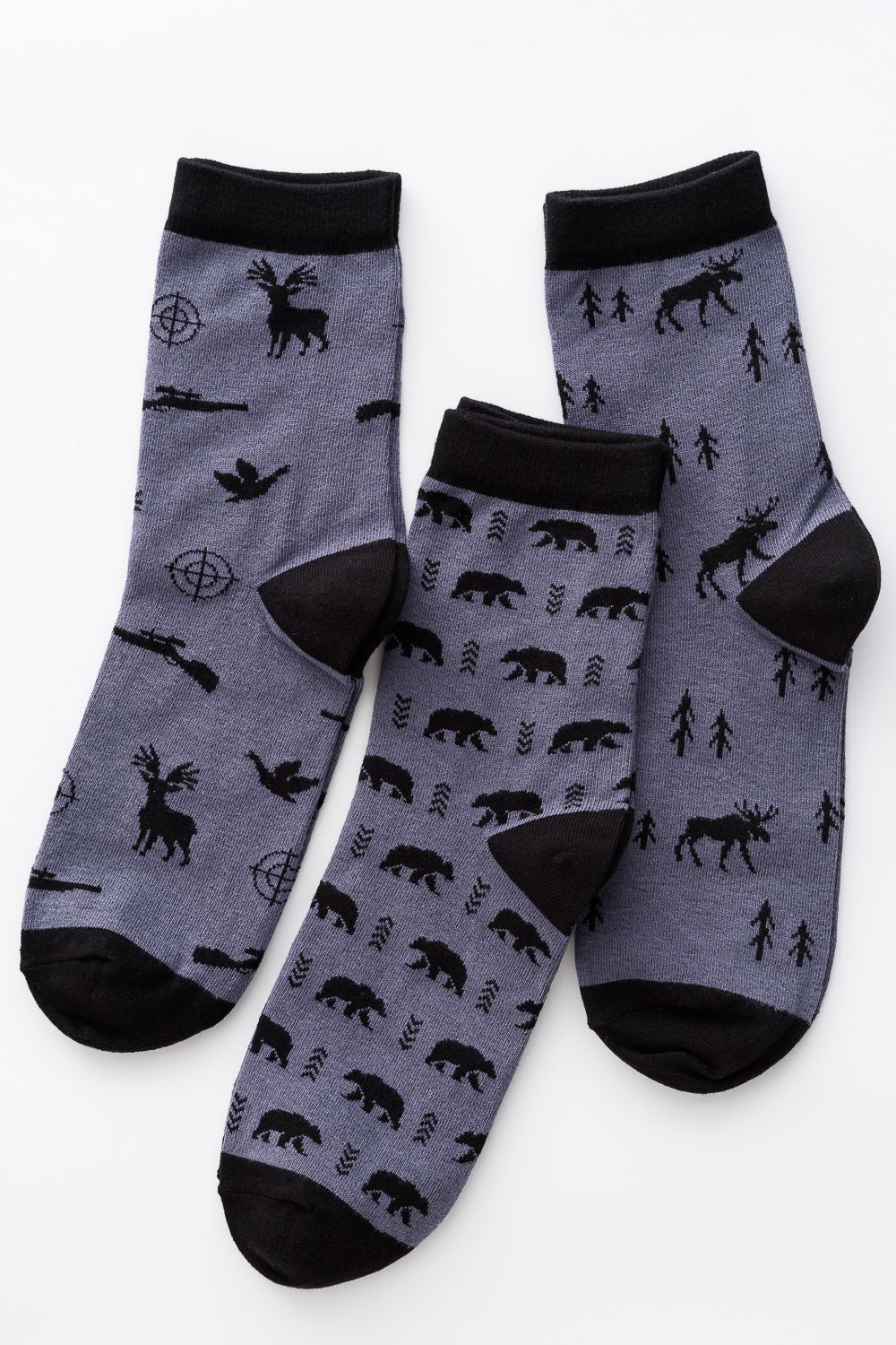 Комплект мужских носков 3 пары. На носках изображения с тематикой охоты.