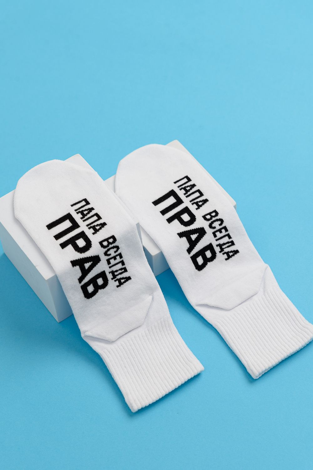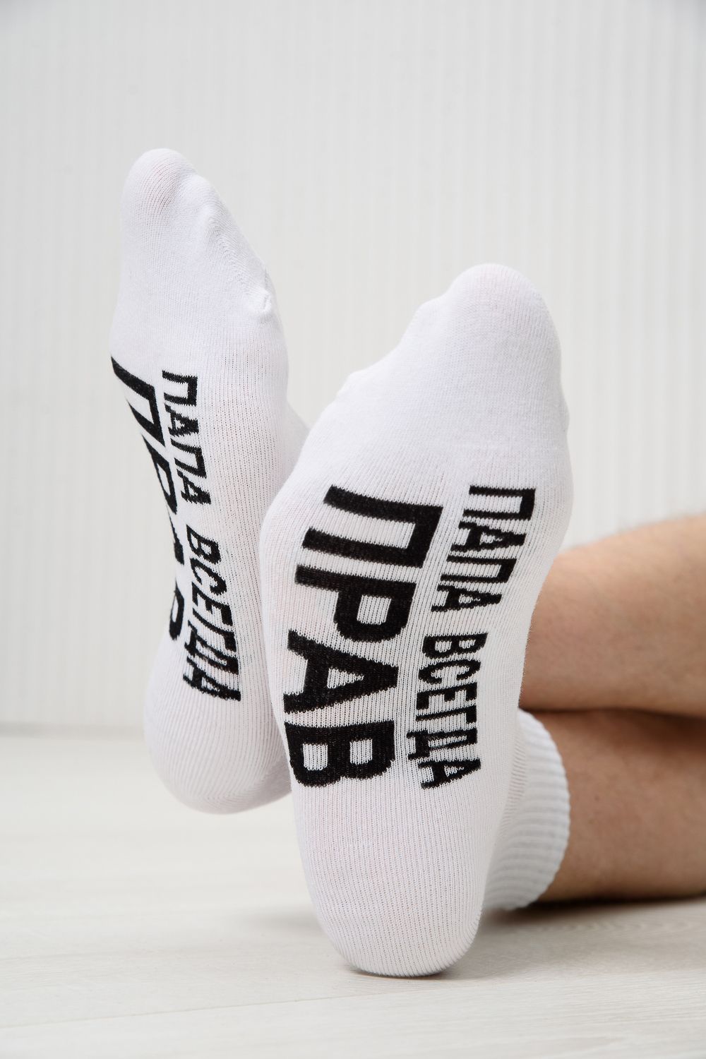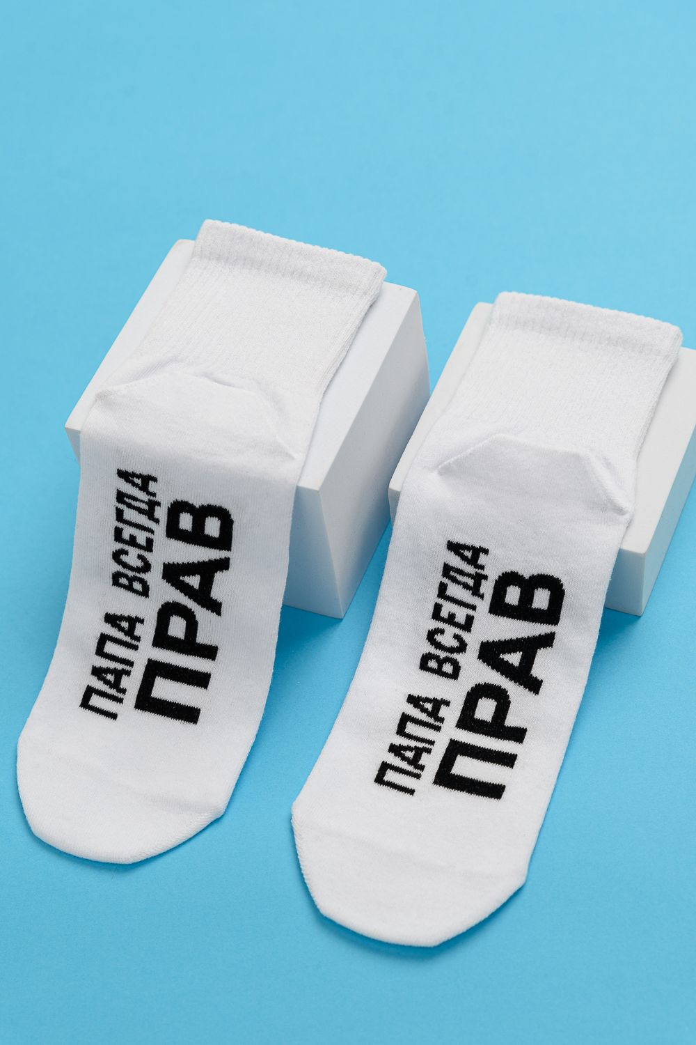Мужские носки комплект 2 пары. Широкая резинка по всей верхней части носка. Надпись на стопе "Папа всегда прав"
