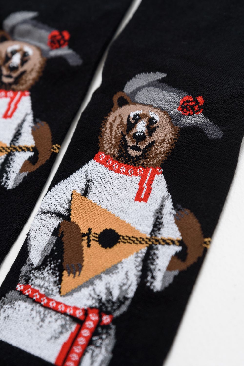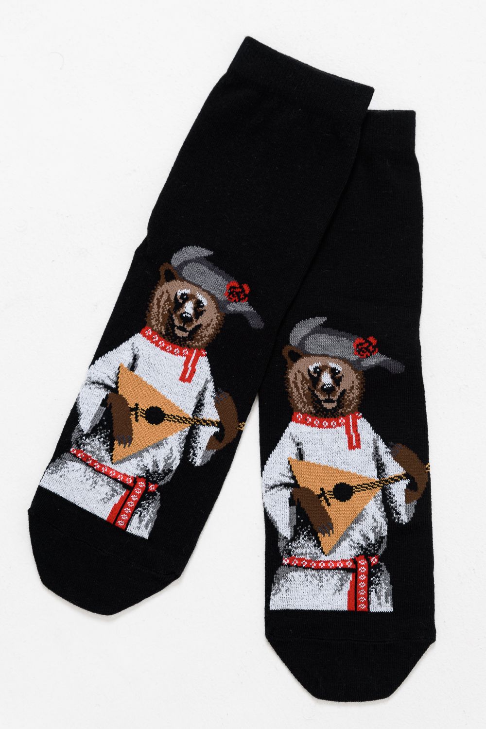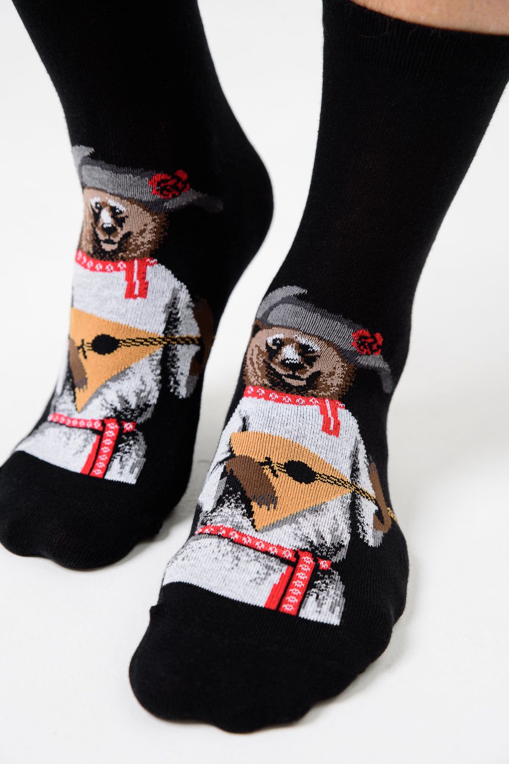 Стилизованные мужские носки с русскими мотивами: медведь в ушанке с балалайкой. Комплект 1 пара.