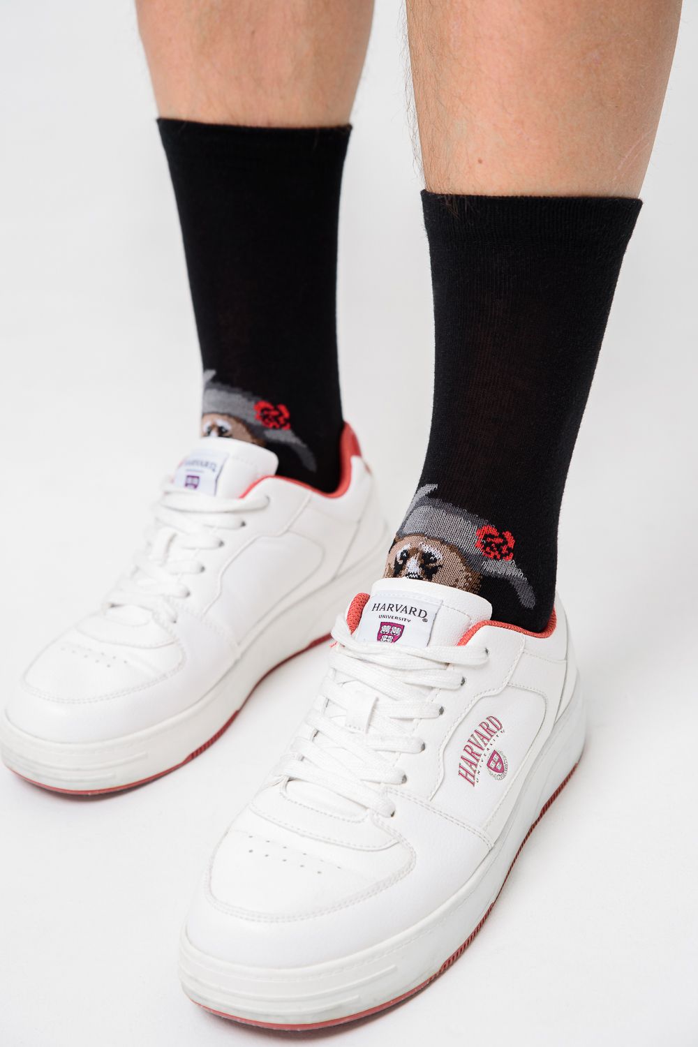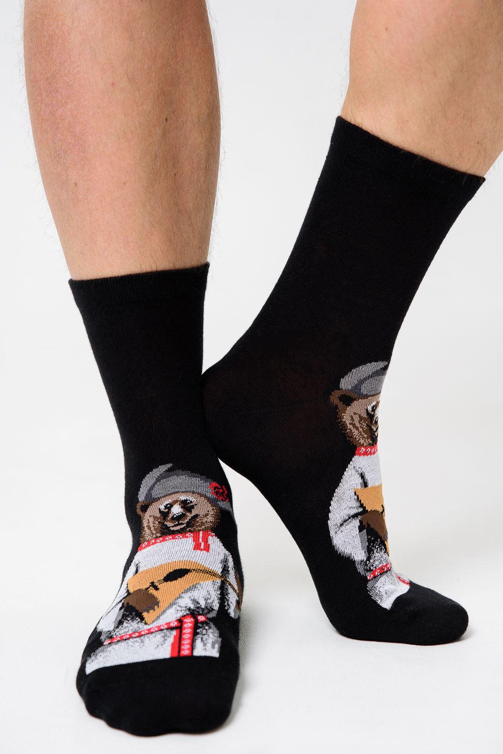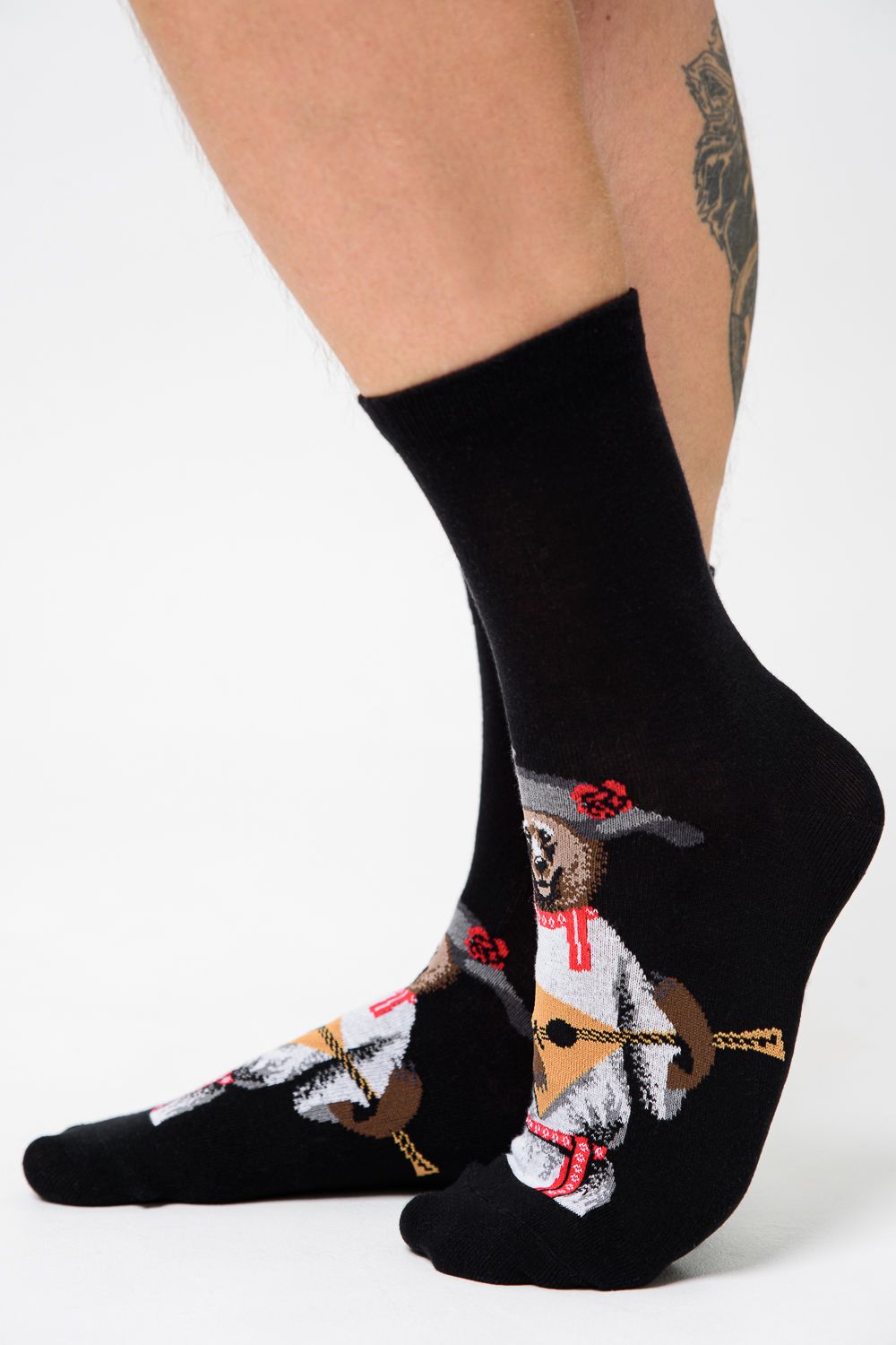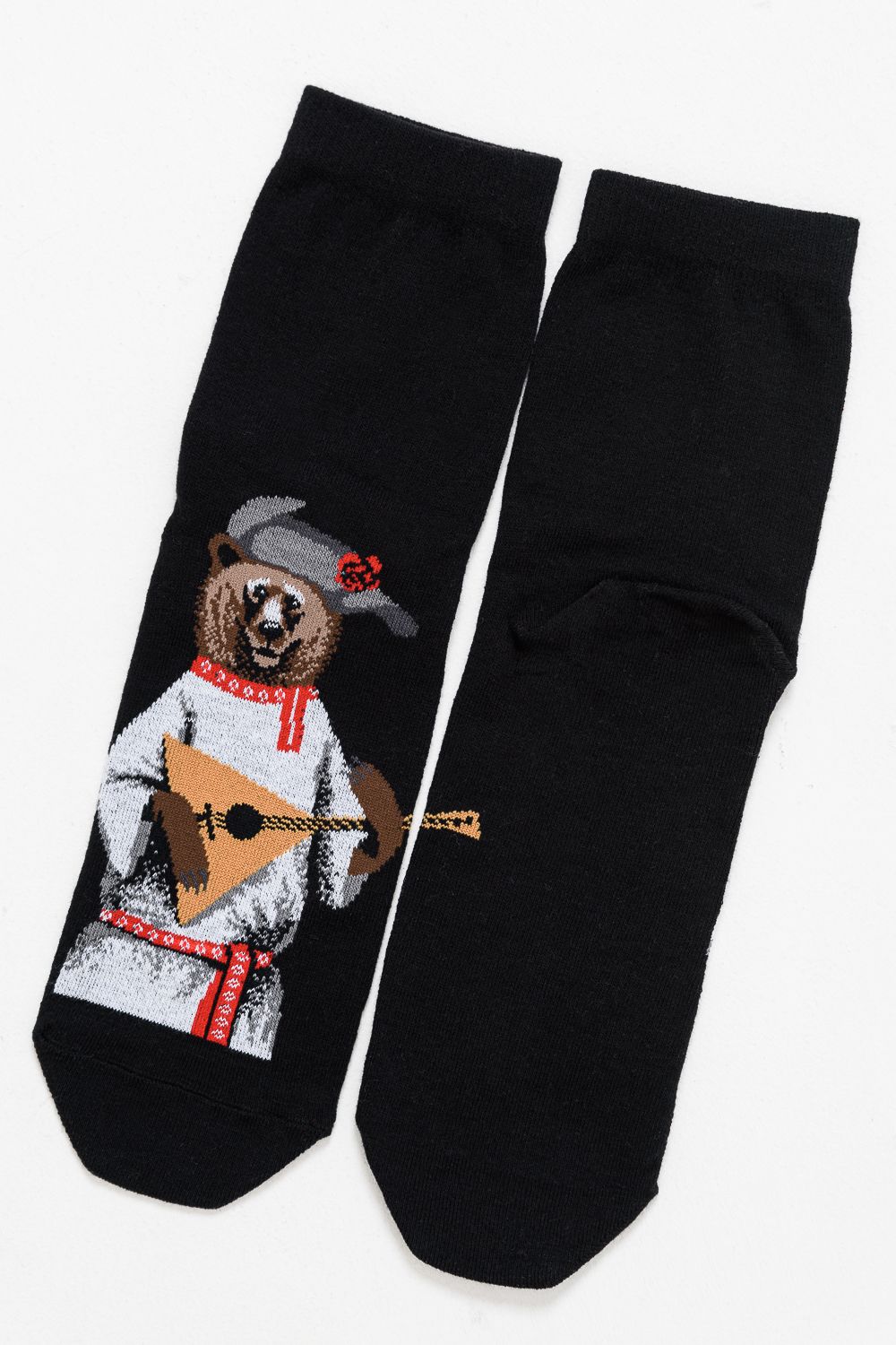 Стилизованные мужские носки с русскими мотивами: медведь в ушанке с балалайкой. Комплект 1 пара.
