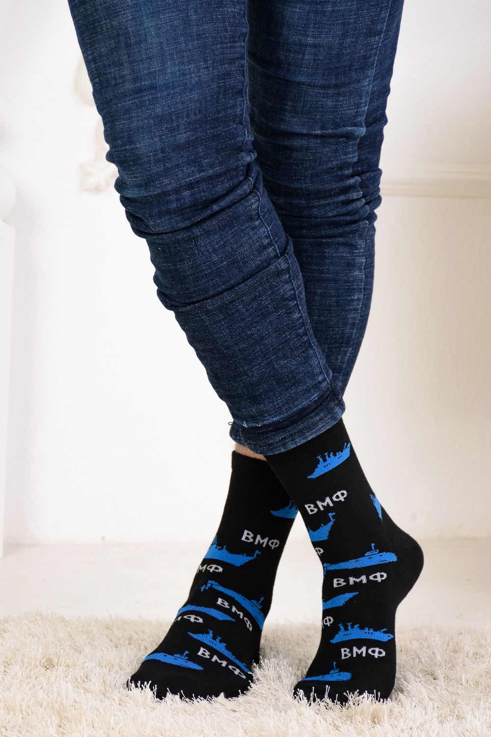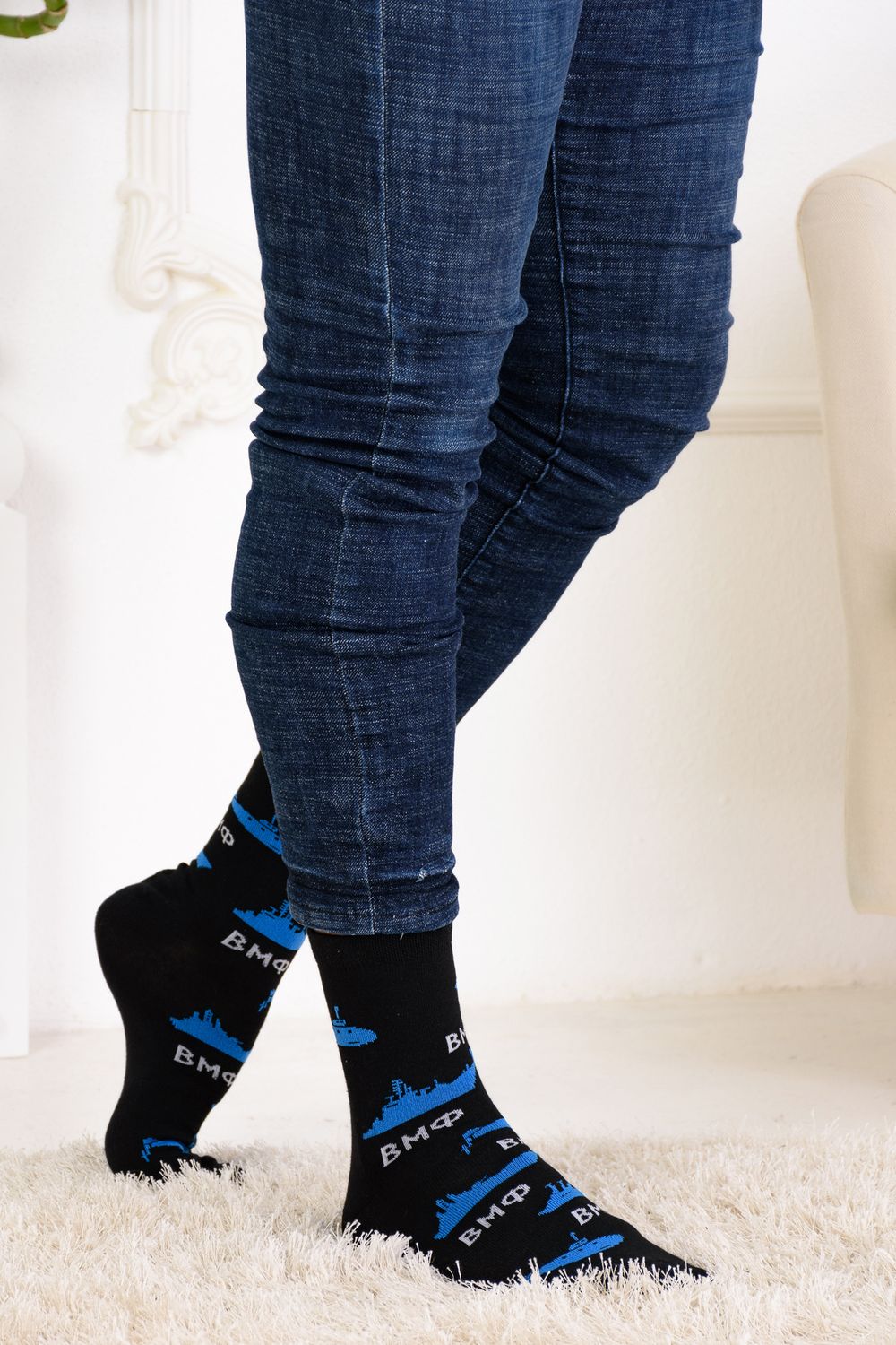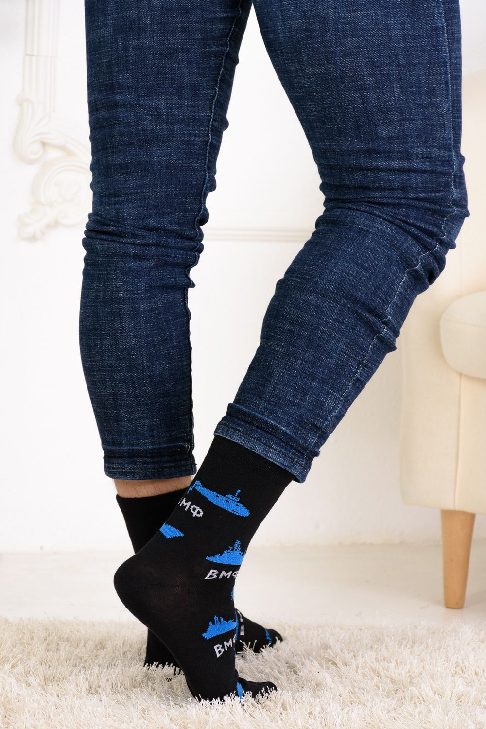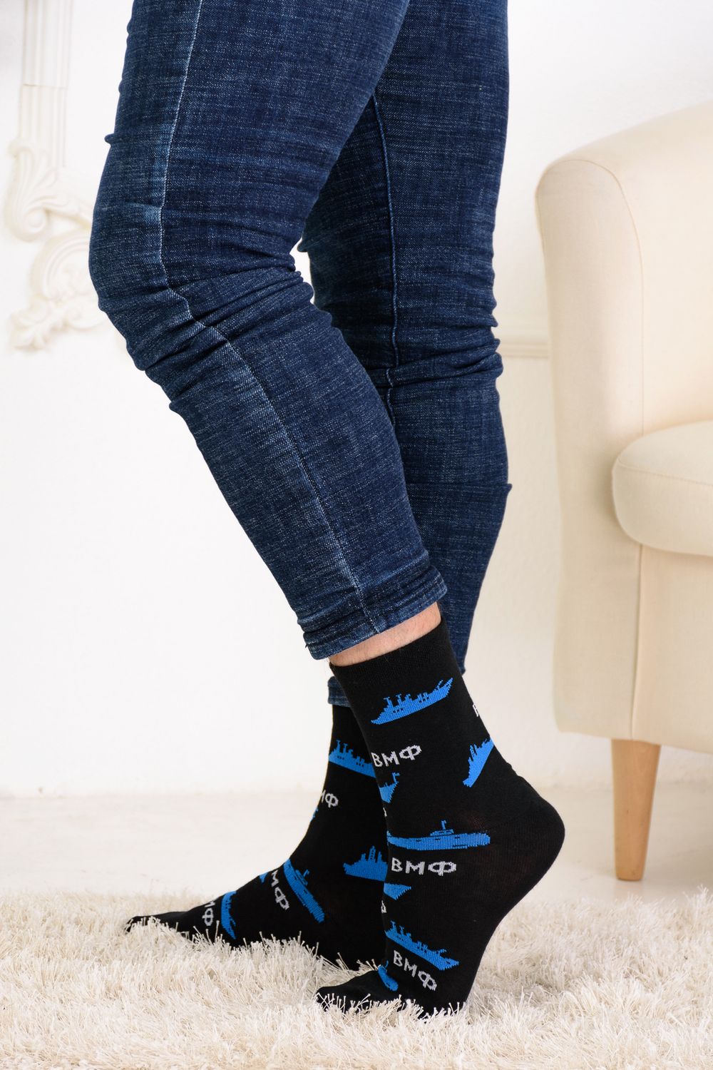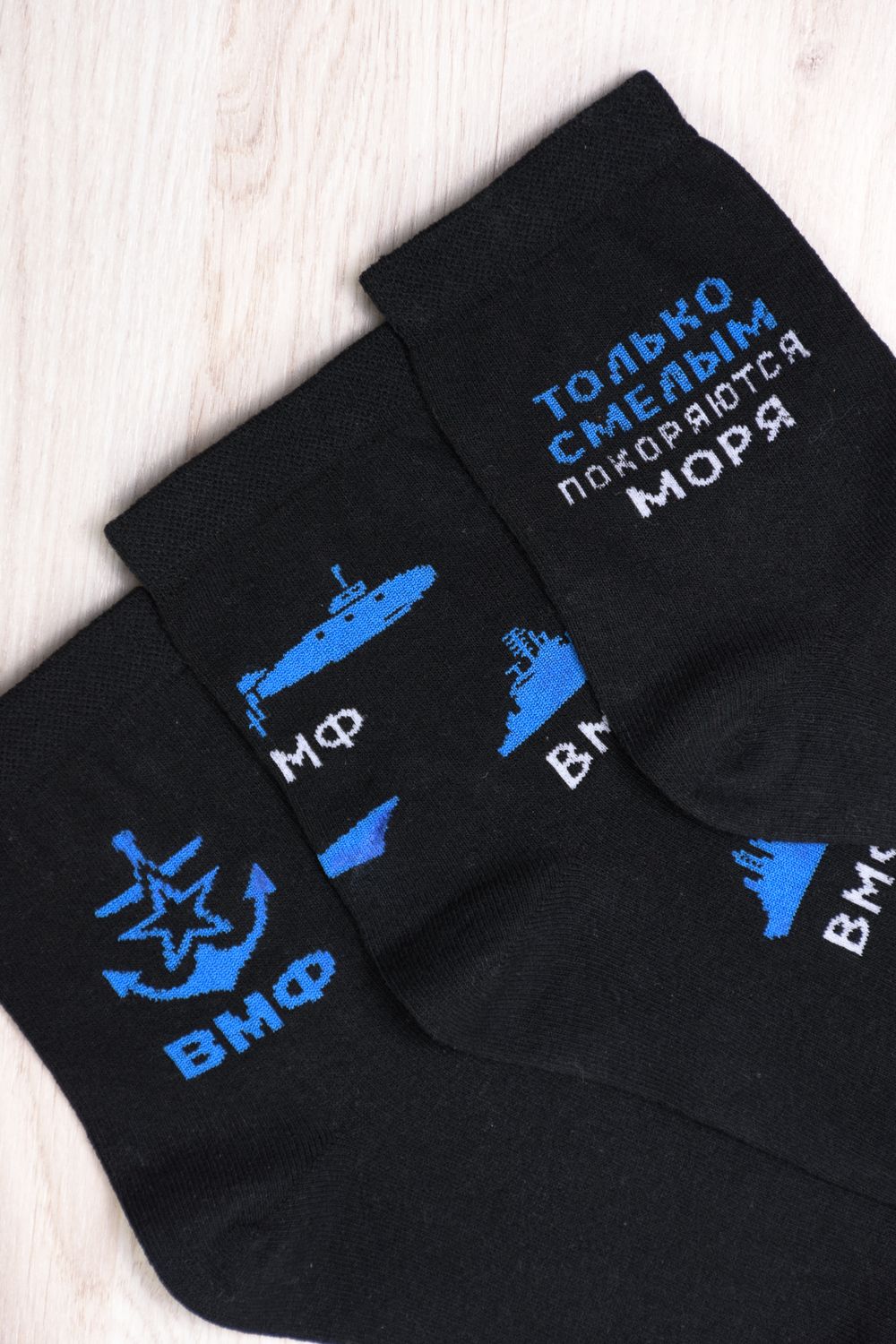Набор мужских носков с рисунками в тематике военно-морского флота. В упаковке 3 пары.