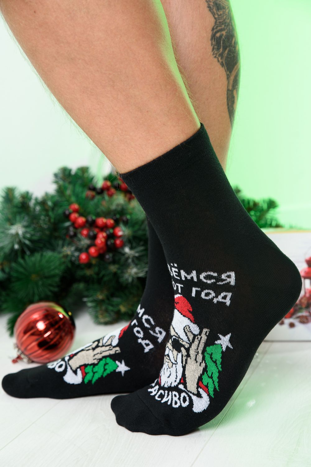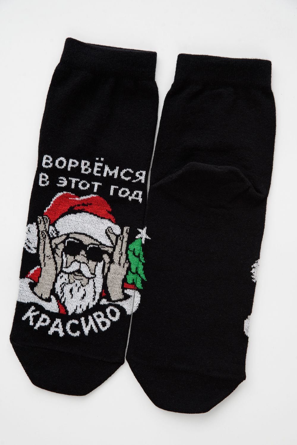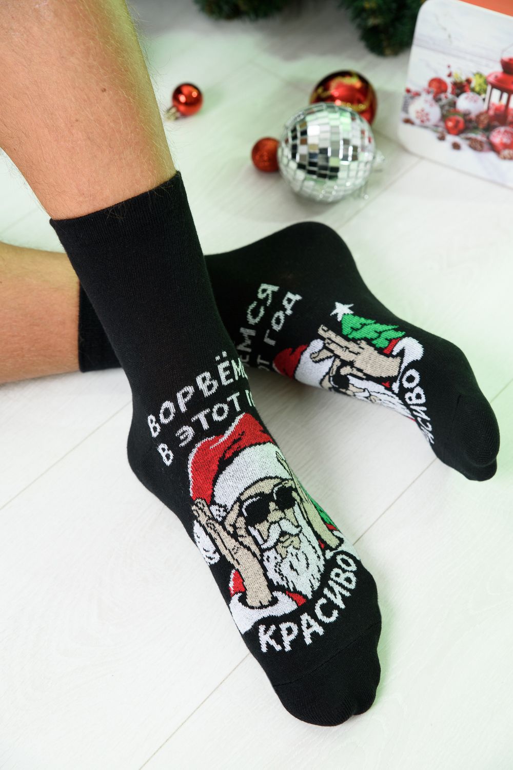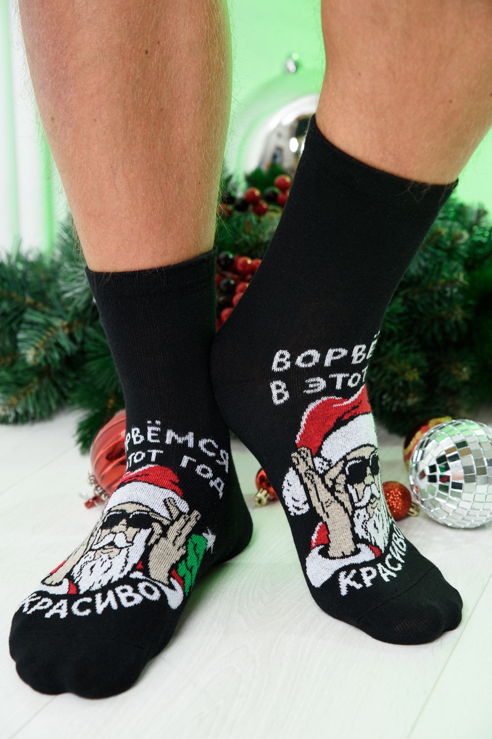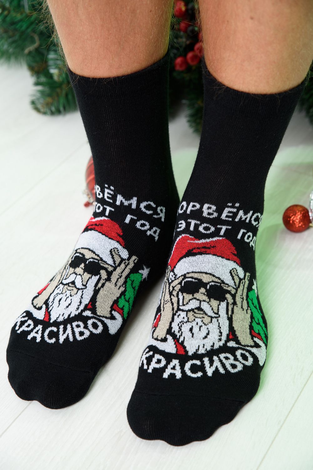 Оригинальные мужские новогодние носки. В комплекте 1 пара. На основной части носка изображение Санта Клауса и надпись "Ворвемся в этот год красимо".