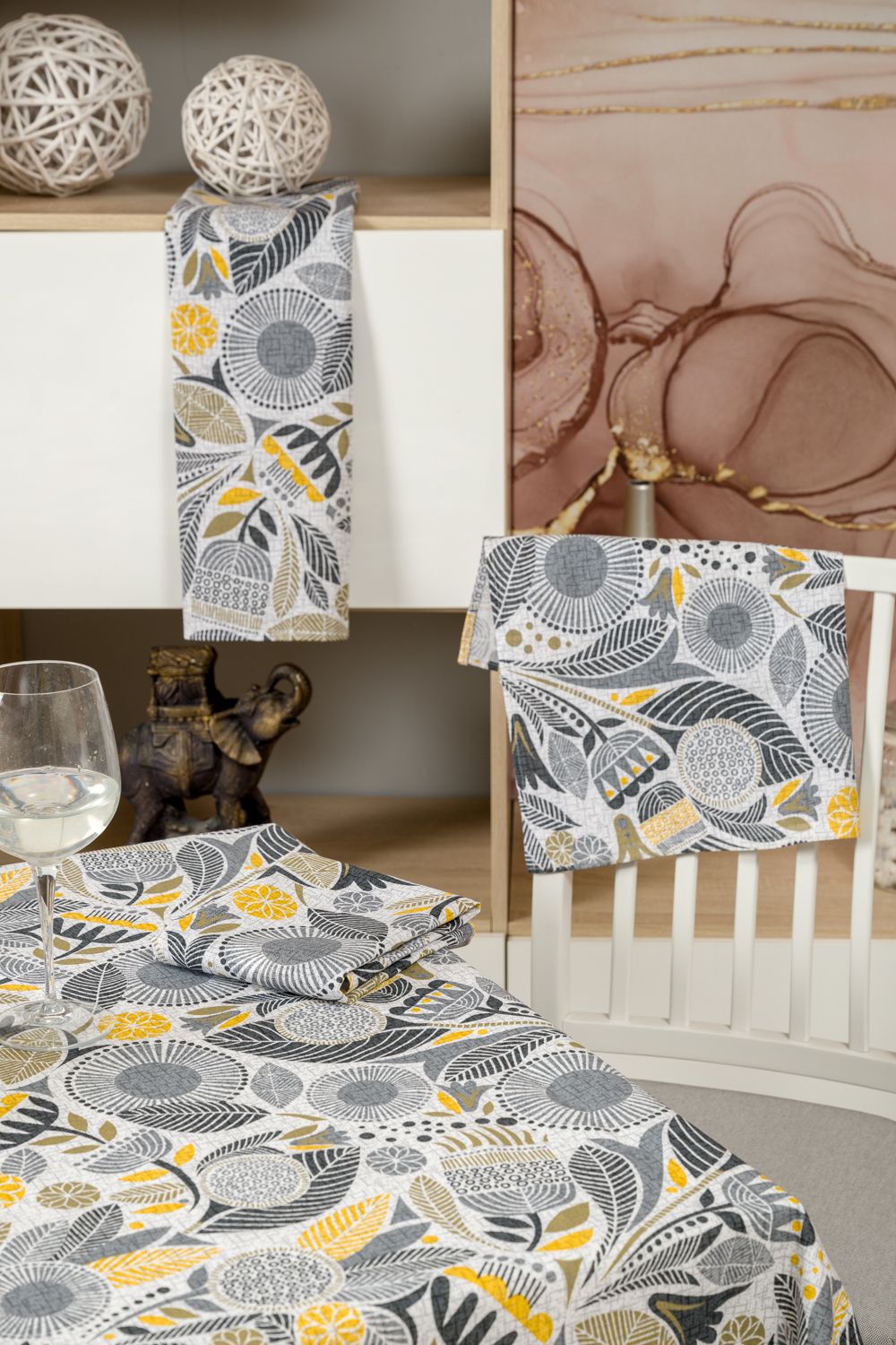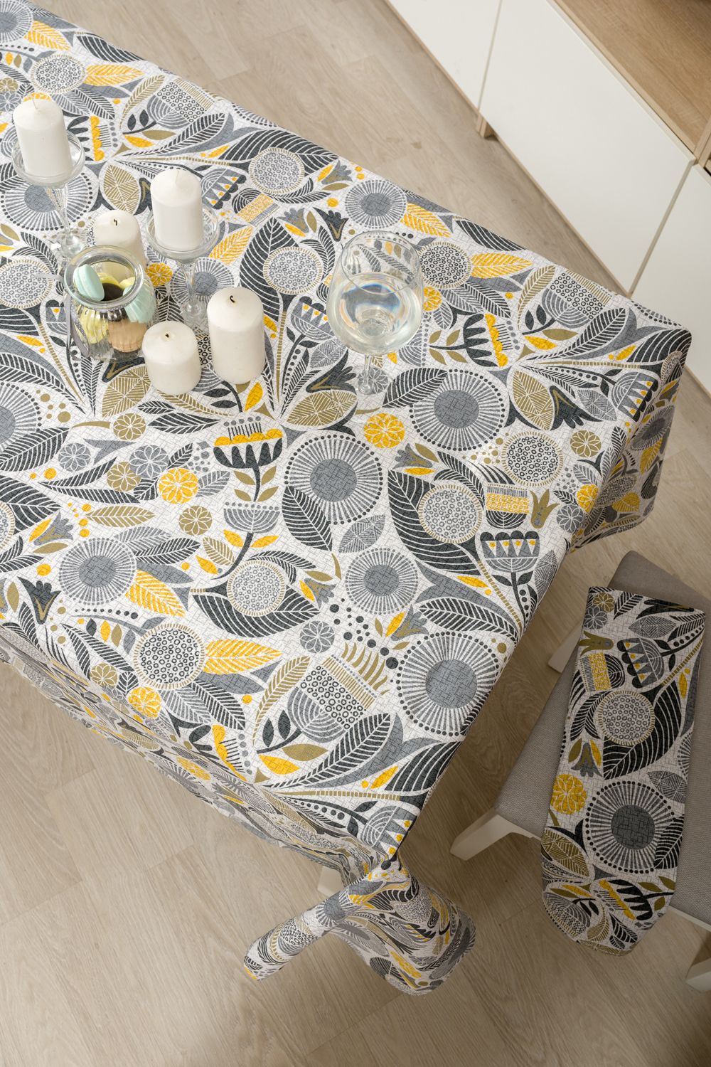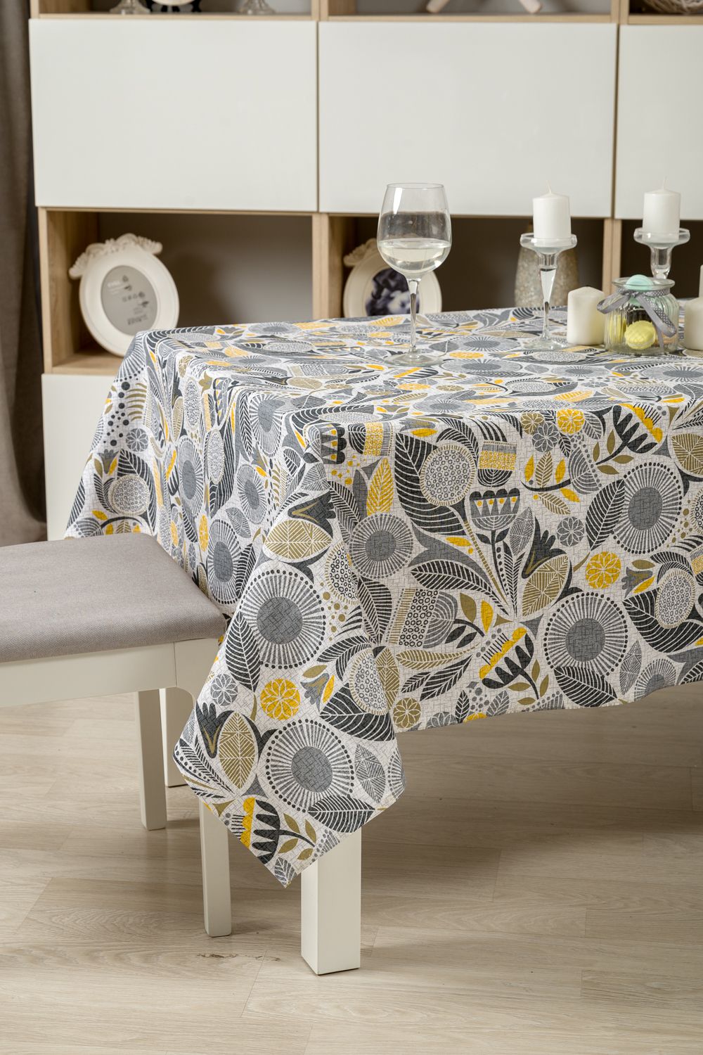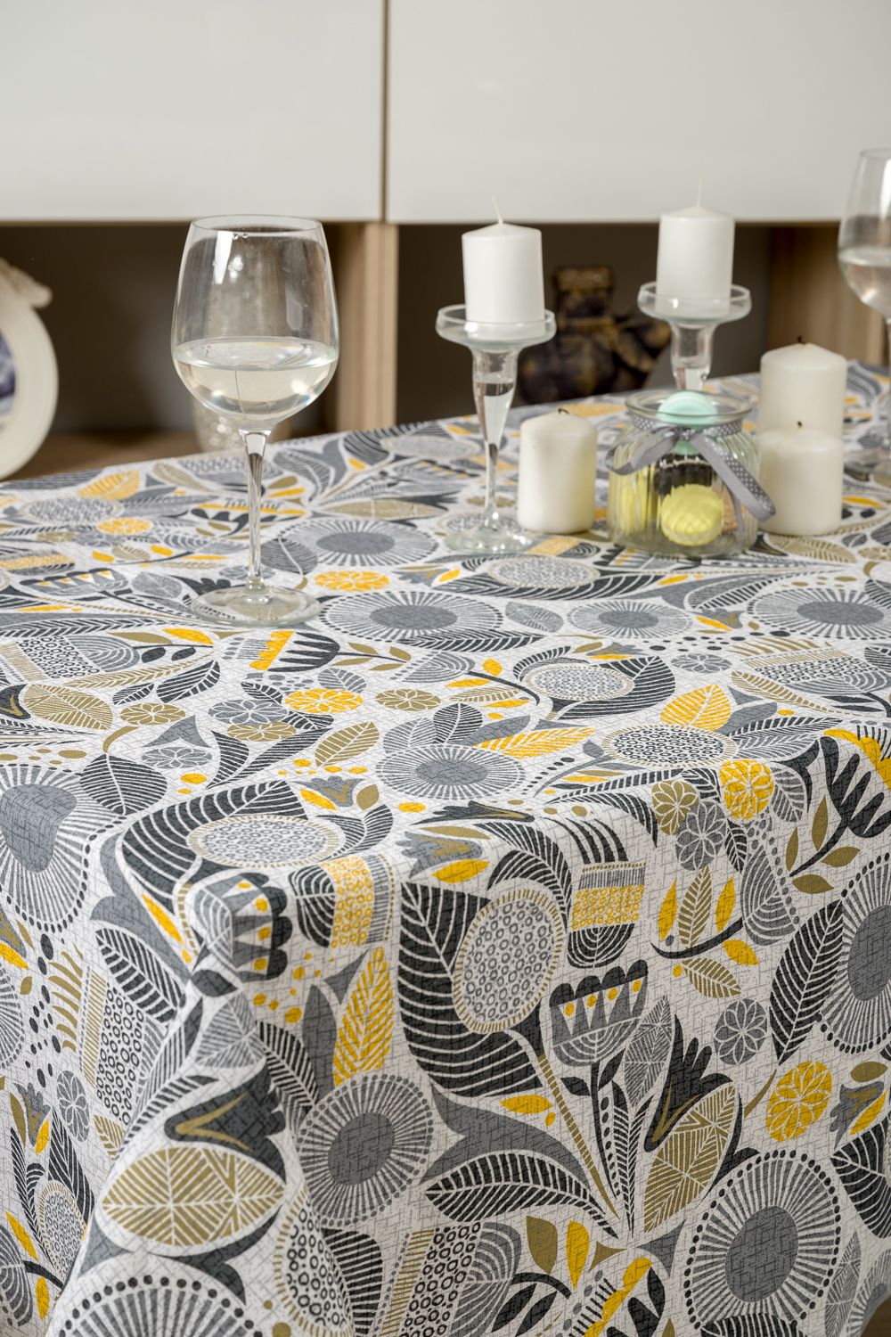 Стильная скатерть Талавера, выполненная преимущественно в серых и желтых тонах, изготовлена из высококачественной хлопковой ткани рогожка. Плотность ткани 170грамм/м2 обеспечивает изделиям высокую износостойкость и долгий срок службы. Рисунок на скатерти выполнен исключительно стойкими натуральными красителями, благодаря чему скатерть гипоаллергенна и сохраняет цвет даже после многочисленных стирок.