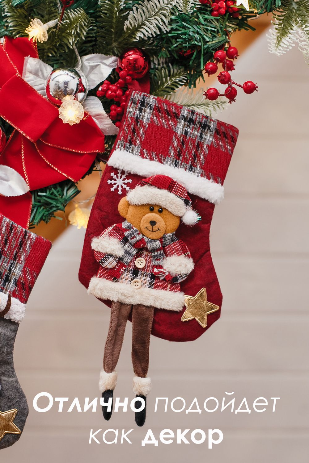 Это отличный выбор для семейной упаковки, корпоративных наборов и тематических подарков. Носок выглядит как самостоятельный подарок. Сапожек новогодний — не просто упаковка: он сам по себе становится частью подарка и может использоваться снова и снова.