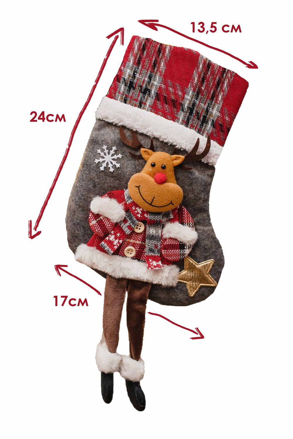 Главная фишка модели — висячие ножки. Ножки добавляют динамики при подвешивании и создают игривый акцент на камине, поручне или ёлке. Верхний край снабжён петлёй для подвеса.