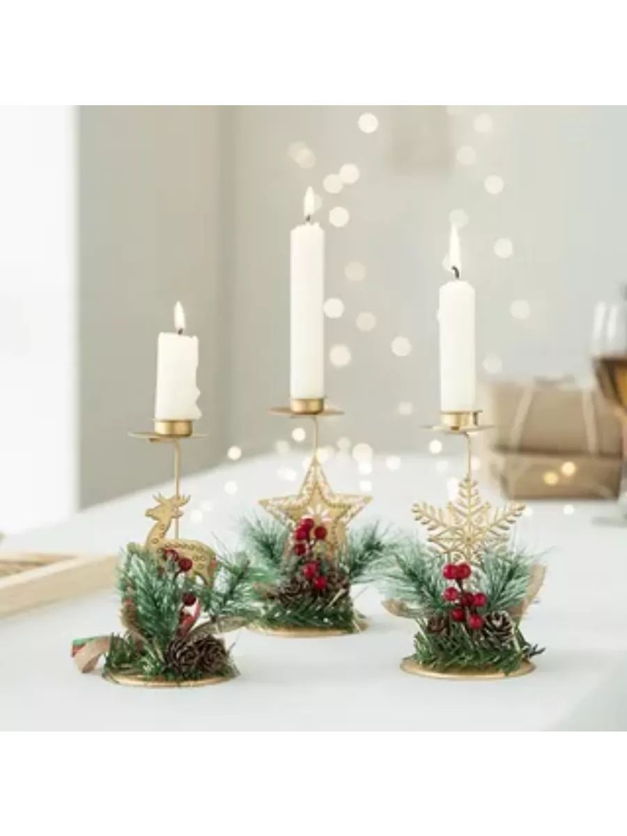 Впереди новый год и рождество, поэтому мы вам предлагаем декоративные подсвечники с оригинальным декором (звезда, елка, олень. Декор выбирается рандомно). Этот оригинальный подсвечник создаст атмосферу уюта и праздника. Металлический подсвечник выполнен в золотистых тонах, что придает ему особую изысканность, это настоящая находка для ценителей роскоши. По размеру новогодний подсвечник не большой, но он идеально подойдет для создания аккуратного акцента в интерьере, на комоде или столике. Наша подставка под 1 свечу безопасна и устойчива. Она подходит под маленькие и высокие свечи диаметром 2 см. Подставка на ножке под длинную тонкую свечу можно использовать не только в качестве освещения, но и для создания романтического настроения. Такой предмет декора из тонкого металла должен быть в каждой семье для создания новогоднего настроения.