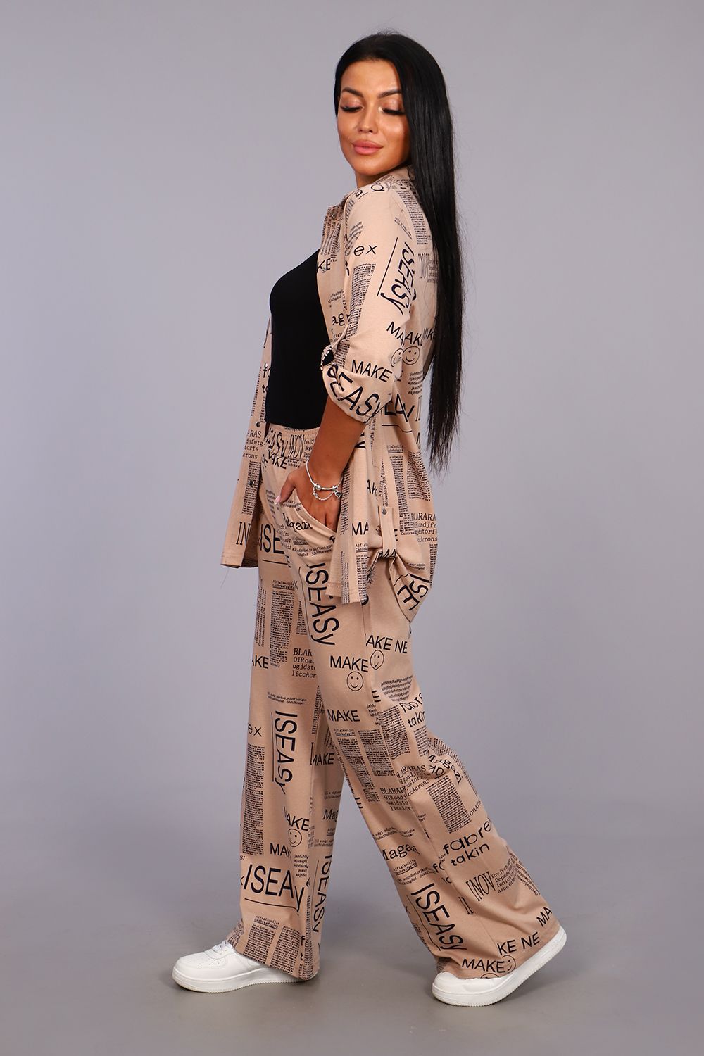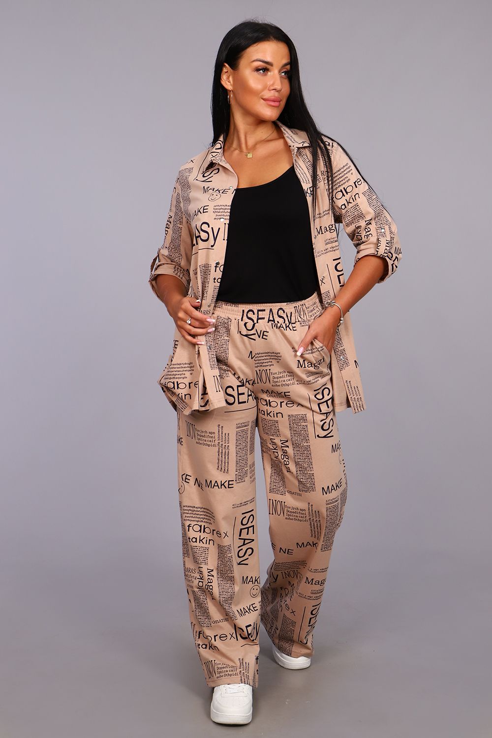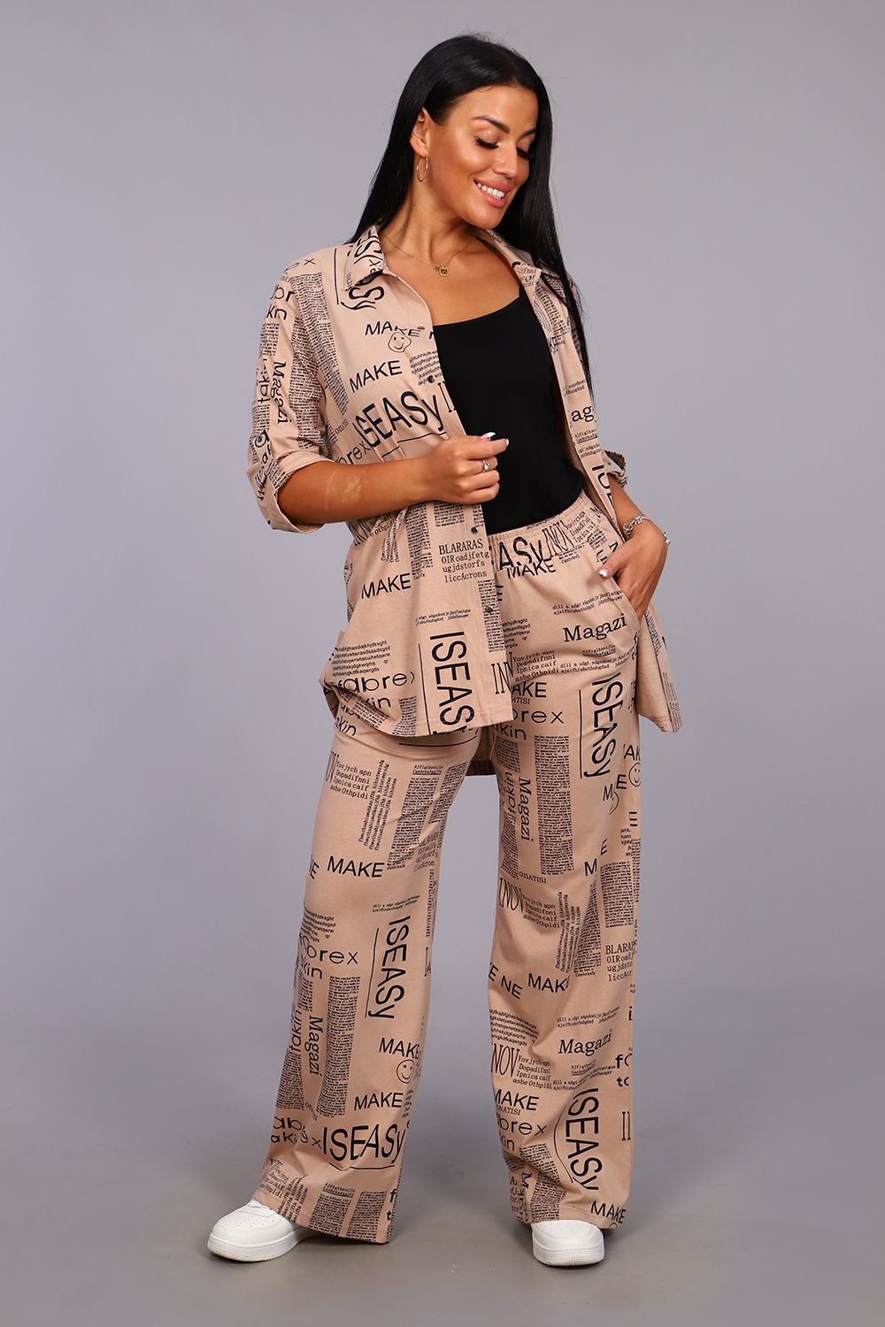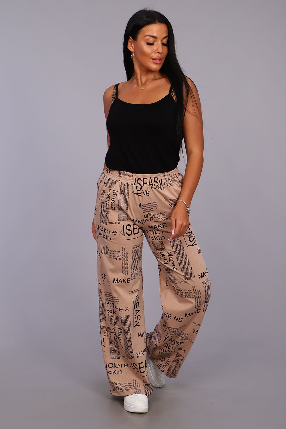 Женские модные брюки - палаццо выполнены из 100% хлопчатобумажного полотна двойного крашения. Ткань в результате такого окрашивания получает более высокие прочностные характеристики, не меняя текстильных качеств. Высокая посадка, вместительные боковые карманы и качественно обработанный на специальной машине пояс, всё это делает модель более комфортной. Брюки такого плана это идеальный вариант, чтобы скрыть все недостатки и подчеркнуть женственность фигуры. А еще для создания целостного образа Вы можете приобрести к ним тунику рубашечного плана № 36544.