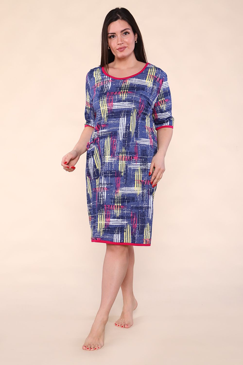 Туника женская свободного силуэта с удлиненным рукавом, полочка оформлена декоративным карманом на сборке, горловина, рукава и низ изделия обработаны под бейку. Рост модели на фото 165 см, размер 48.