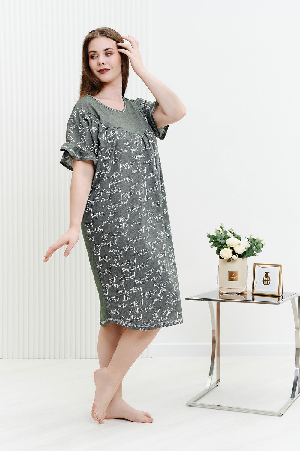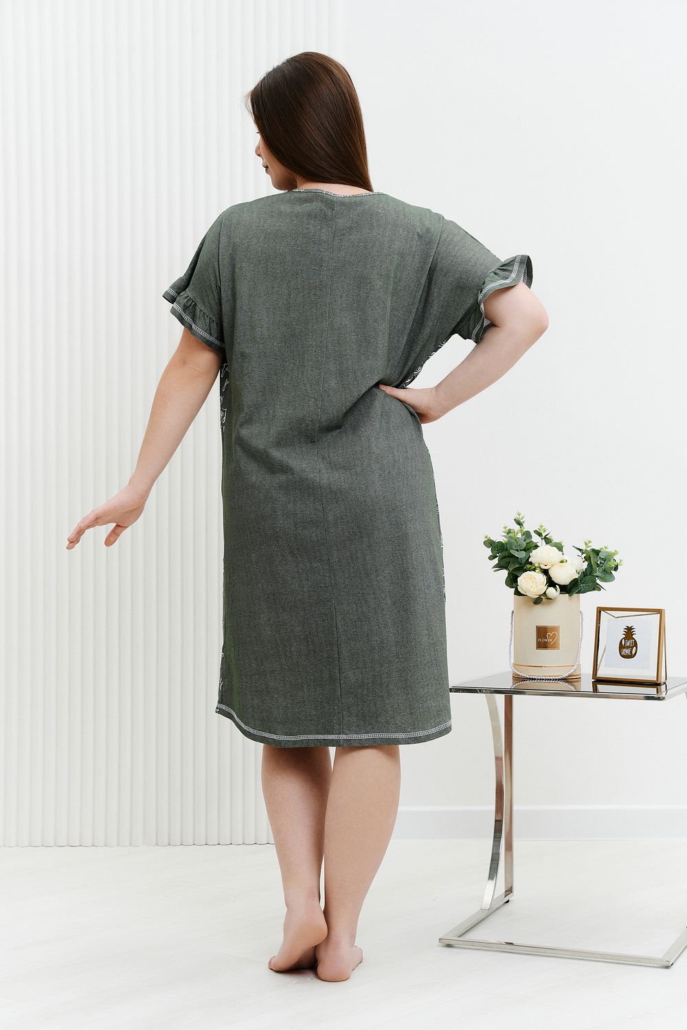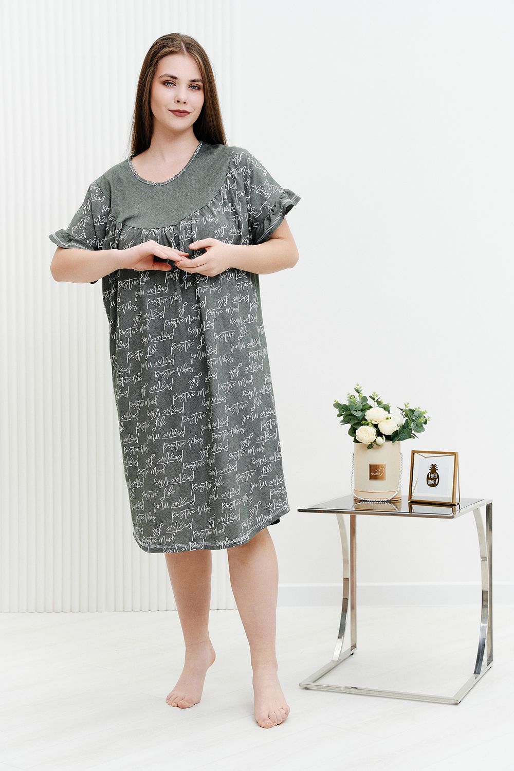 Сорочка женская, прямого силуэта, рукав короткий цельнокроенный с рюшей, горловина округлая. На полочке кокетка. Сборка верхней части полочки по линии притачивания кокетки обеспечивает изделию достаточную свободу и комфорт.