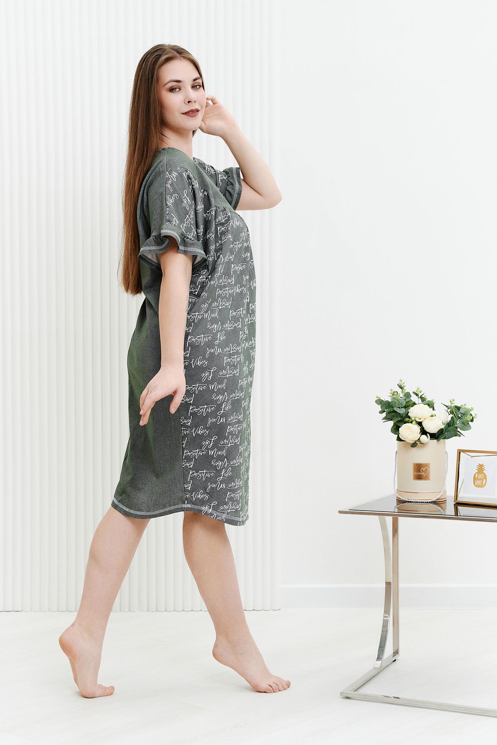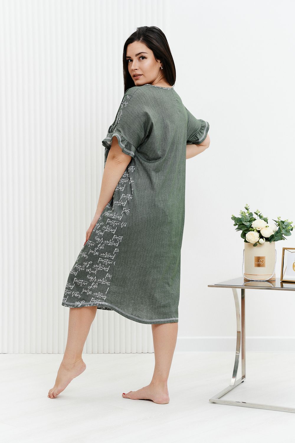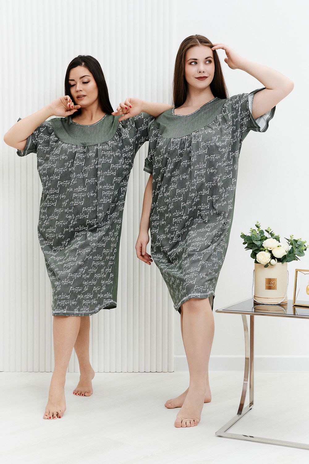 Сорочка женская, прямого силуэта, рукав короткий цельнокроенный с рюшей, горловина округлая. На полочке кокетка. Сборка верхней части полочки по линии притачивания кокетки обеспечивает изделию достаточную свободу и комфорт.