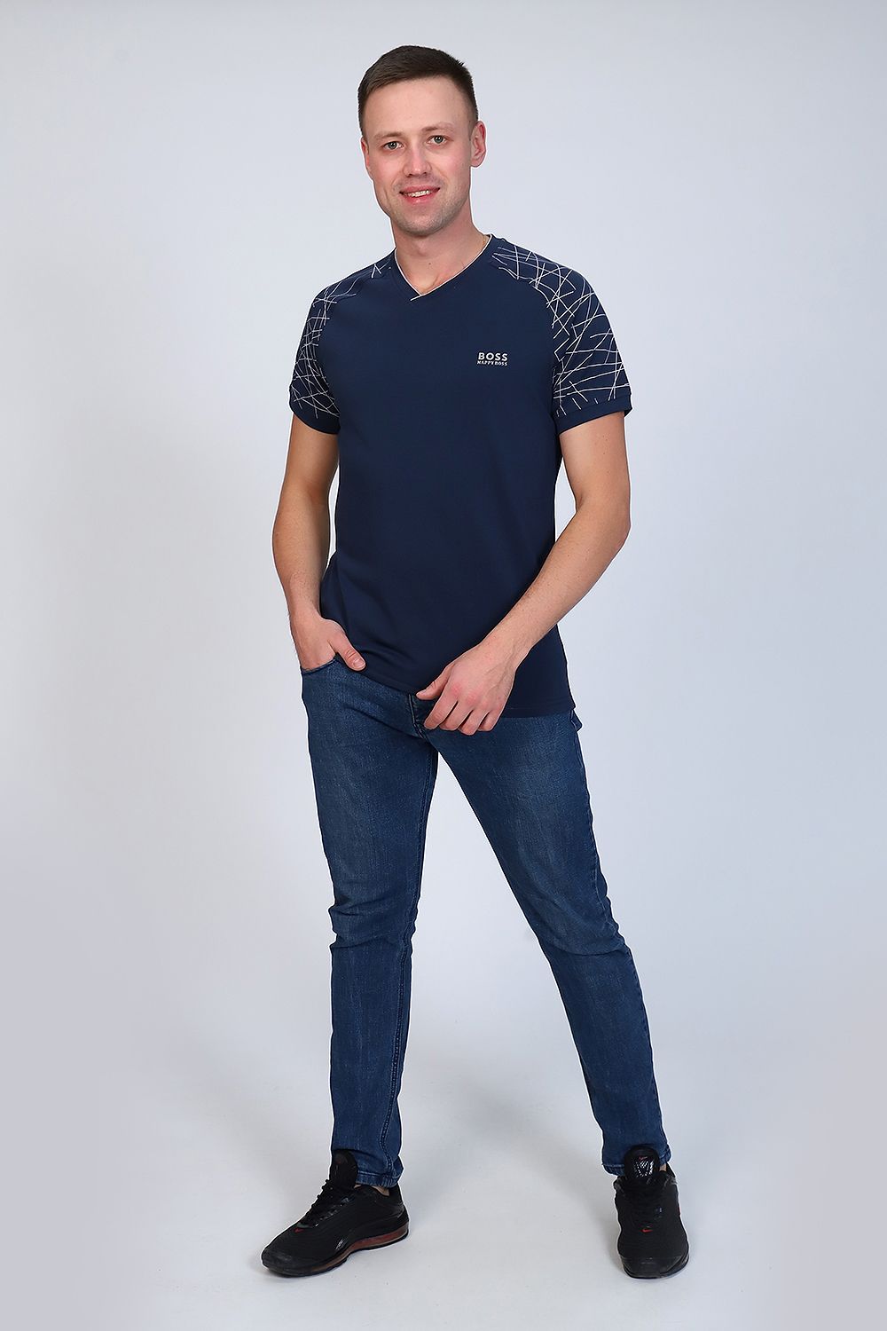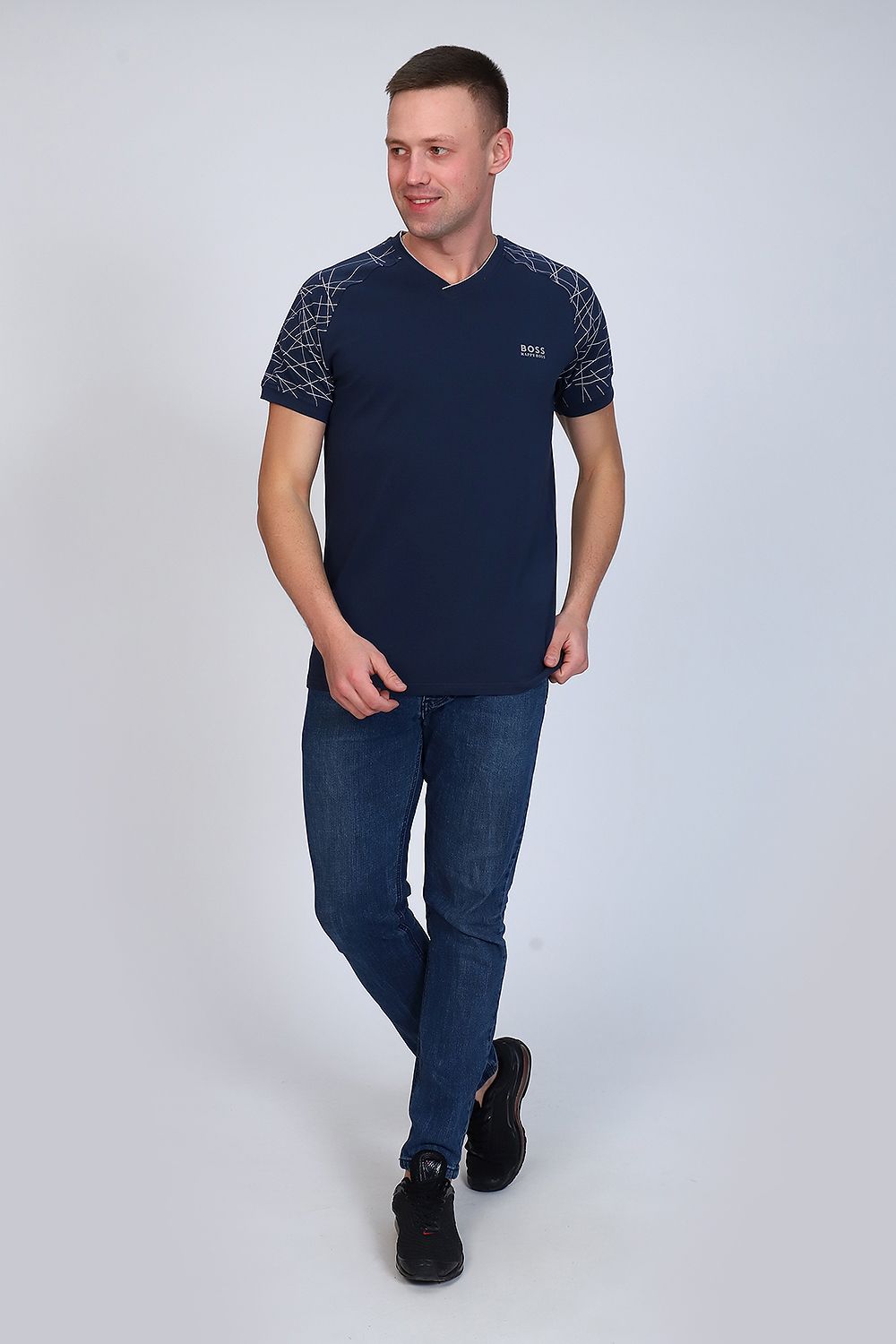 Футболка мужская хлопковая с добавлением лайкры с V-образным вырезом в пяти цветах. Слева на полочке и рукавах печать. Добавление лайкры повышает износоустойчивость изделия. Футболка незаменимая для отдыха, занятий спортом, работе на свежем воздухе и прогулках.