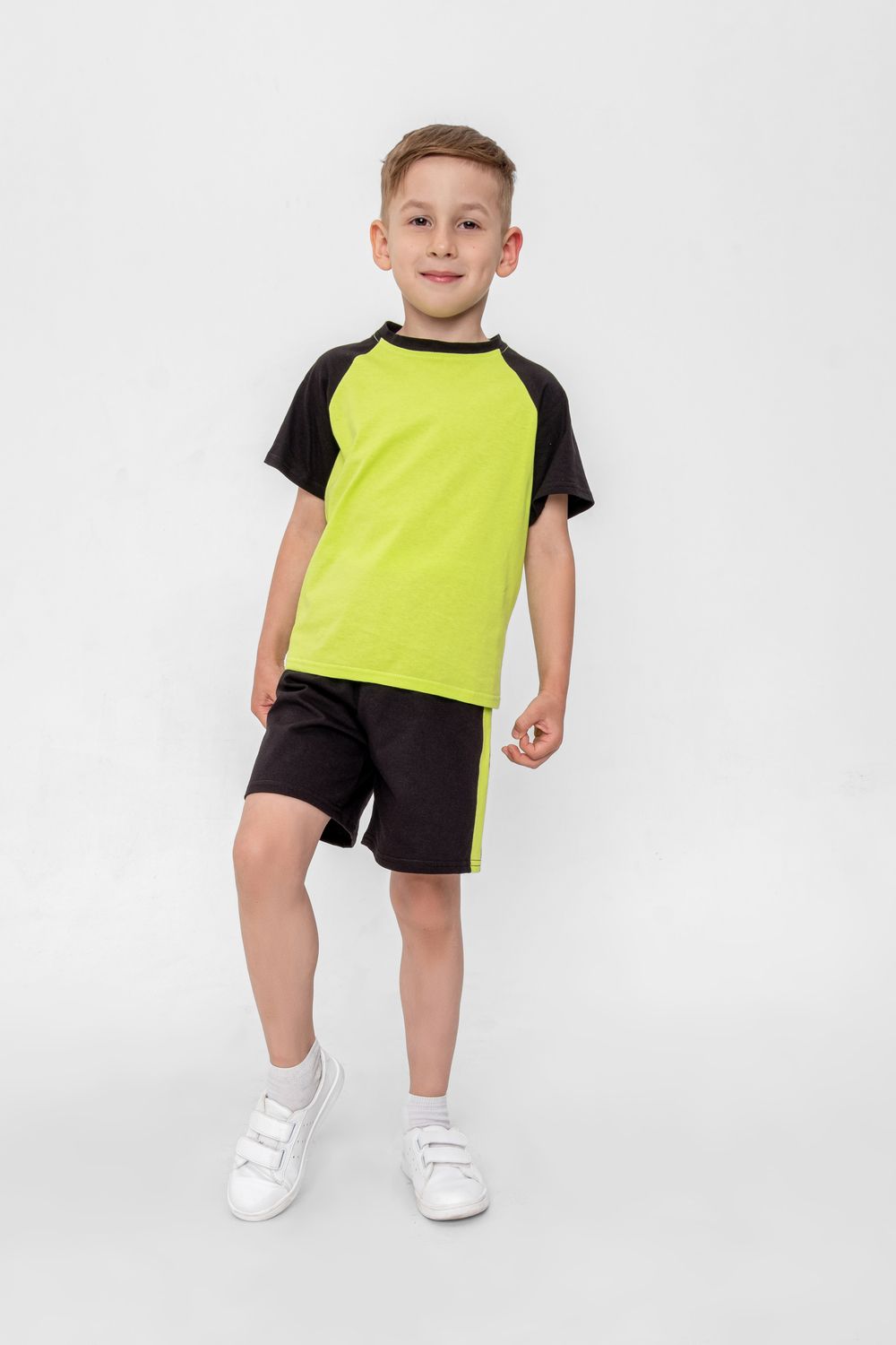 Уютный костюм для самых маленьких и немного постарше детишек. Футболка и шорты из приятного на ощупь материала кулирная гладь. Удобные не стесняющие шорты на широком поясе. Незаменим для повседневных прогулок, в детский садик или в качестве домашнего костюма. Легко стирается, не закатывается.
