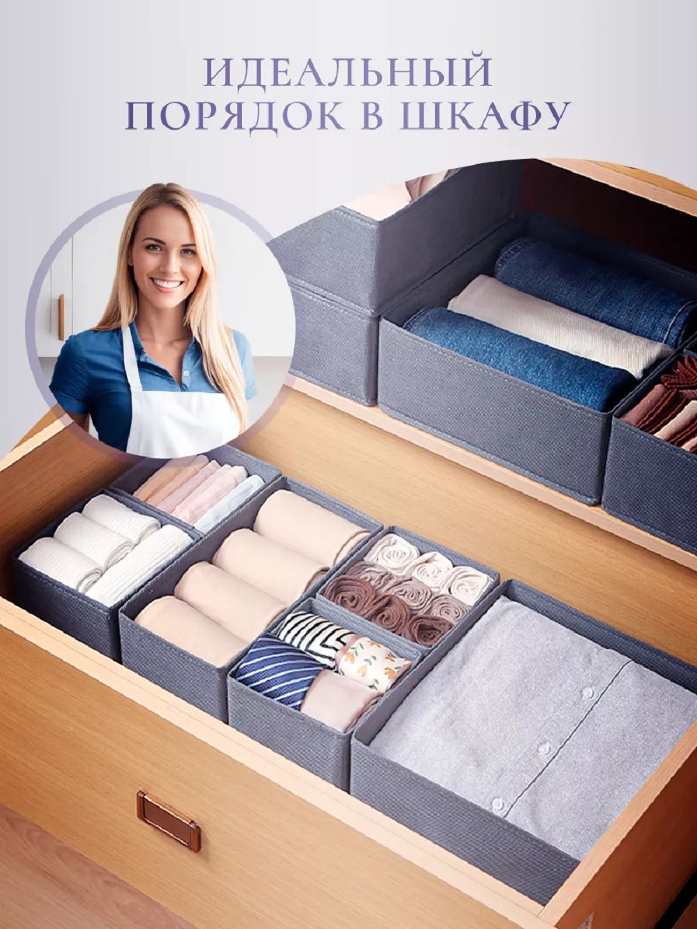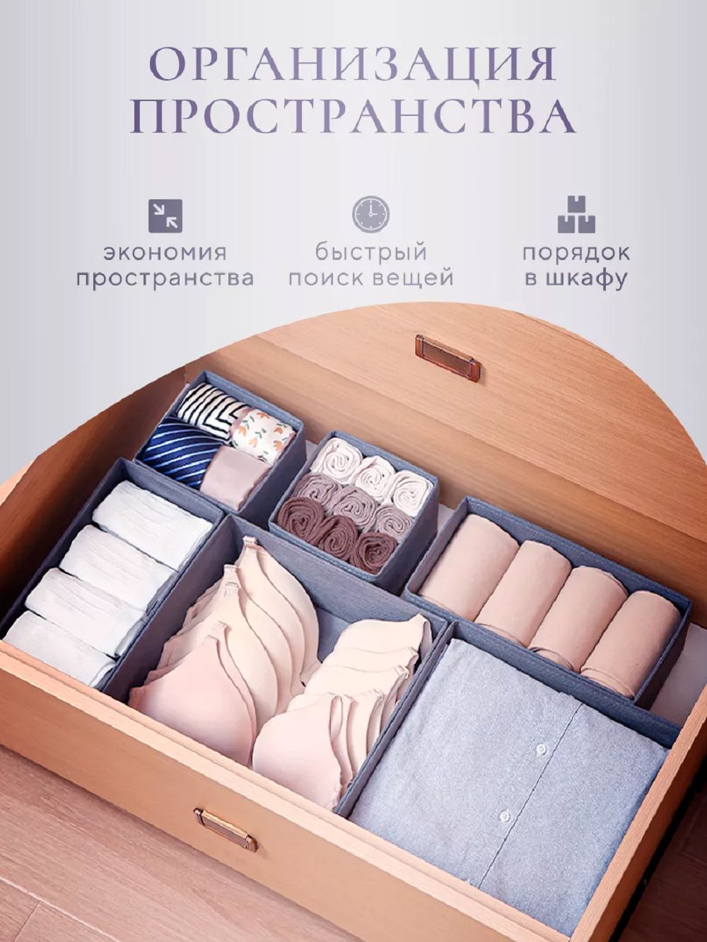 Набор, состоящий из 3 шт текстильных органайзеров для хранения белья, незаменим для организации пространства в вашем шкафу или в ящиках комода. Разные по размеру кофры удобные и компактные. С этими кейсами вы сможете легко рассортировать свои вещи и аксессуары, а также украшения и разные мелочи по отдельным секциям. Ящички идеально подойдут для хранения носков, детских вещей или мелких предметов. Мягкий и складной дизайн делает их удобными не только для использования дома, но и для путешествий. Они прекрасно помещаются в дорожной сумке при транспортировке и помогают создать порядок и домашний уют в любом месте - в квартире, на даче или в туристической поездке. Универсальные тканевые чехлы можно использовать в спальне или ванной, на полке в шкафчике в гардеробной или в прихожей. Каждый маленький и большой отсек удобен для хранения бельевых принадлежности - бюстгальтеров или лифчиков, мужских и женских трусов и ремней, предметов одежды ребенка. Вы можете использовать их для размещения аксессуаров для рукоделия, документов или зарядные устройств.