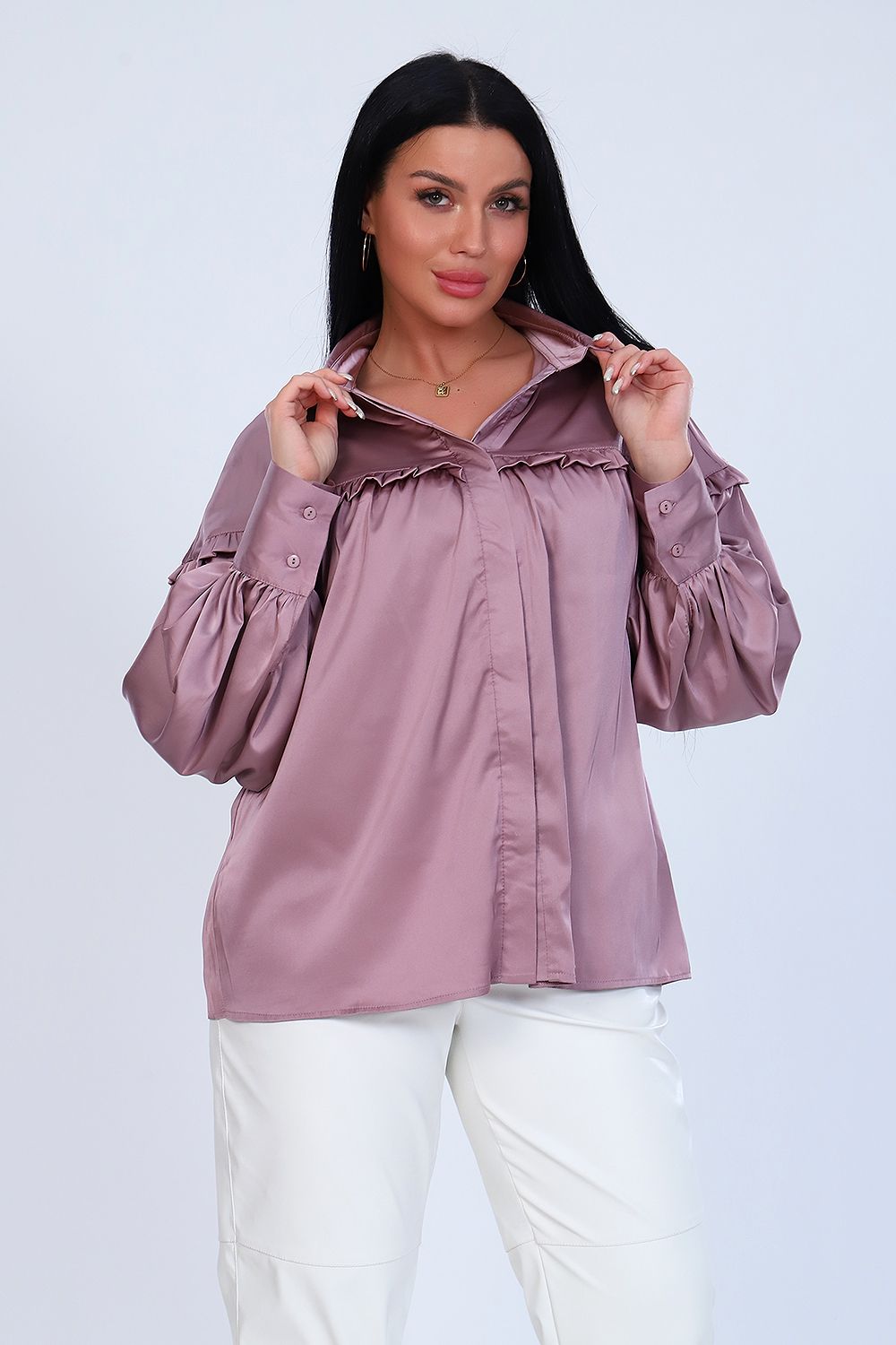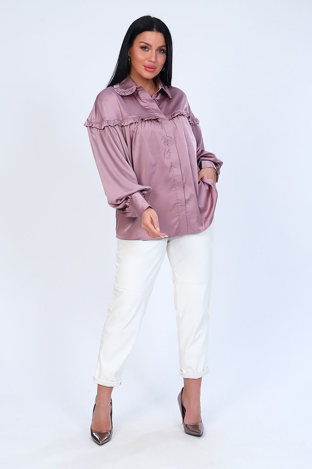 Туника женская прямого силуэта на пуговицах, длинный рукав на манжете с пуговицами, рубашечный воротник с рюшами. Кокетка до линии рукава в виде рюшей. Стильно и практично.
