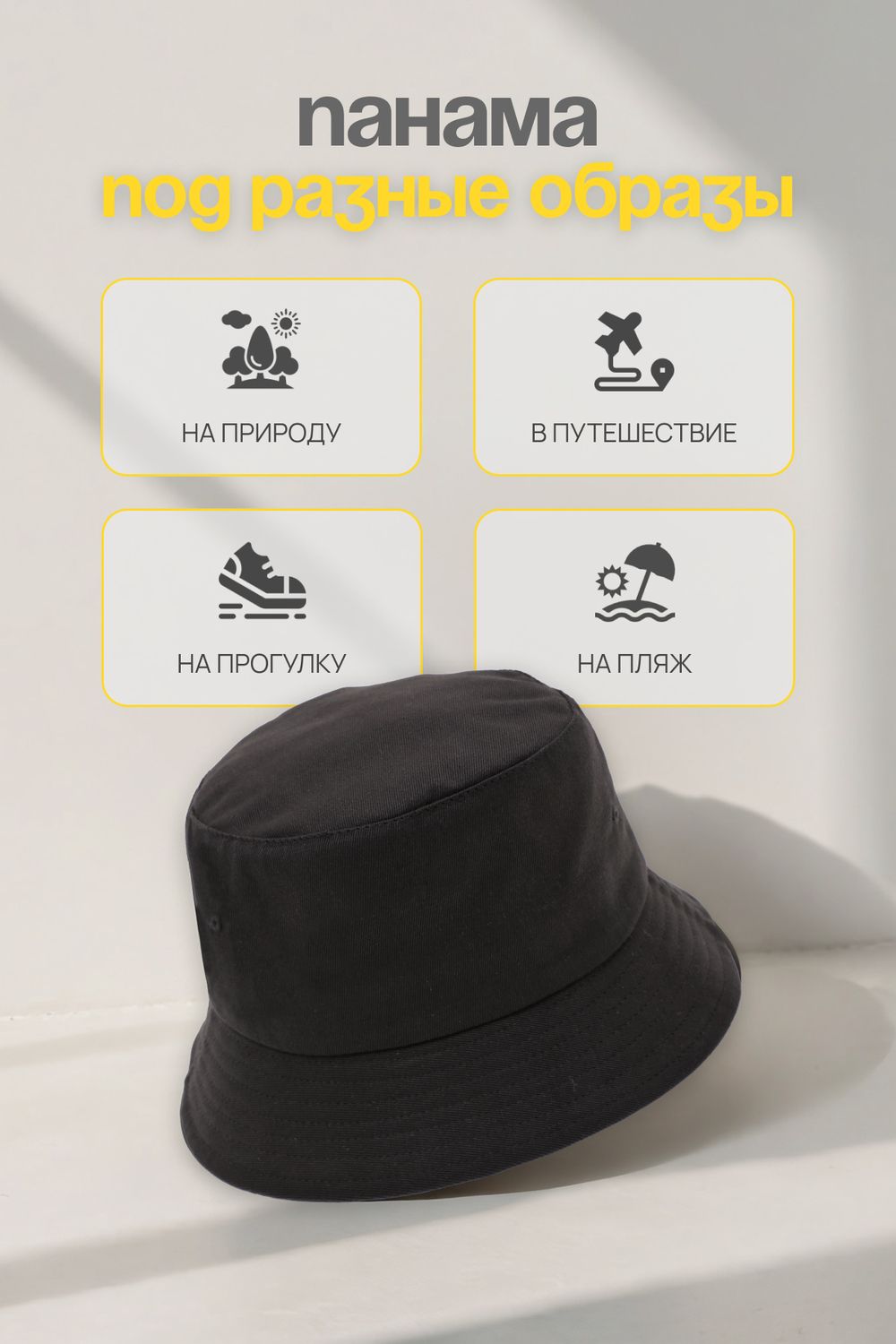 Панама отлично защищает голову от солнца или мелкого дождя, отлично сочетается с пляжной и летней одеждой.