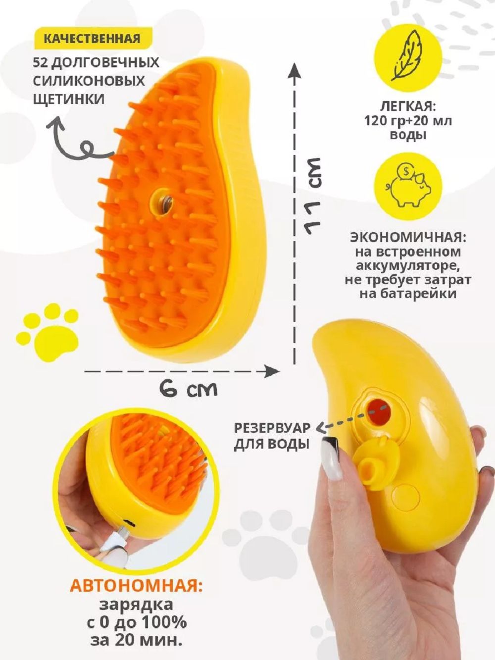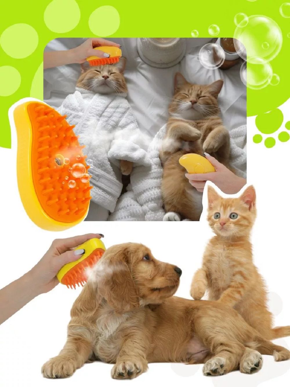 Паровая щётка для животных - средство ухода за котиками, собачками, морскими свинками, кроликами и грызунами; для домашнего груминга кошек и собак. Расчёска аксессуар расчешет любимца, оснащена кнопкой подачи холодного пара. Умное удаление старого подшёрстка и ворса силиконовыми щетинками одновременно с массажем кожи улучшит освежающий вид котёнка и щенка с детского возраста. Вычёсывание уменьшит линьку длинношерстных короткошерстных гладкошерстных. Справится с шерстью мелких крупных средних пород. Компактный размер массажной чесалки с водой и маленькой кнопкой распыления позволит взять её с собой в поездку автомобиль и сумочку. Хвостики скажут вам - экспресс электрический spa furminator antistatic с эффектом функции чудо фурминатора без триммера является терморасческой с антистатическим распылителем, всё чтобы двусторонне вычесывать дешедером с жидким дымом и ионизацией пара.