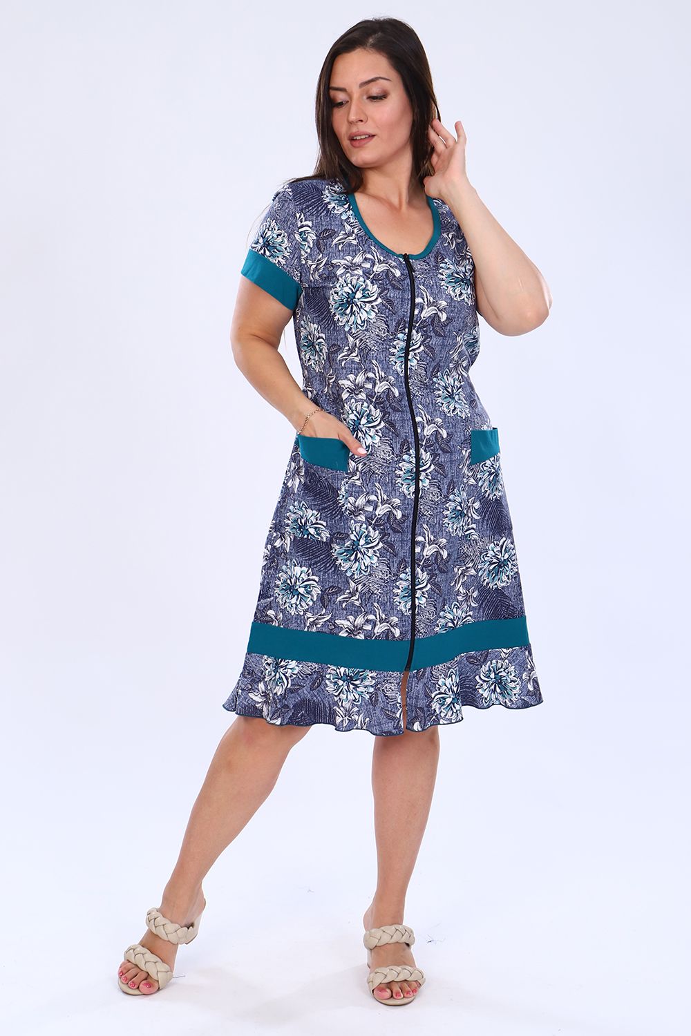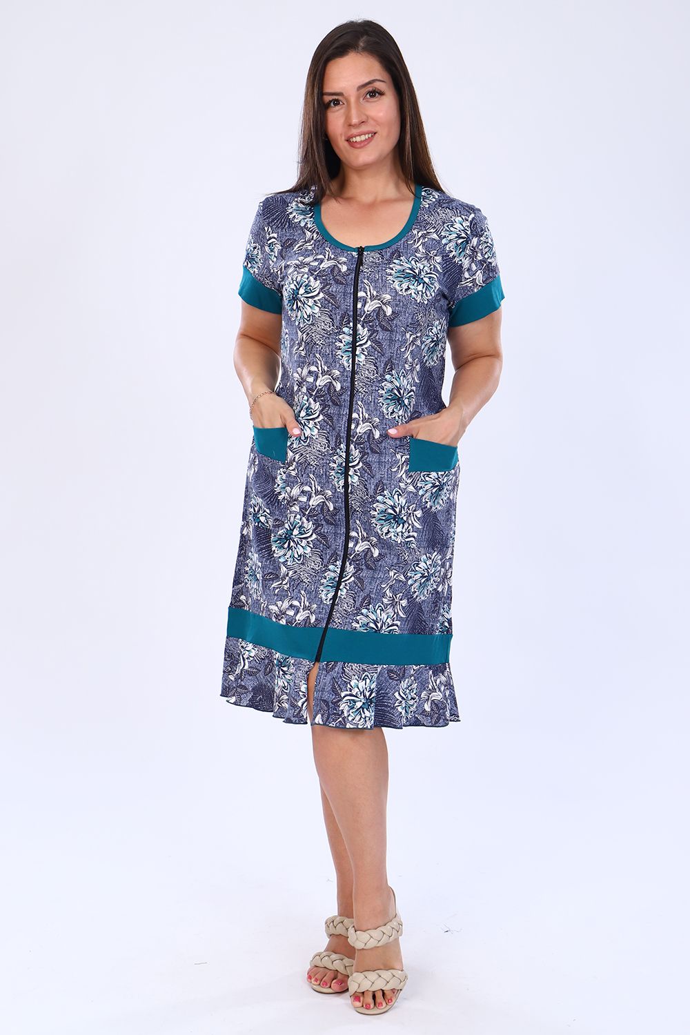 Женский халат на молнии и с поясом выполнен из 100% хлопчатобумажной ткани. Изделие дополняет яркая контрастная отделка по рукавам, карманам и низу изделия. А с помощью пояса можно самостоятельно смоделировать свою талию и при этом чувствовать себя легко и непринуждённо. Данная модель прекрасно подойдёт для дома, дачи и отдыха, создавая по-настоящему женственный образ.