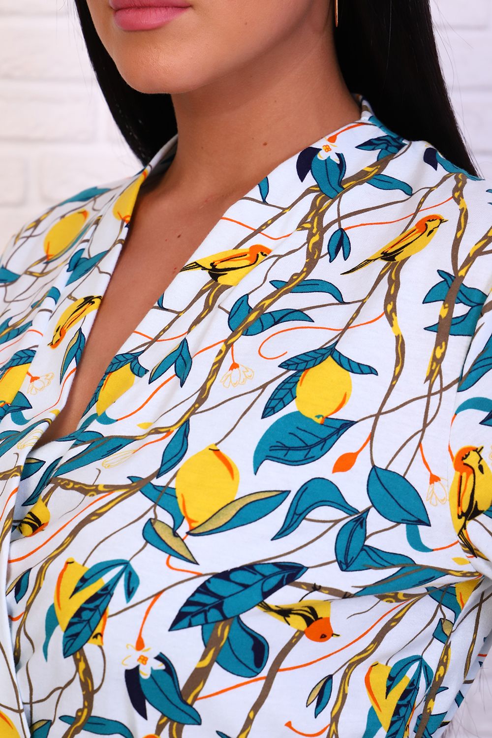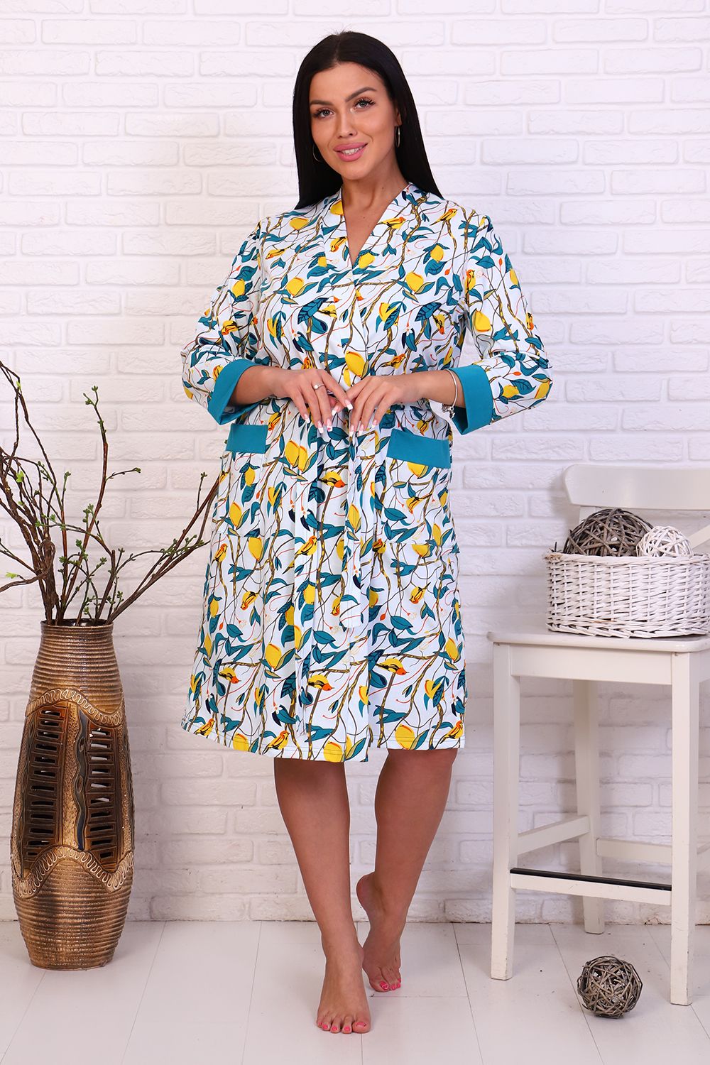 Женский пеньюар - халат + сорочка. Халат из набивной ткани, рукава 3/4 с манжетами, длина до коленей, сорочка из однотонной ткани на бретелях