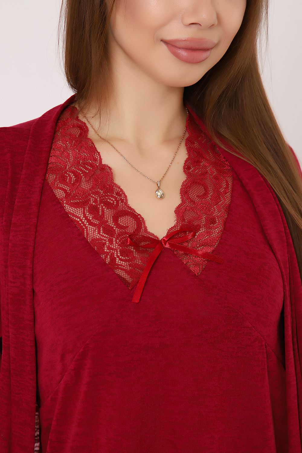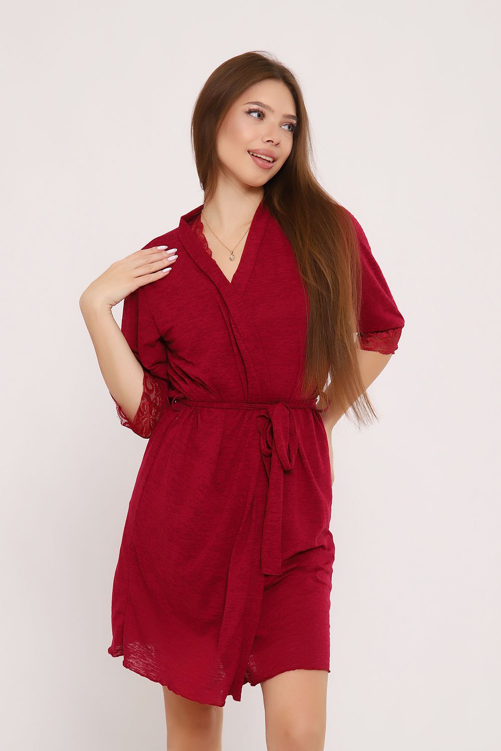 Женский кружевной комплект - именно то, что нужно для создания нежного и сексуального образа. Он состоит из пеньюара на запах и тройки из майки с шортами. В комплекте халат, который можно надеть поверх комплекта для создания дополнительного комфорта. Боковые швы шорт выполнены в нахлест, создавая по бокам разрезы, и обработаны окантовкой. Идеальный вариант для отдыха и сна. Материал изготовления - ДЕВОРЕ, который обладает дышащими свойствами и позволяет телу дышать, не вызывая дискомфорта.