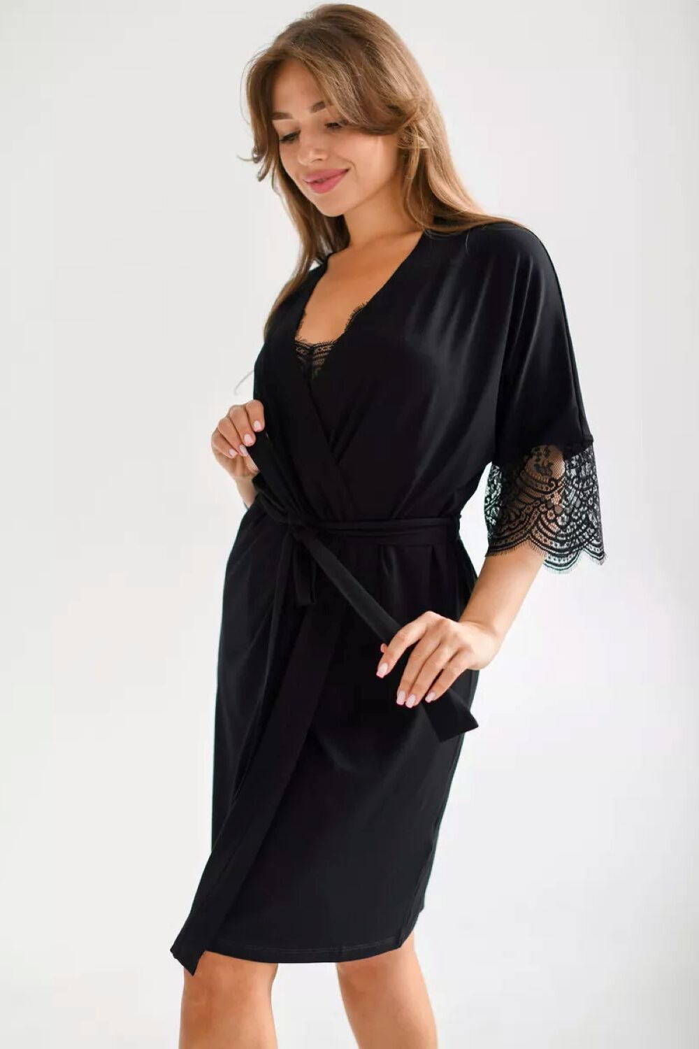 Пеньюар «Метелица» из ткани трикотаж (вискоза 92% и эластан 8%) от российского бренда Batistcorp Ivanovo (Батист). В комплект входит халат и ночная сорочка. Ночнушка полуприлегающего силуэта, длиной до середины бедра, на тонких, регулируемых бретелях. Имеет V- образный вырез, обработанный эластичным кружевом. Халатик на запах, полуприлегающего силуэта, короткий, выше колена. Рукав цельнокроеный, длиной до локтя. Низ рукава отделан эластичным кружевом. Пояс навесной. Белье изготовлено из вискозной гипоаллергенной ткани. Красивая, молодежная, модная, стильная сорочка для сна и отдыха. Она хорошо дышит и лучше впитывает влагу, струится и имеет более равномерную окраску. Подойдут на любой рост: для высоких, для невысоких и дам среднего роста. Прекрасный подарок себе и близким.