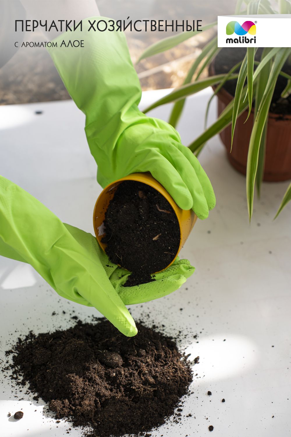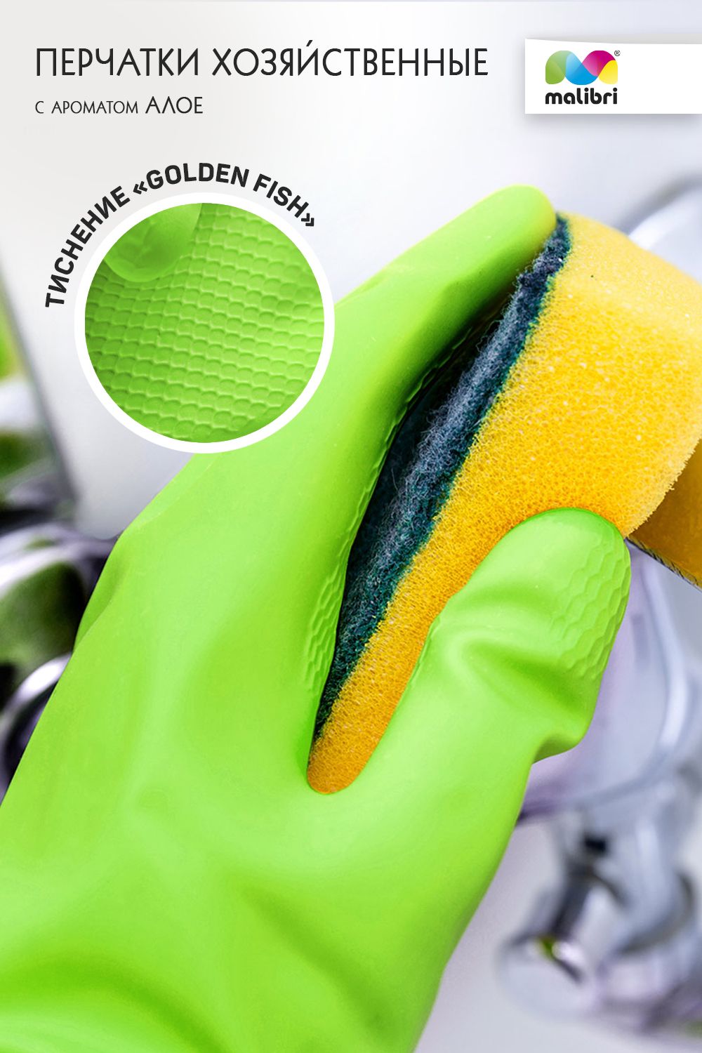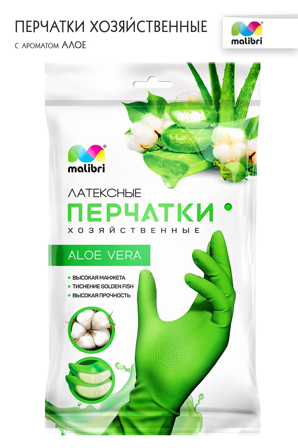 Перчатки с экстрактом АЛОЭ Malibri латексные с хлопковым напылением арт.1002-013