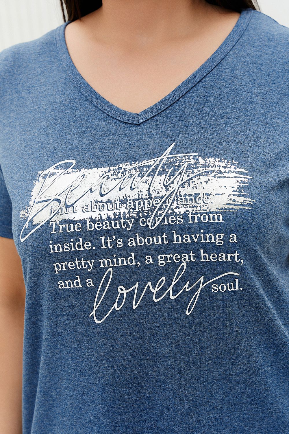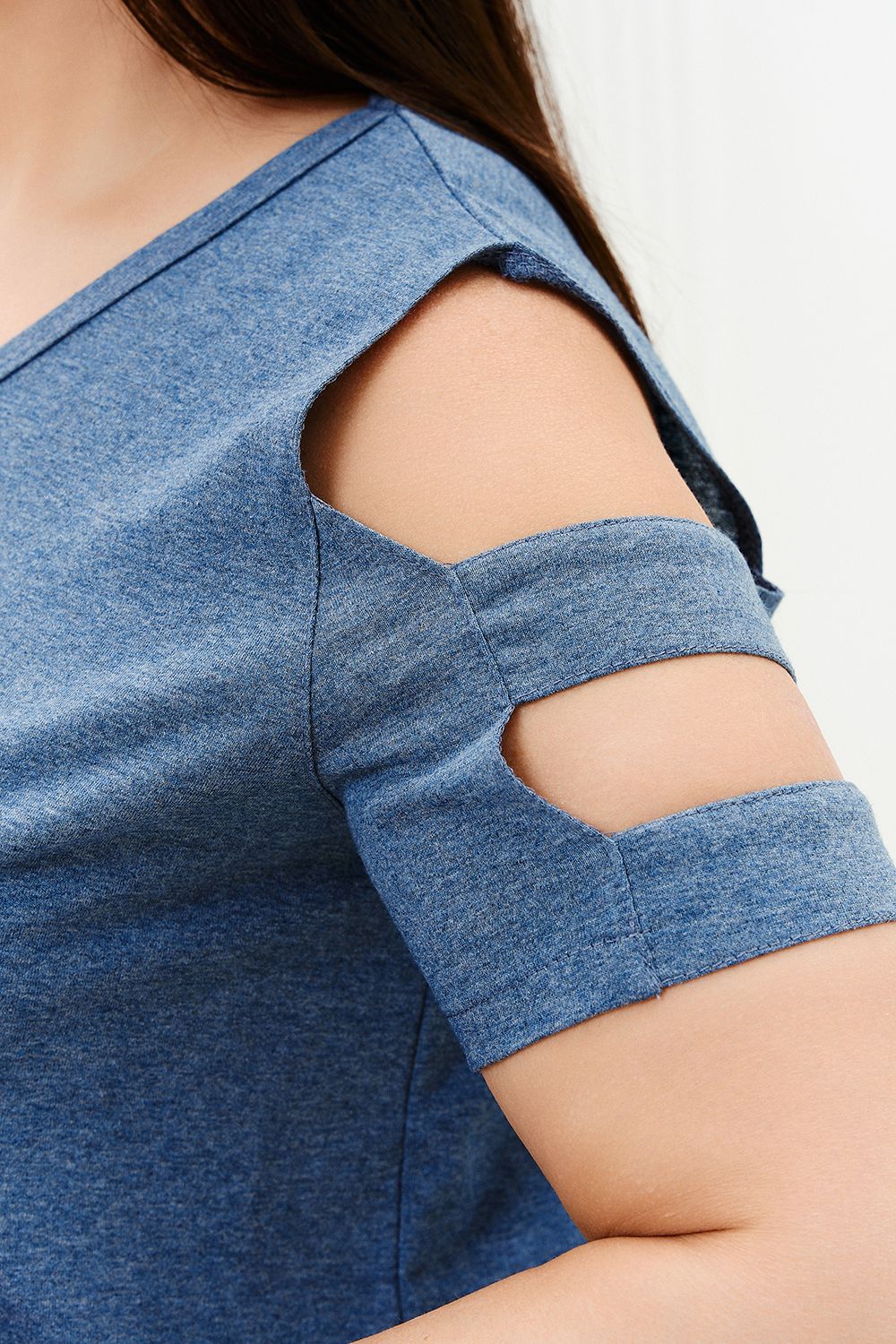 Костюм женский: туника и брюки. Туника прямого силуэта, вырез Y-образный. Полочка несколько короче спинки, сбоку разрезы. На полочке принт. Рукав не цельный, два хляста, расположенные через расстояние друг от друга, втачаны в боковые части рукава. Брюки свободные, "бананы", внизу передней и задней части по две встречные складки, манжеты. В брюках удобные внутренние карманы, пояс выполнен на многоигольной машине.